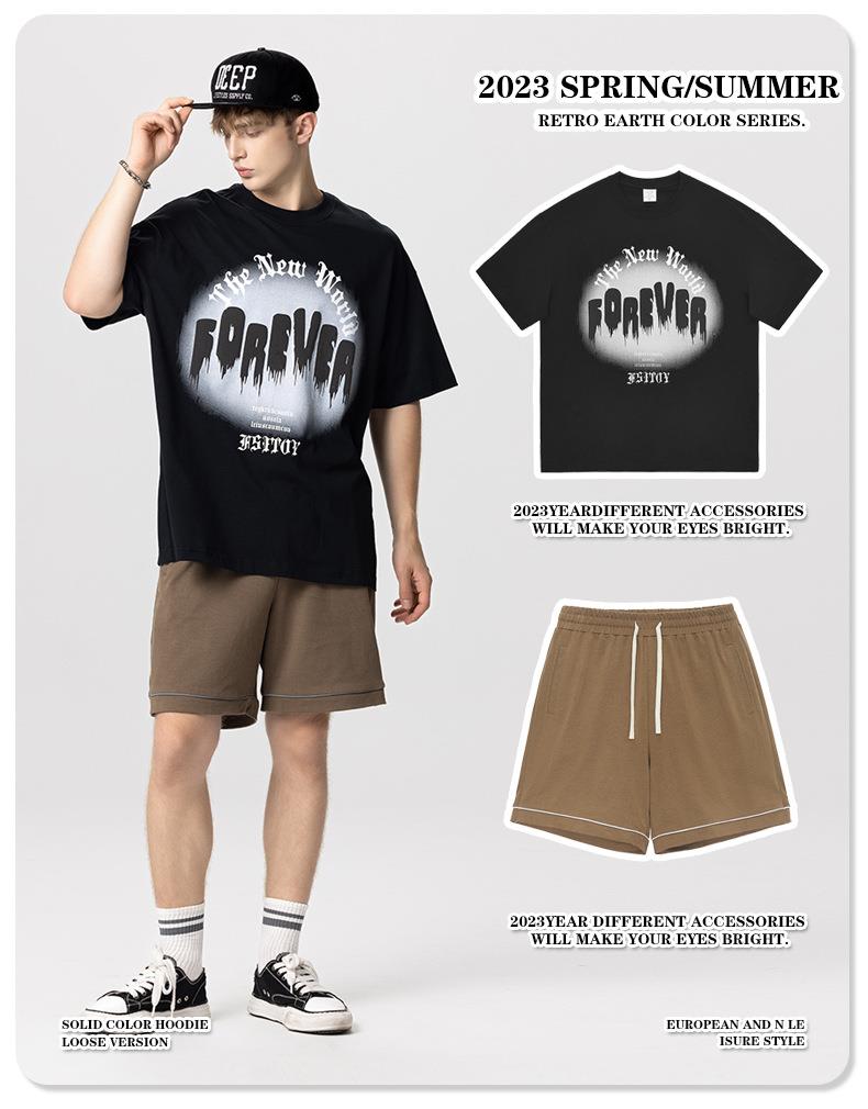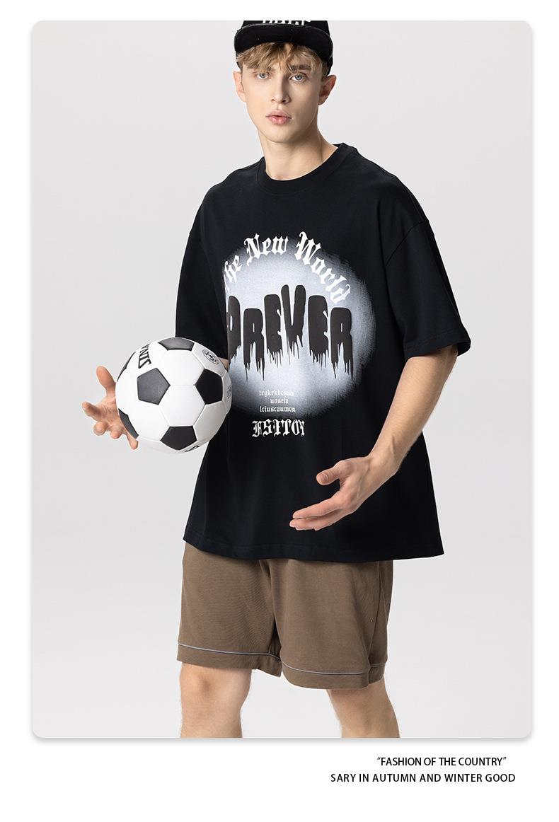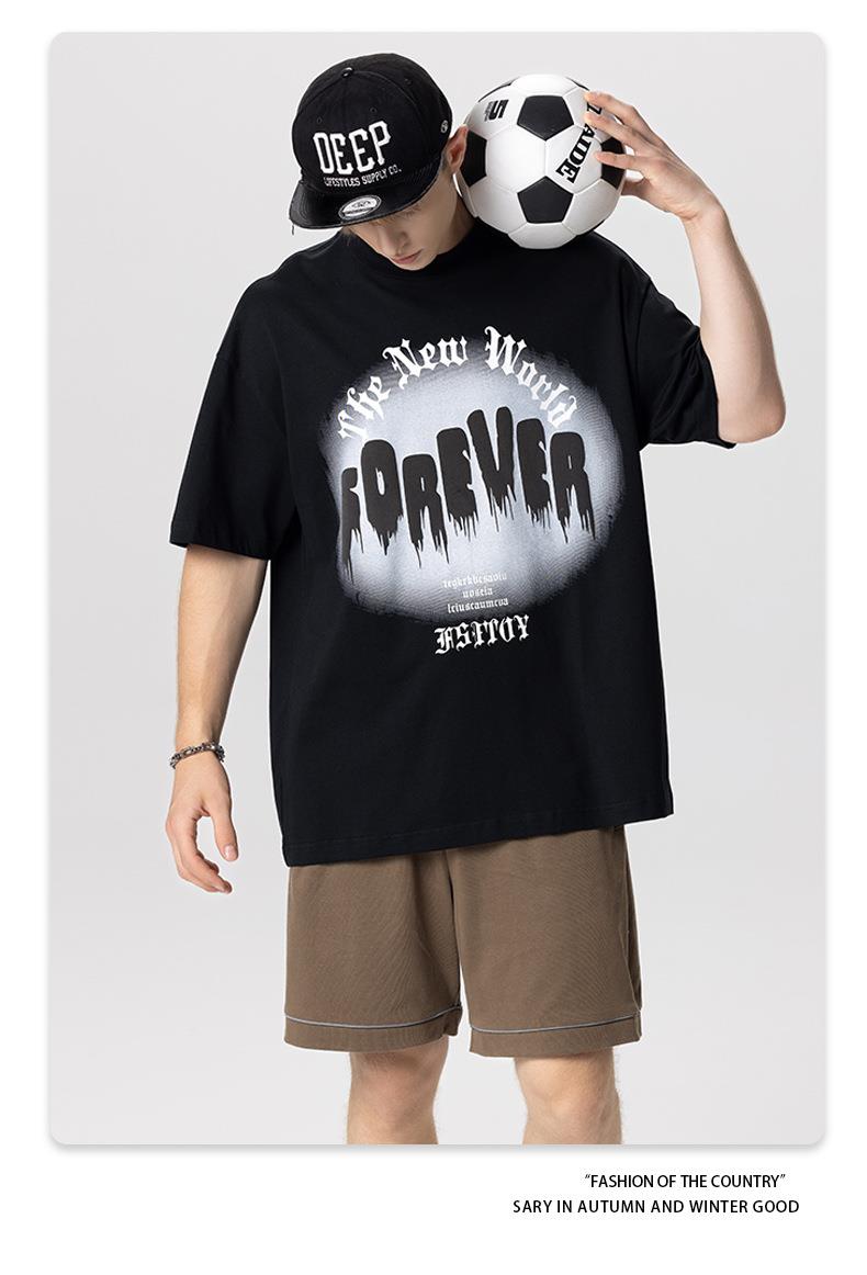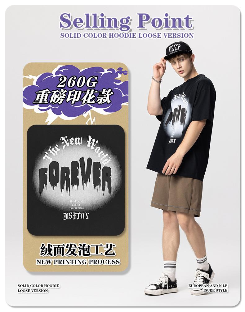 RS男装|2023夏季260克绒面发泡男士宽松潮牌字母百搭休闲短袖t恤