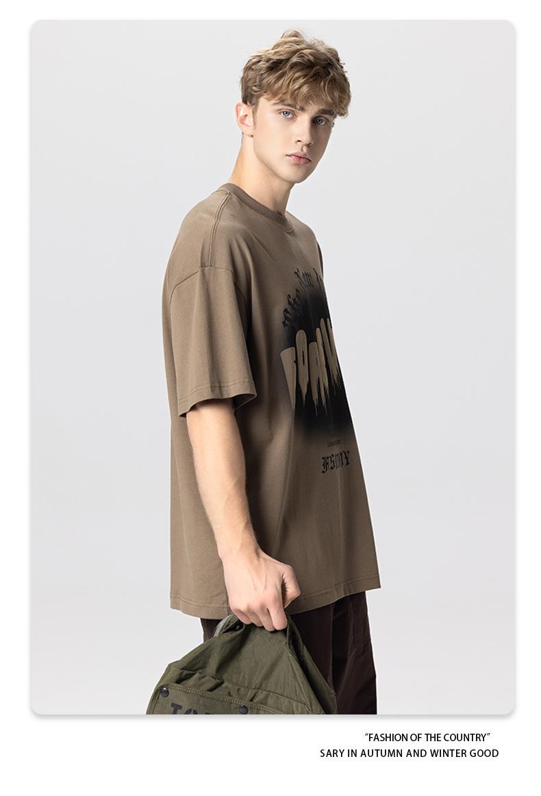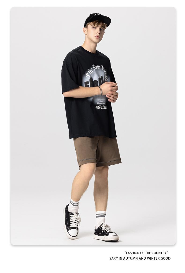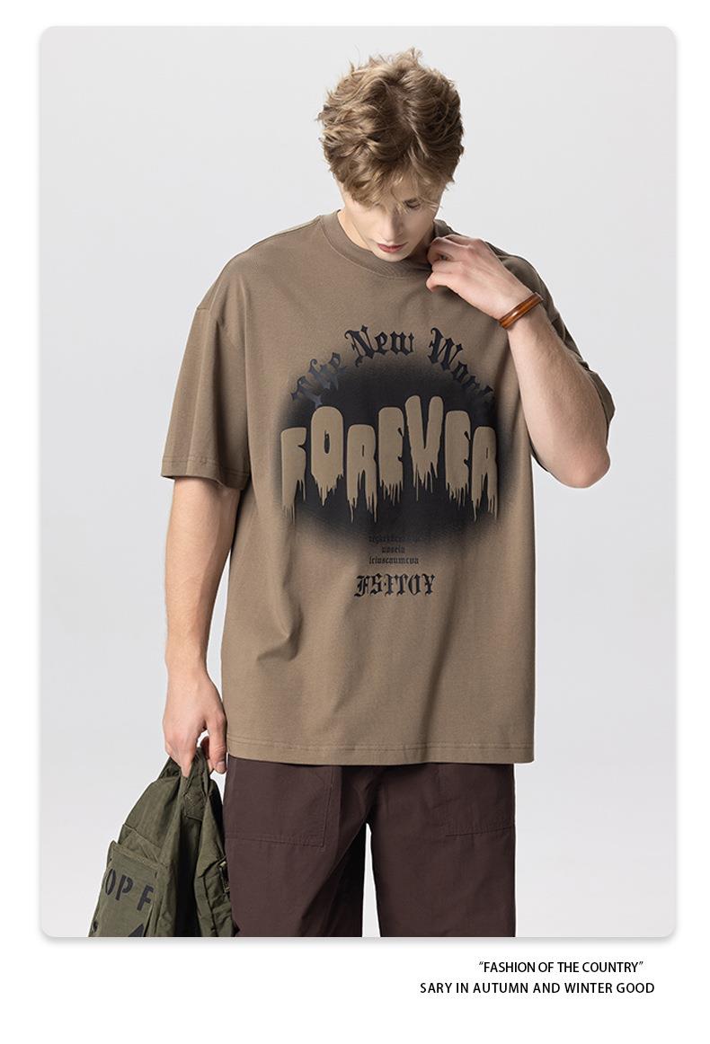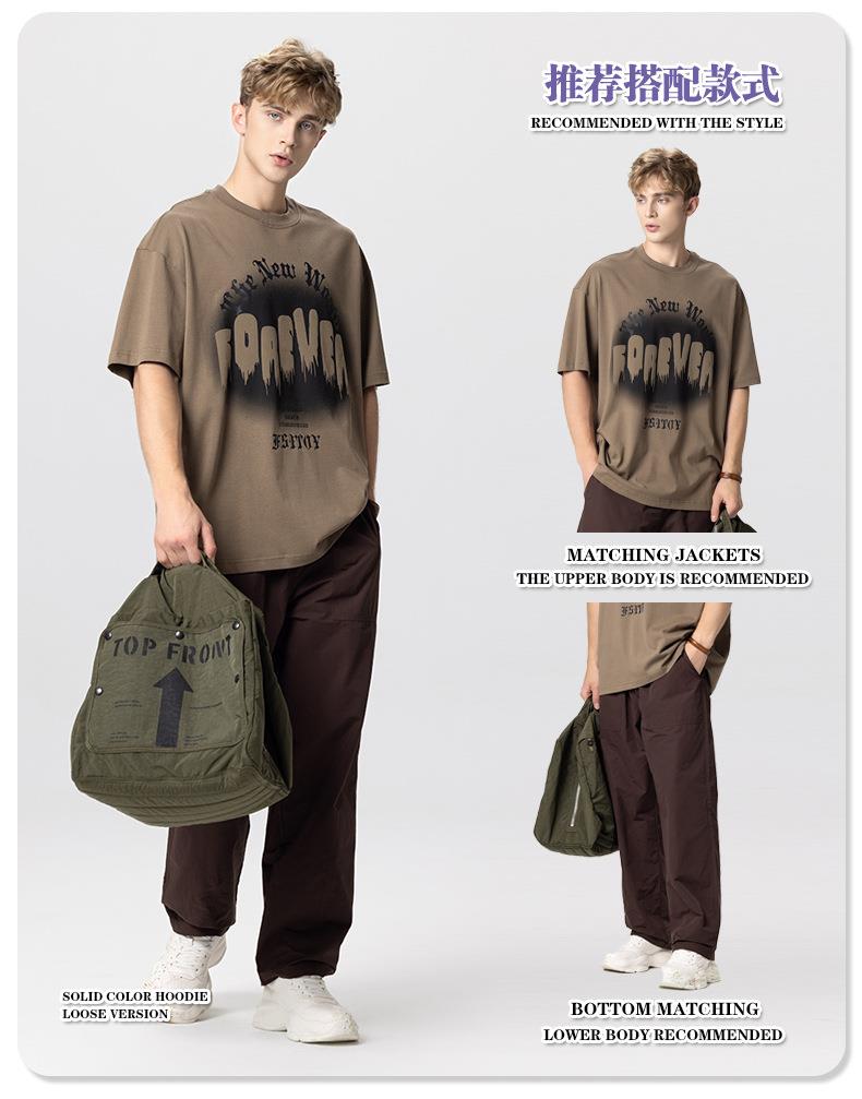 RS男装|2023夏季260克绒面发泡男士宽松潮牌字母百搭休闲短袖t恤