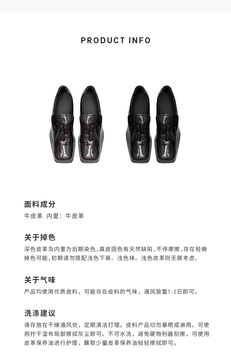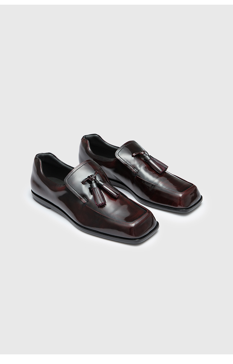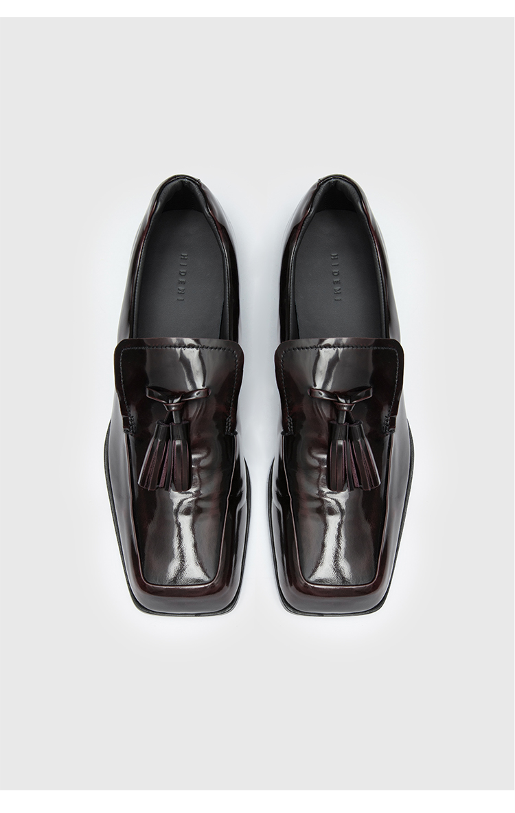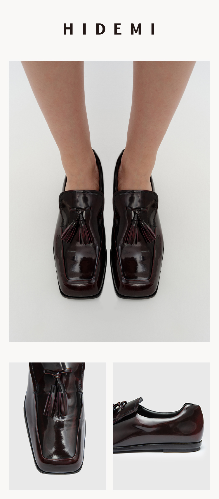 HIDEMI 极简方头手作流苏都市感气垫式进口雾面亮皮牛皮舒适感皮鞋 黑色/深酒红