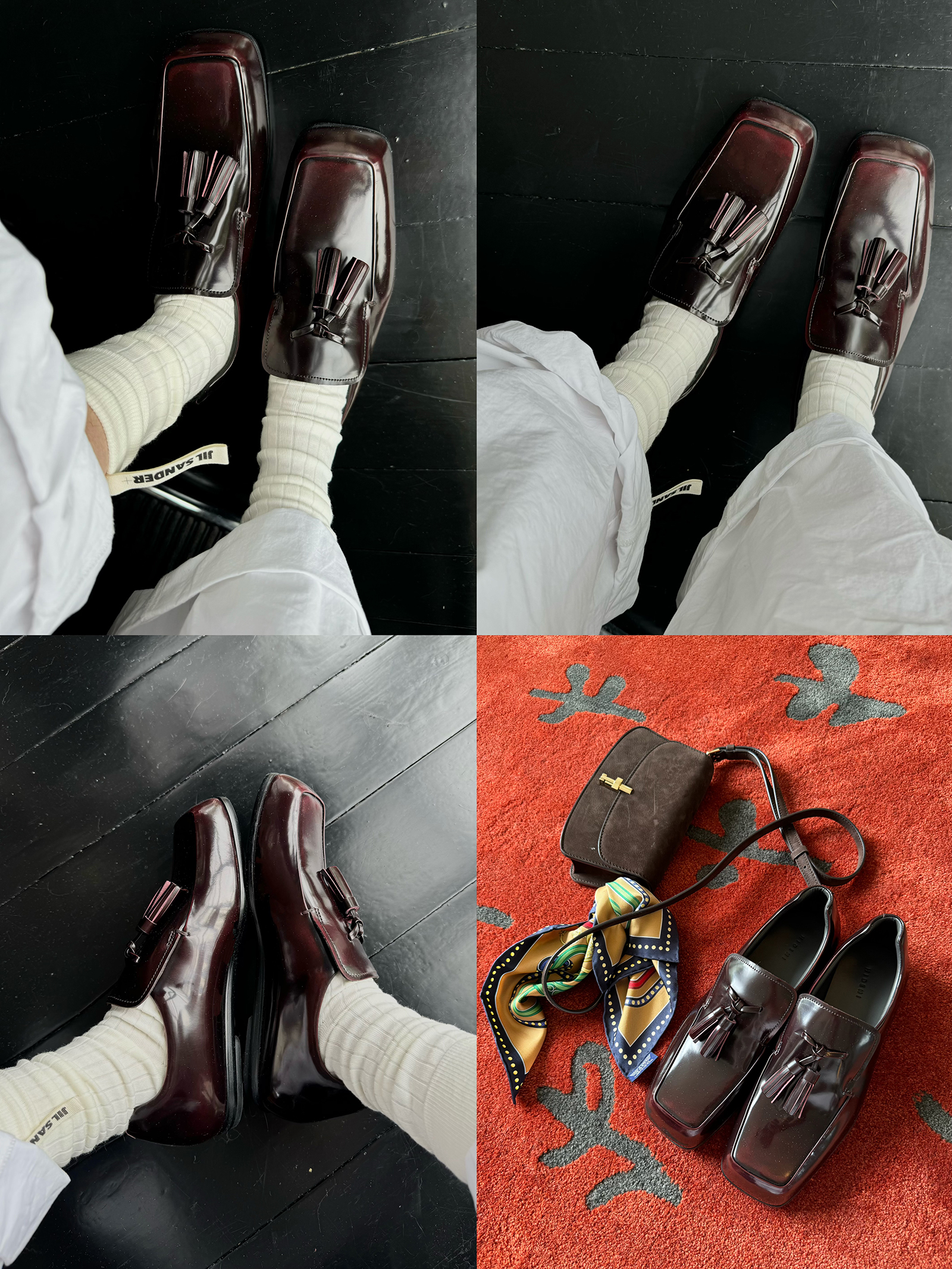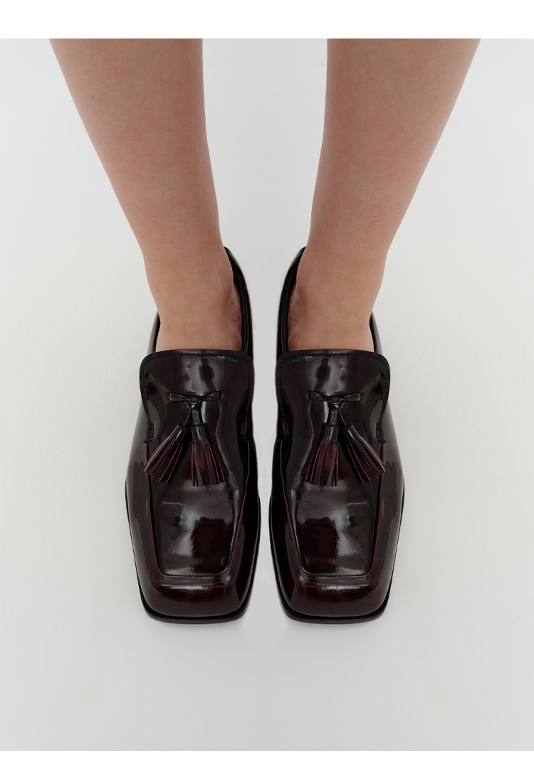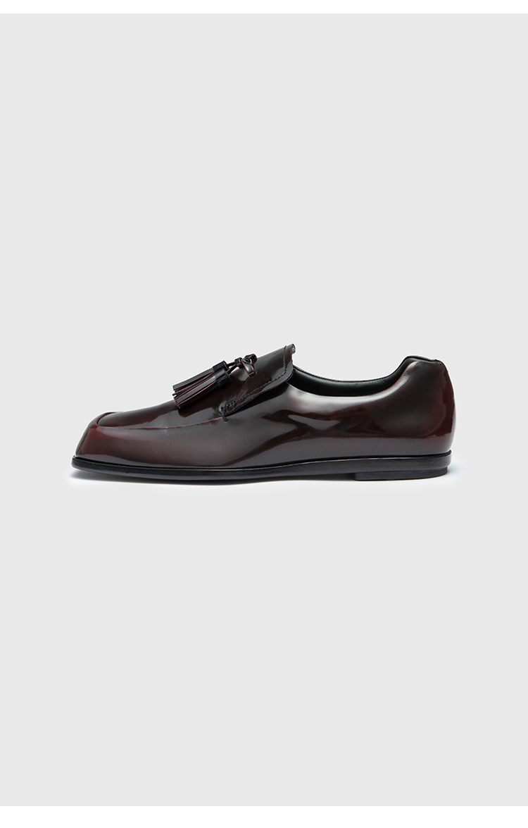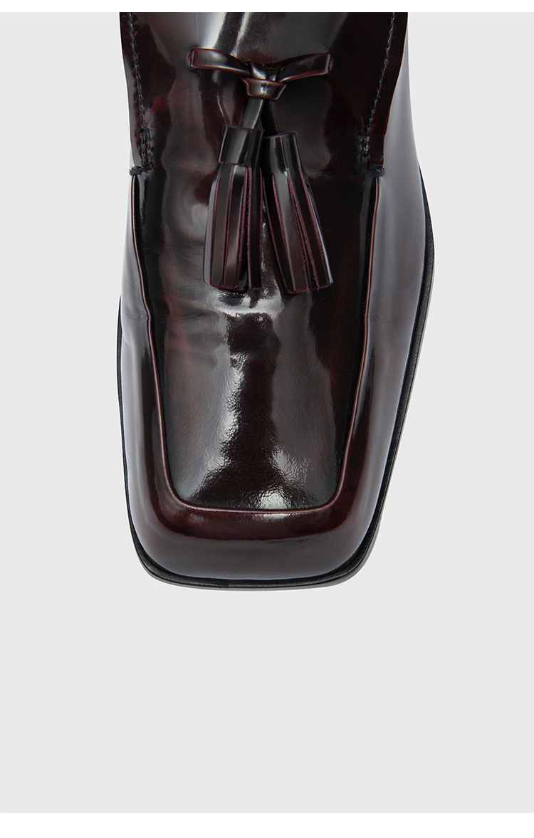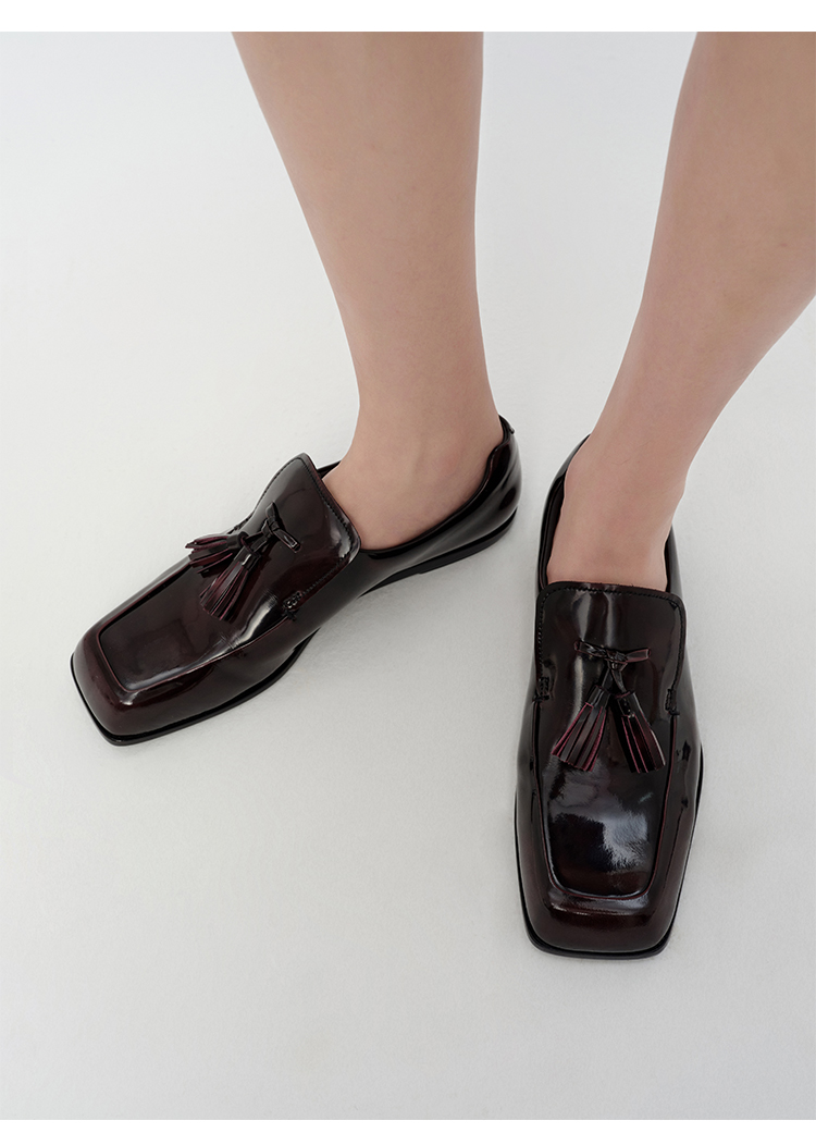 HIDEMI 极简方头手作流苏都市感气垫式进口雾面亮皮牛皮舒适感皮鞋 黑色/深酒红