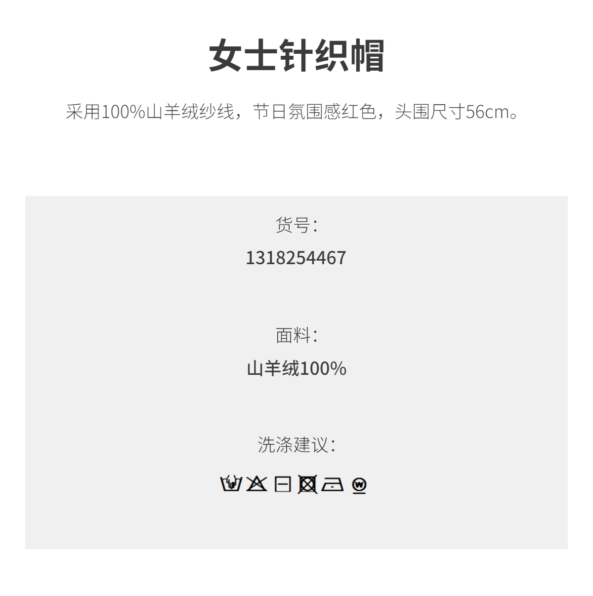 PURE TOUCH帽子25秋冬新款羊绒针织毛线帽生肖马新年红百搭冷帽