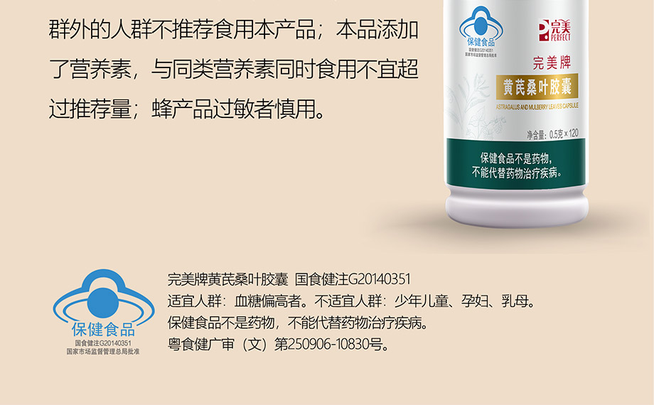 【预售 急单慎拍】完美牌黄芪桑叶胶囊 0.5g/粒,120粒/瓶 原价338元