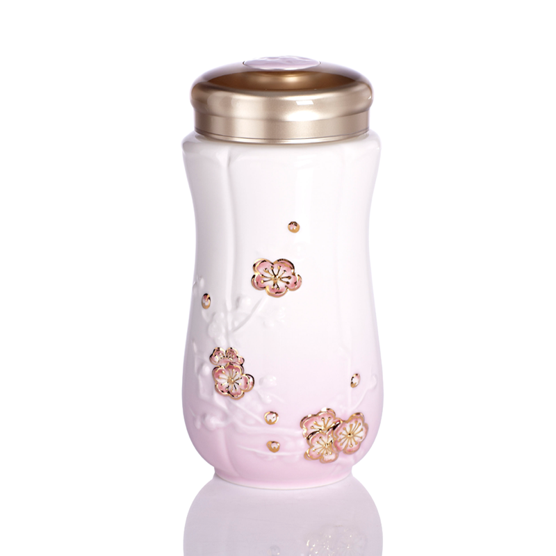 鎏金·红梅报春随身杯 双层330ml创意陶瓷水杯随行定制礼品