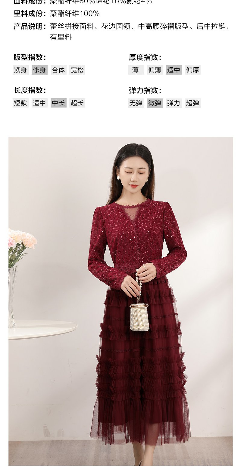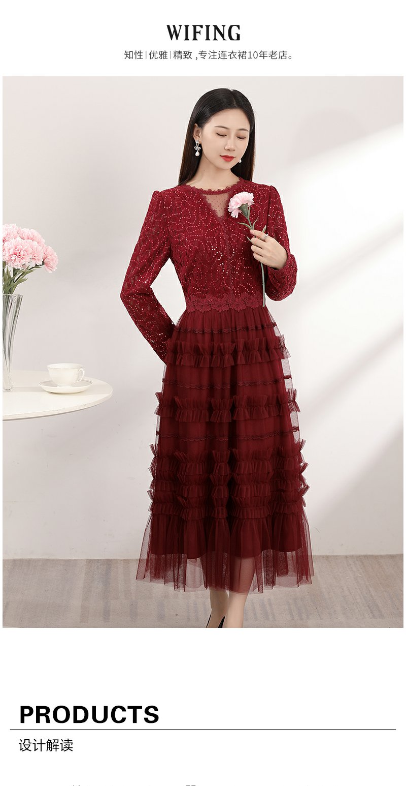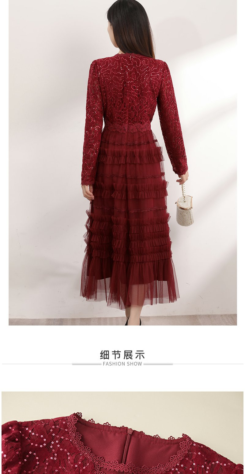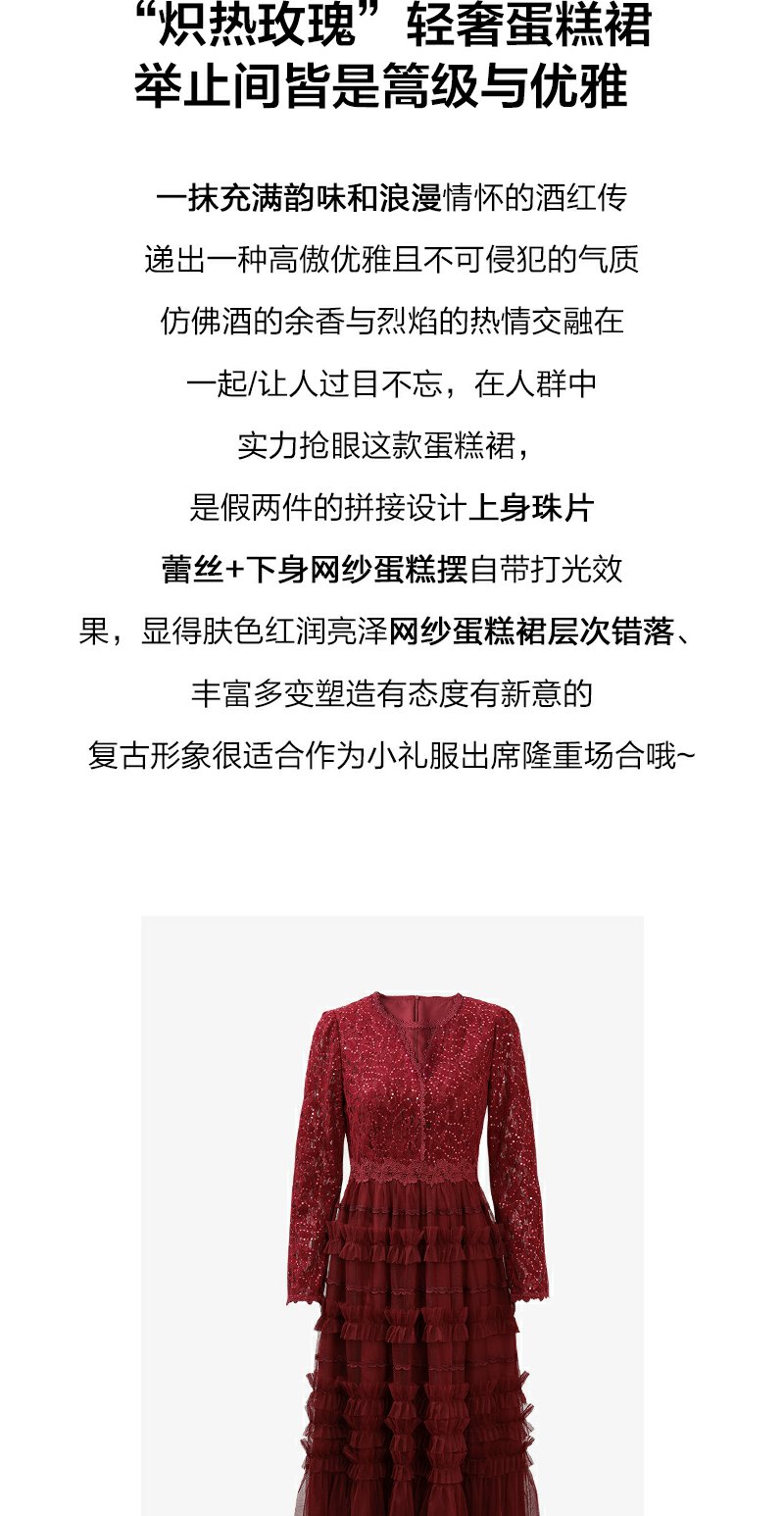 红色蕾丝网纱连衣裙女春季新款女装气质超好看显瘦裙子