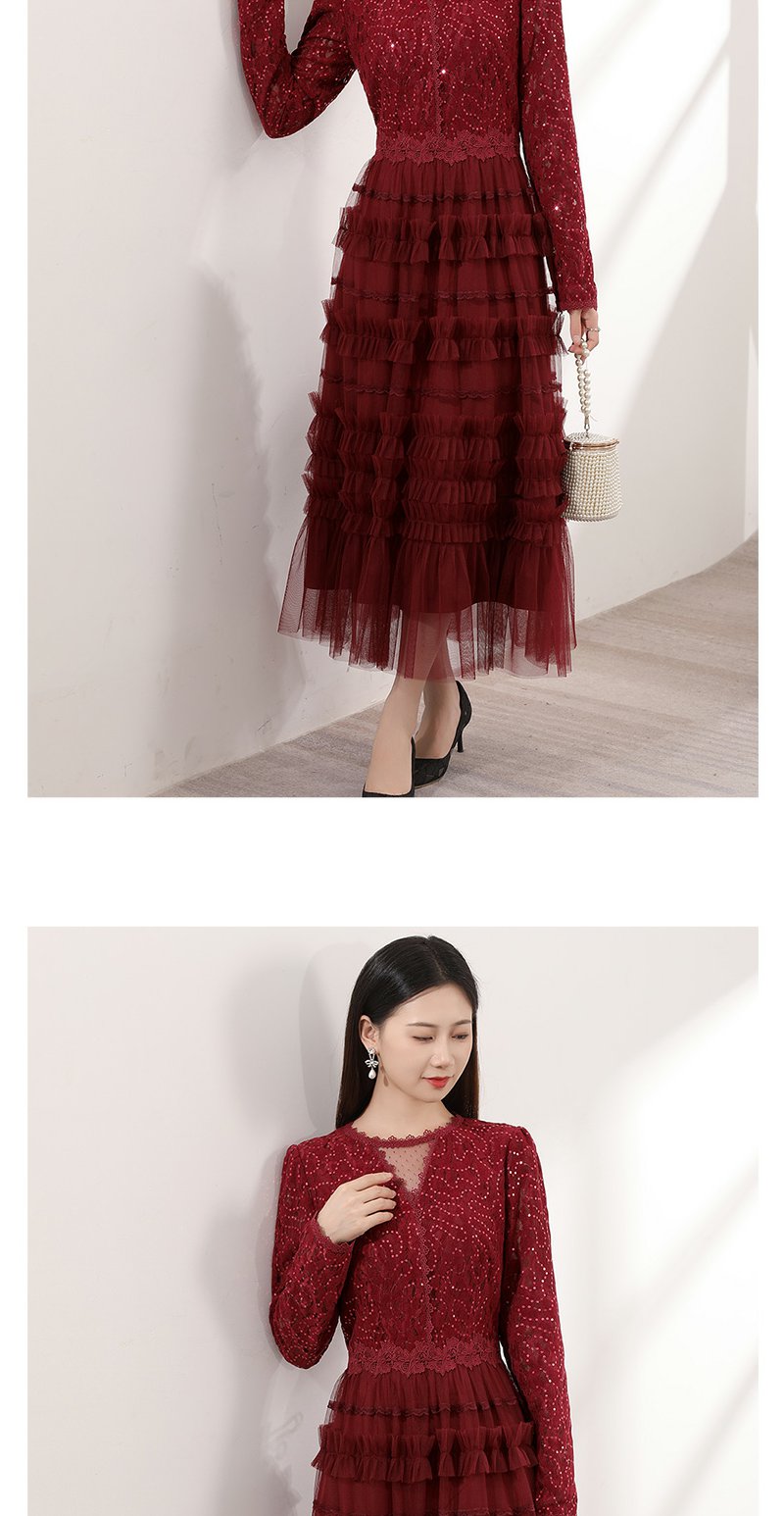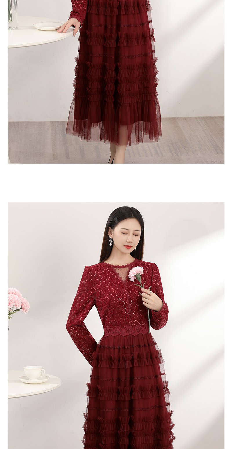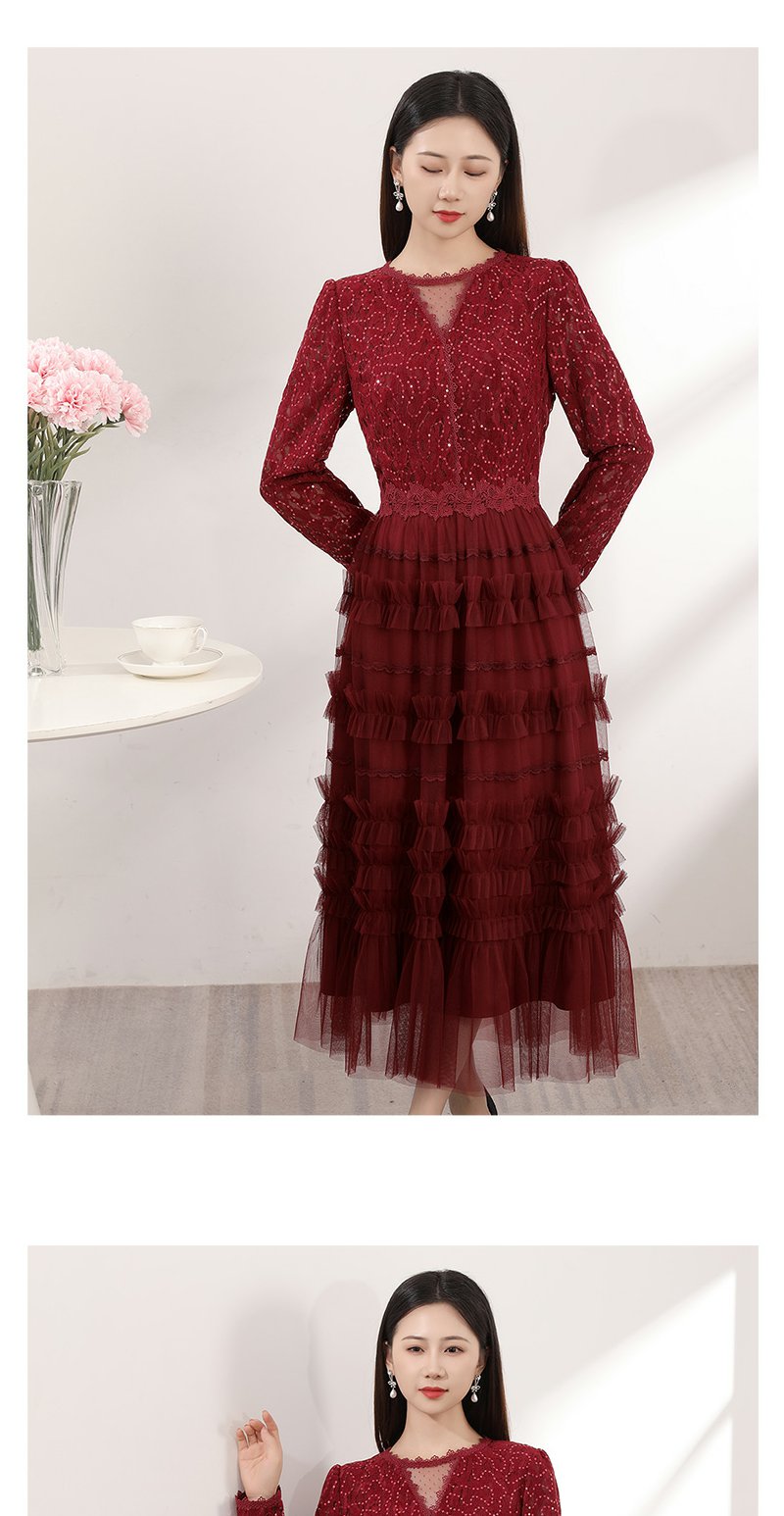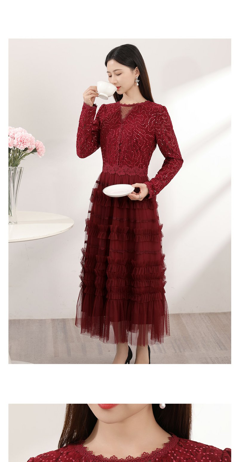 红色蕾丝网纱连衣裙女春季新款女装气质超好看显瘦裙子