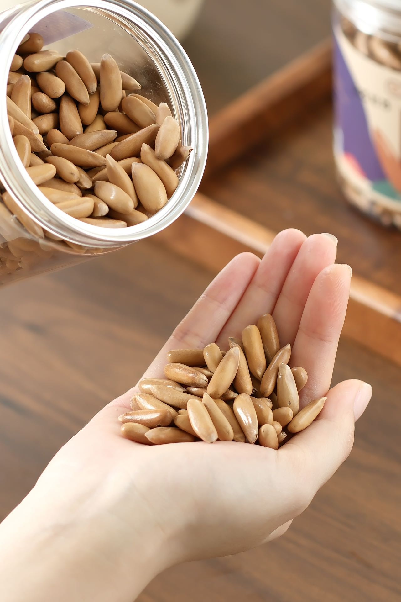 松子属于自然生长的农作物,在生长过程中会又部分坏果,虽然我们经过了人工和机器双重挑选,但是还是会有部分坏籽在罐子里面,一罐里面10颗-15颗坏果左右属于正常情况,此情况不在售后范围内。巴西松子尖部变色并不一定表示已经坏掉,这是由于巴西松子在成熟过程中,尖部会自然变色,而且经过了炒制,高温下也会引起部分变色。介意者慎拍!