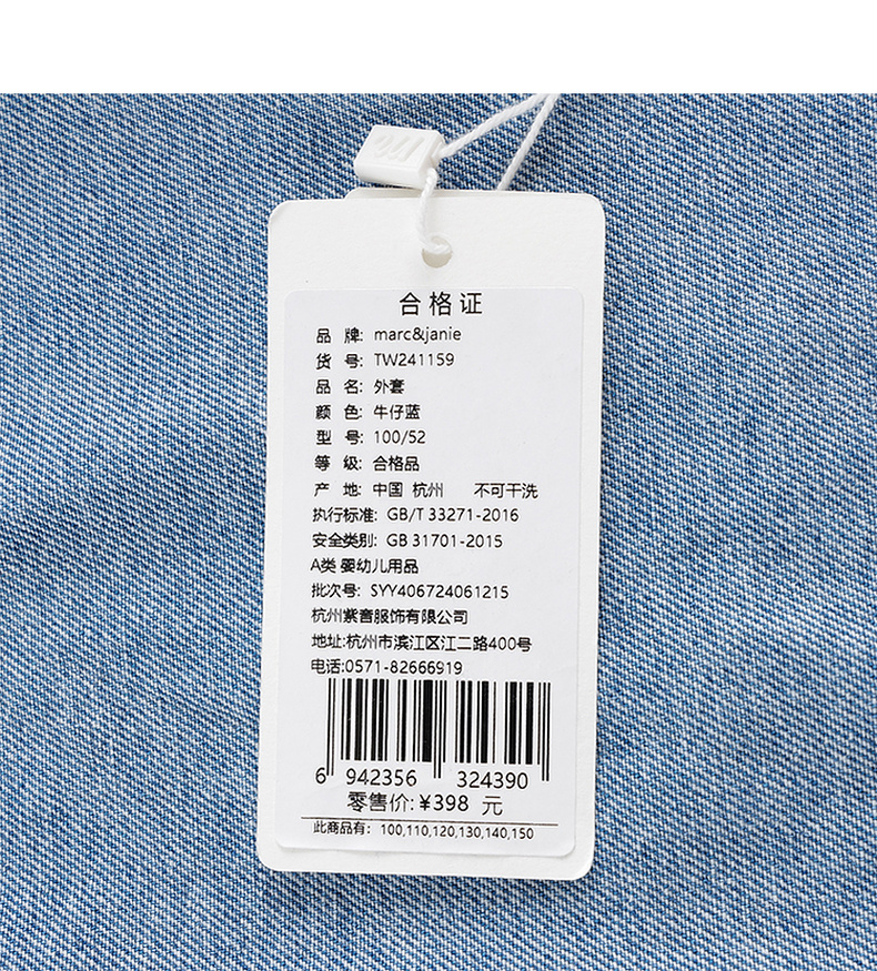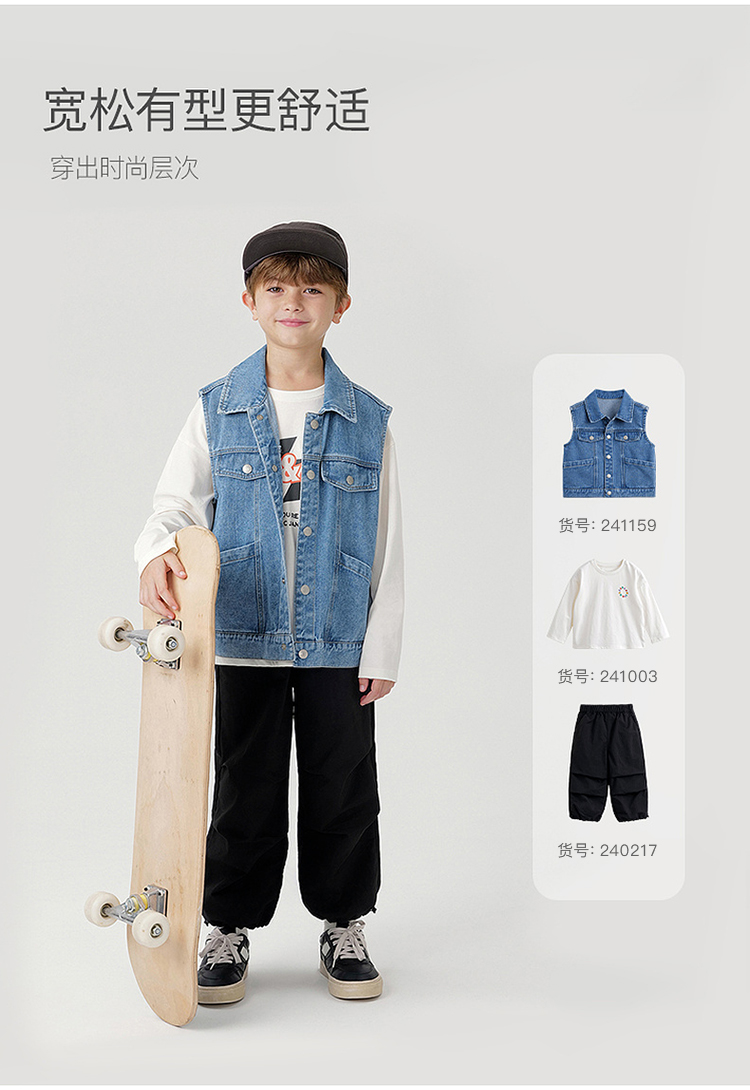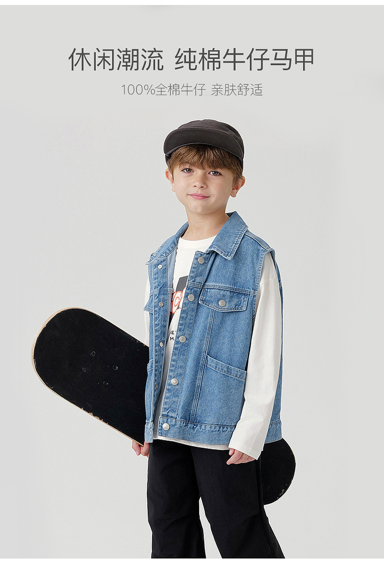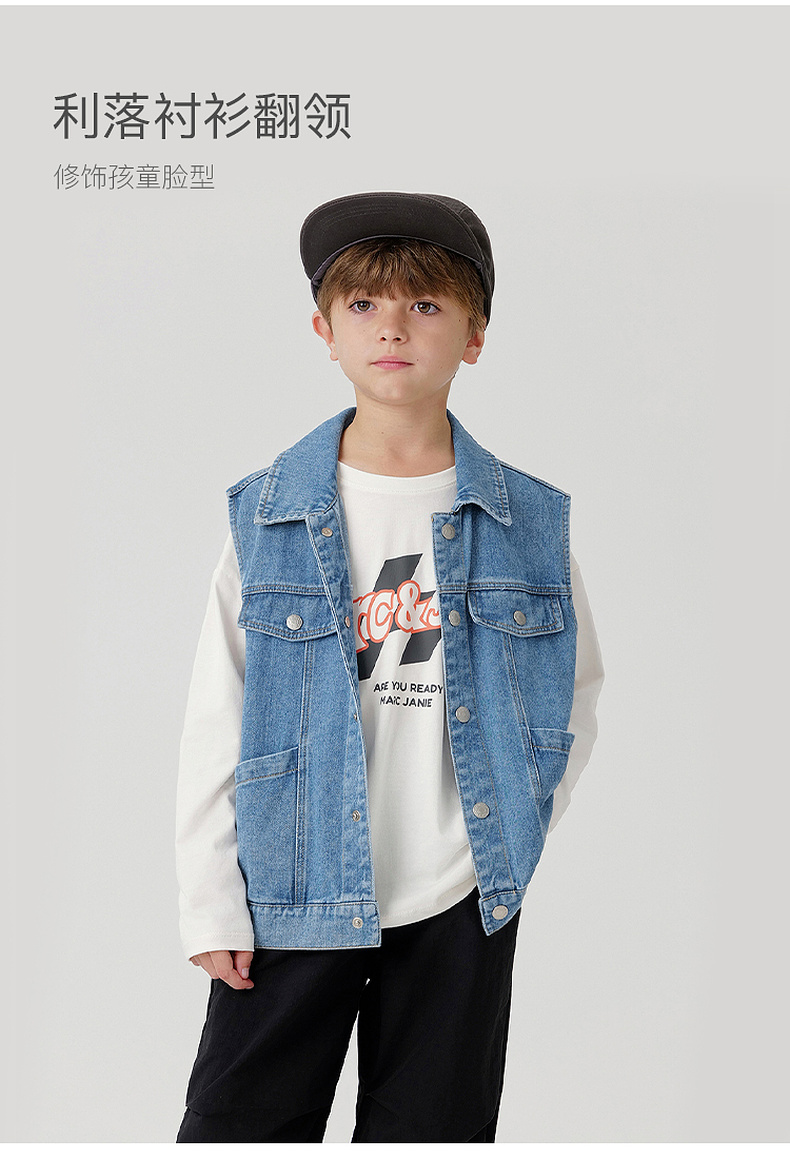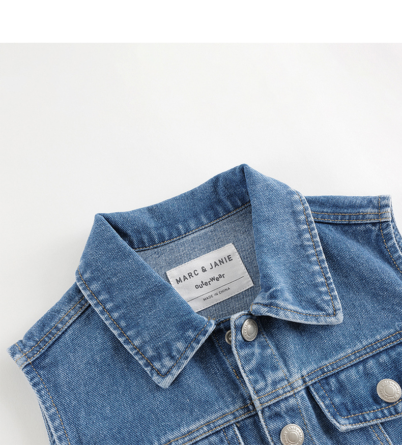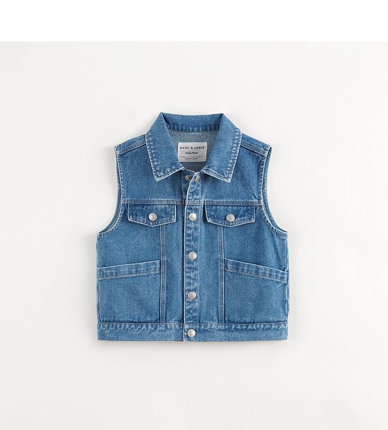 马克珍妮男女童纯棉牛仔马甲儿童夹克背心2024年新款秋装241159