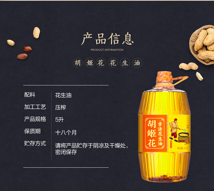胡姬花 花生油家用食用油节日送礼 古法花生油5L