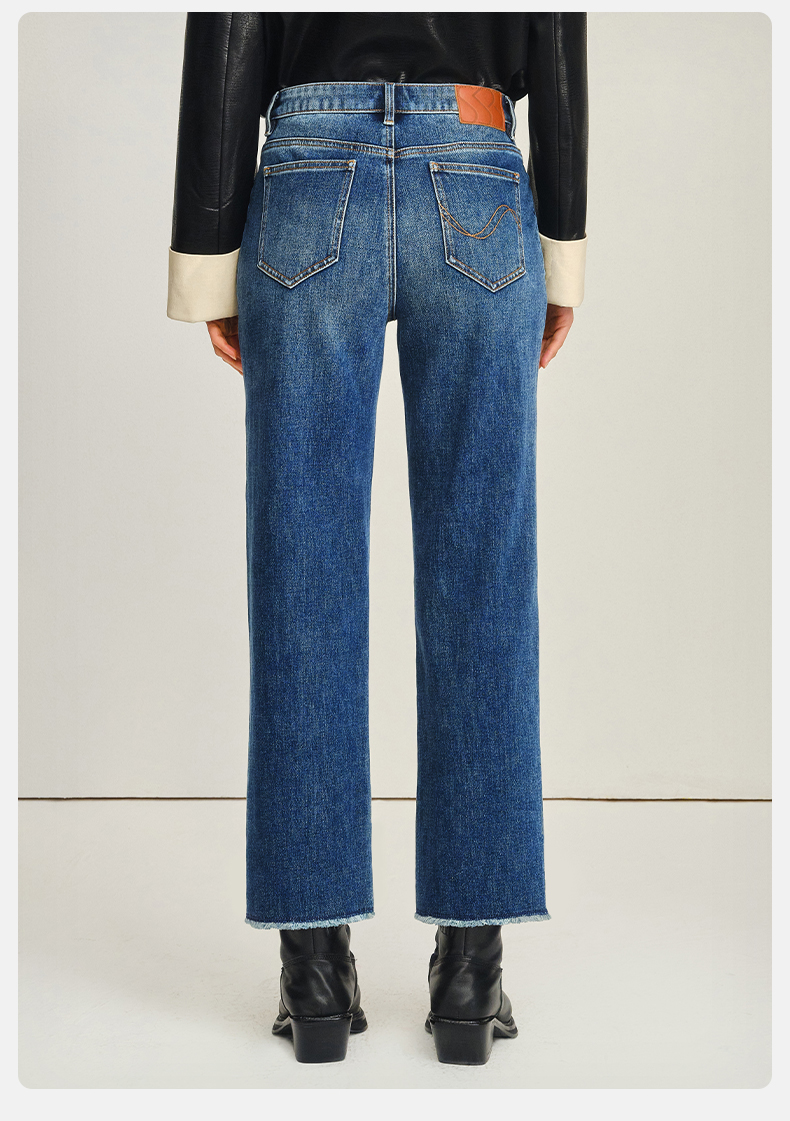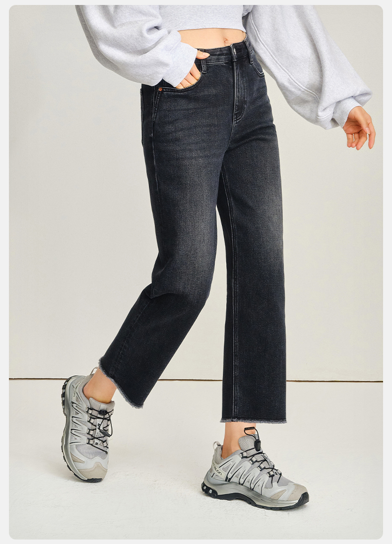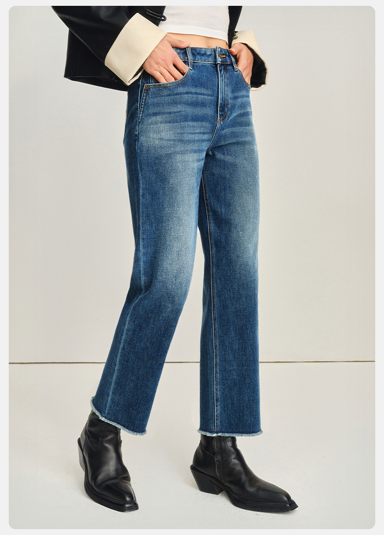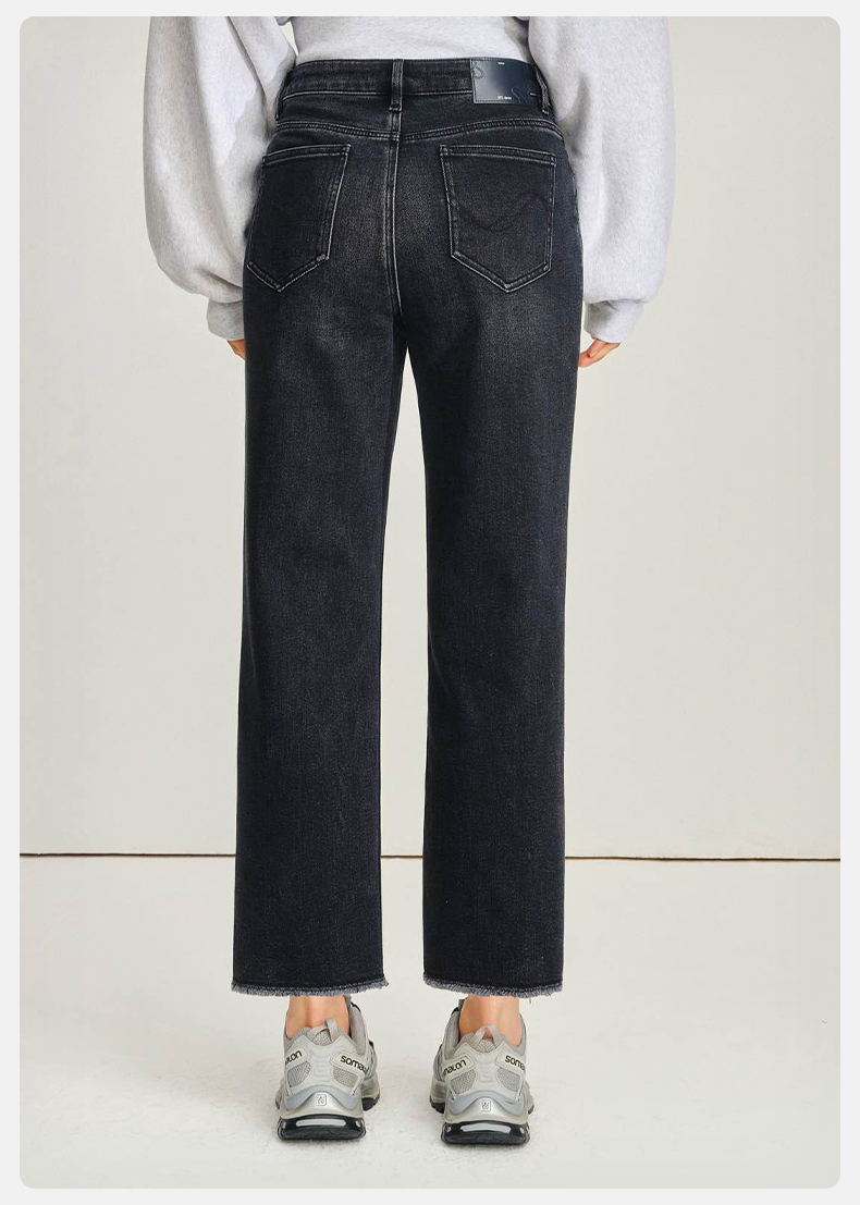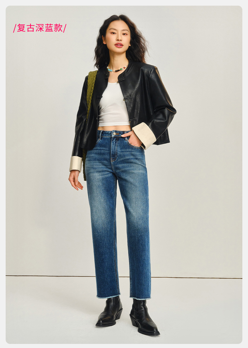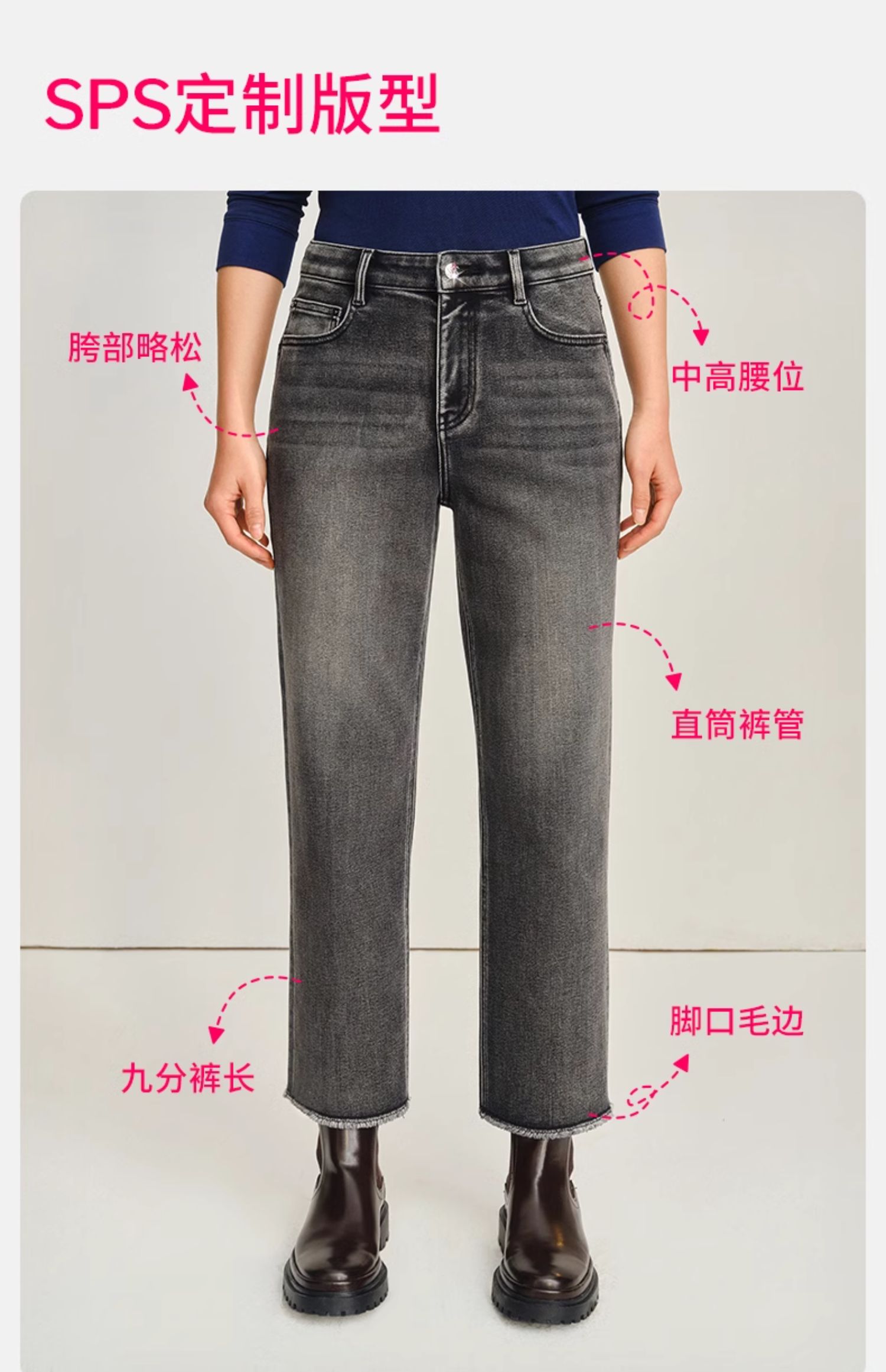 【法棍裤】simplepieces秋季款SPS牛仔裤女深色毛边九分直筒裤