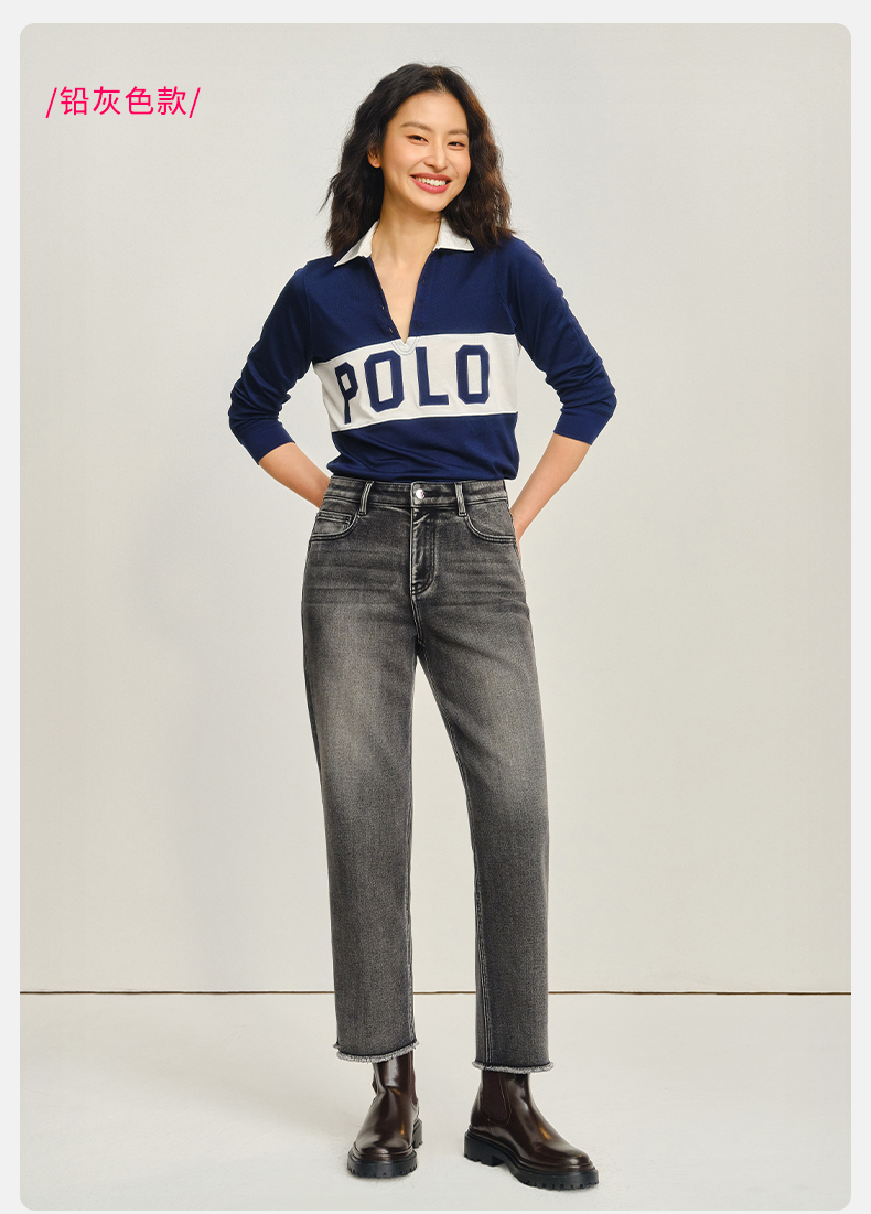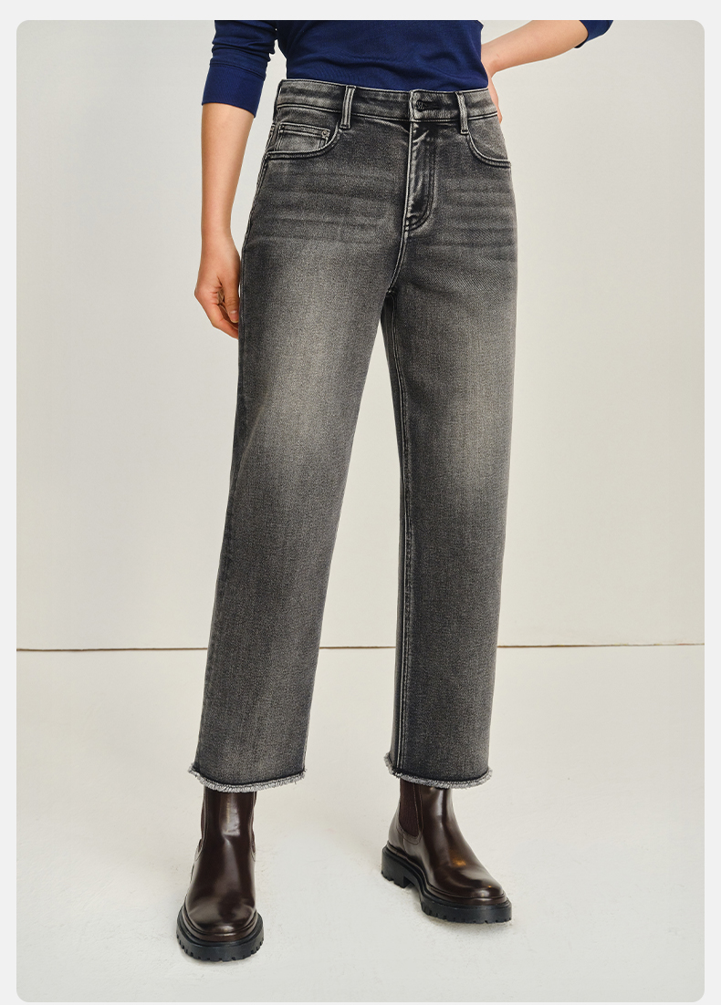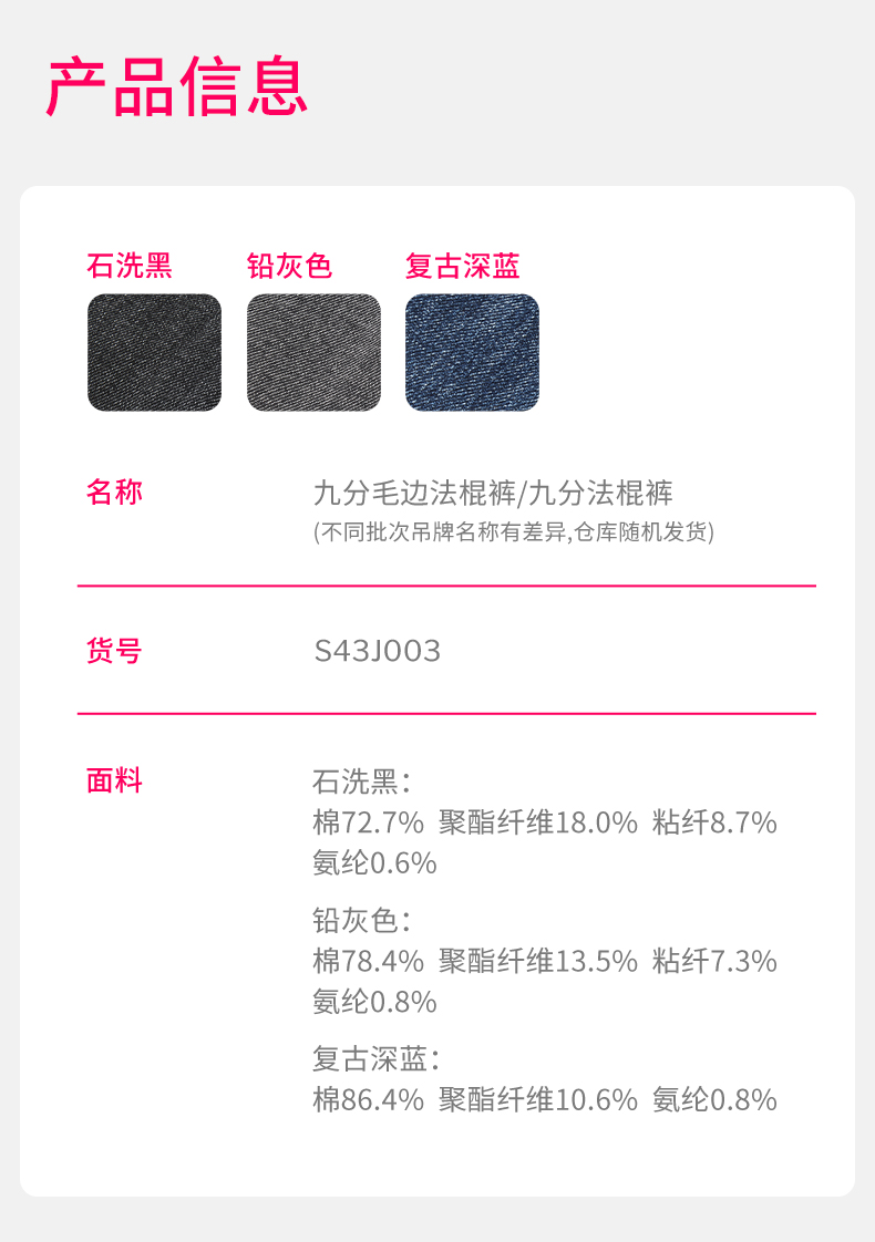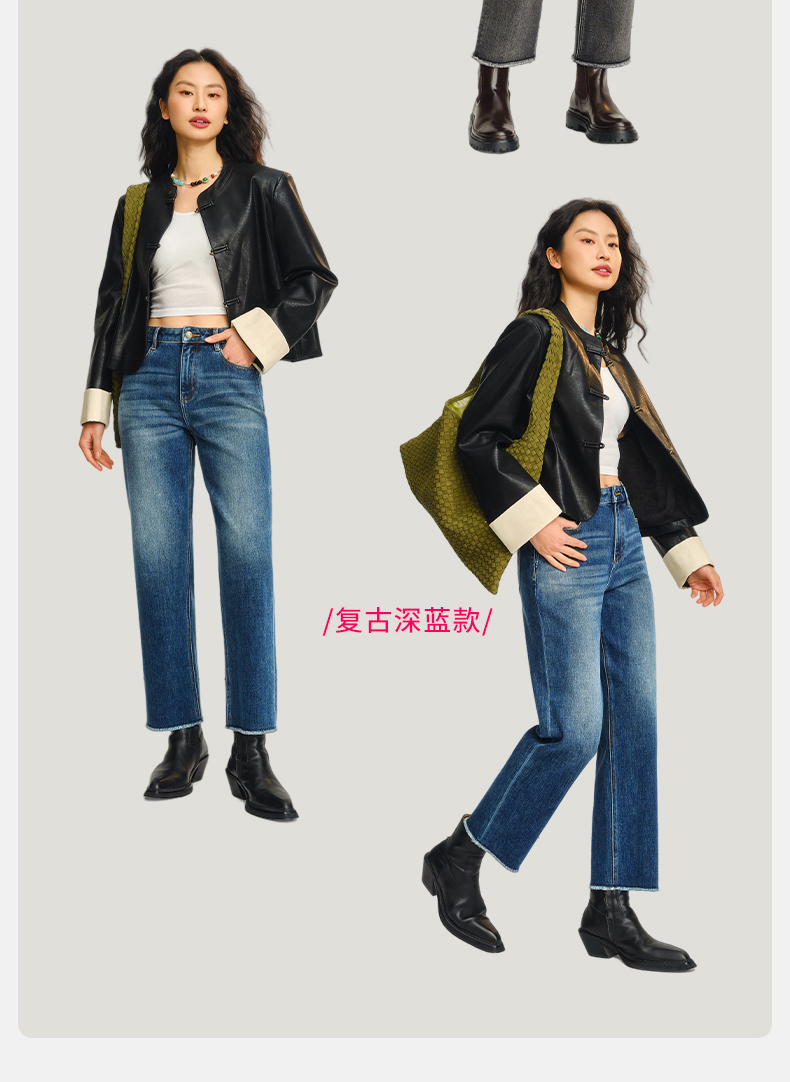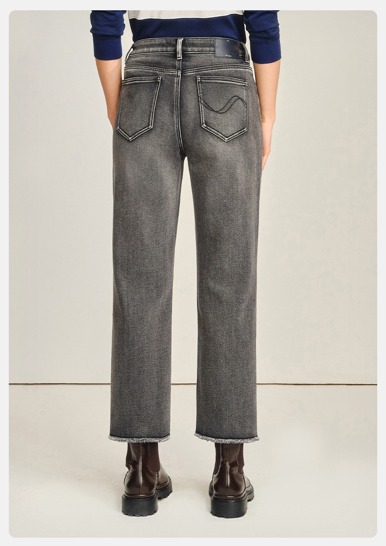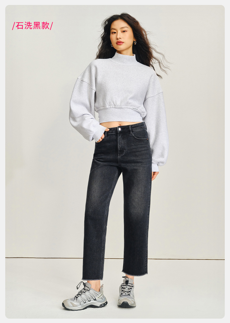【法棍裤】simplepieces秋季款SPS牛仔裤女深色毛边九分直筒裤