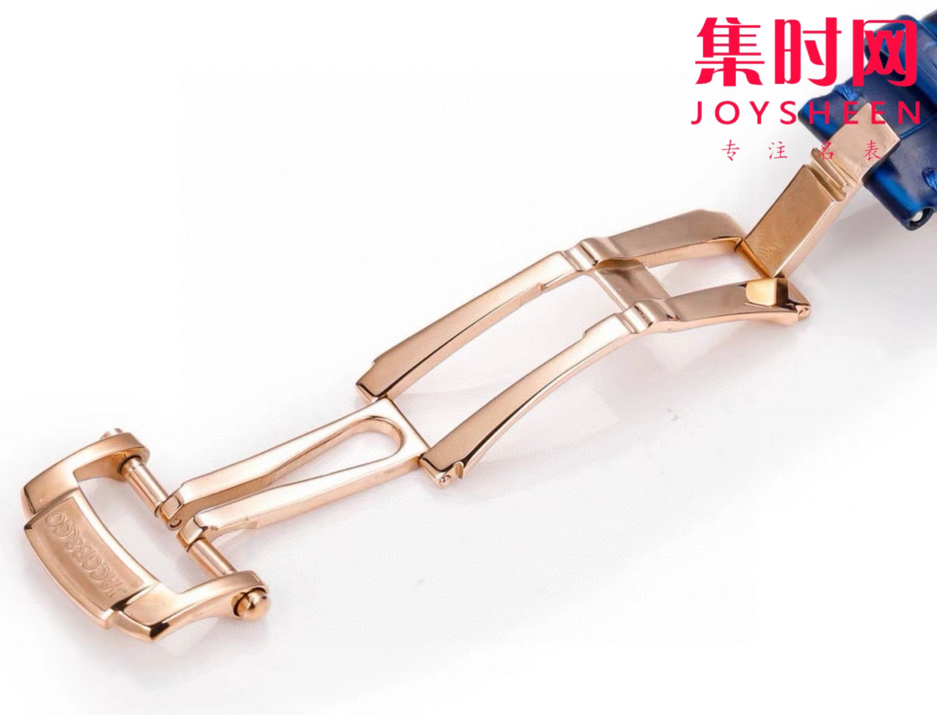 表壳直径47毫米,采用精钢制作,穹形表镜和壳缘显视窗均采用水晶材料,表壳的见光度广,让佩戴者全角度一览无余地欣赏壮观的机芯内部和艺术雕塑的手绘镁质地球与旋转288切面的宝石。