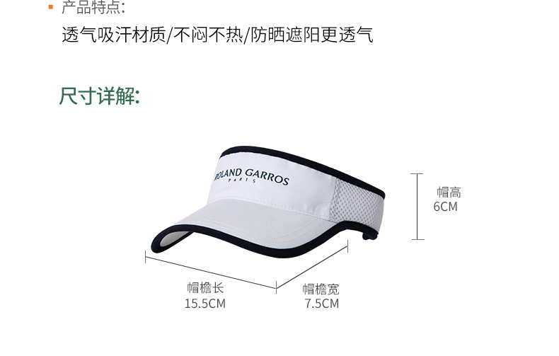 罗兰加洛斯旗舰店正品 夏季运动帽空顶帽女户外遮阳帽防晒太阳帽