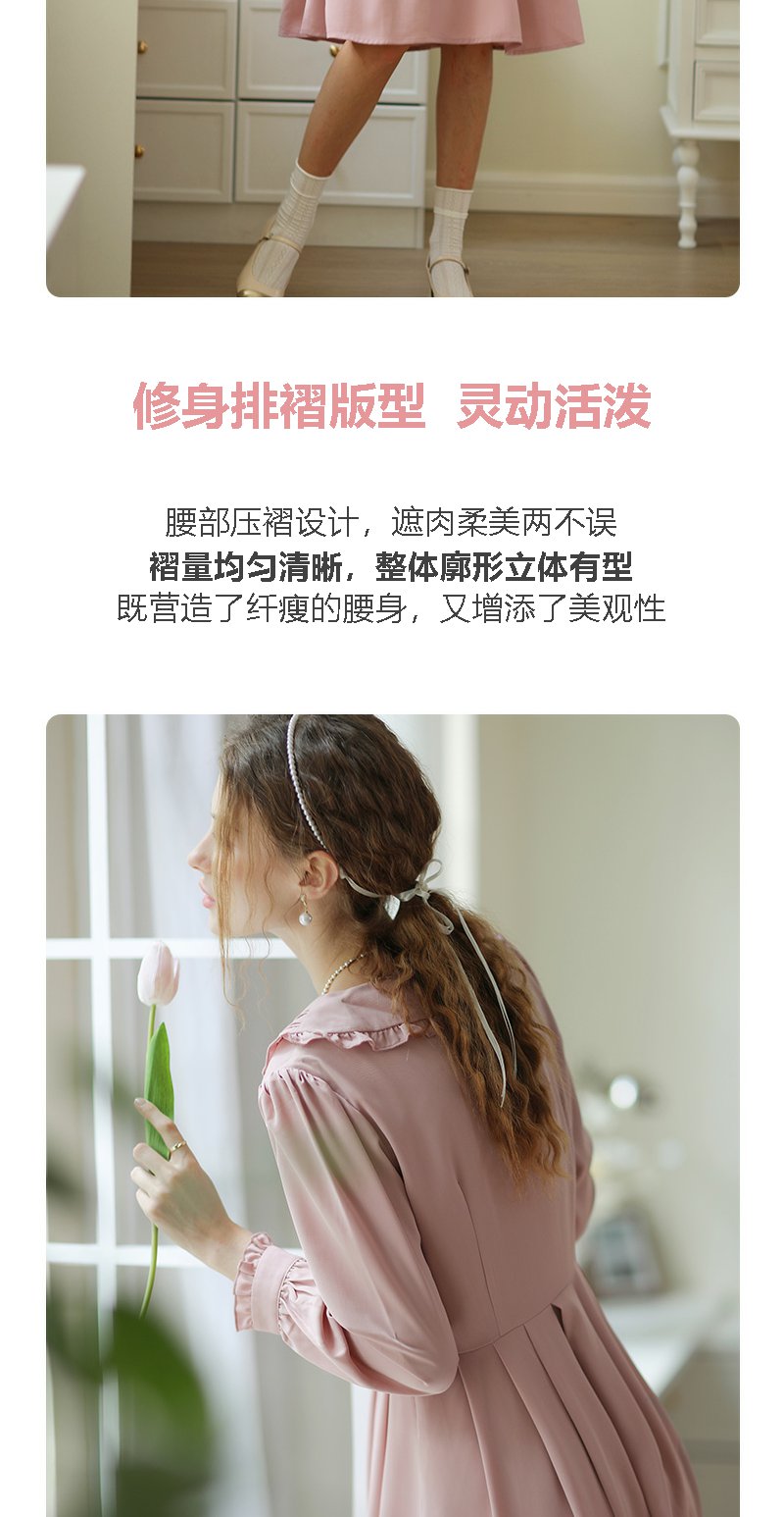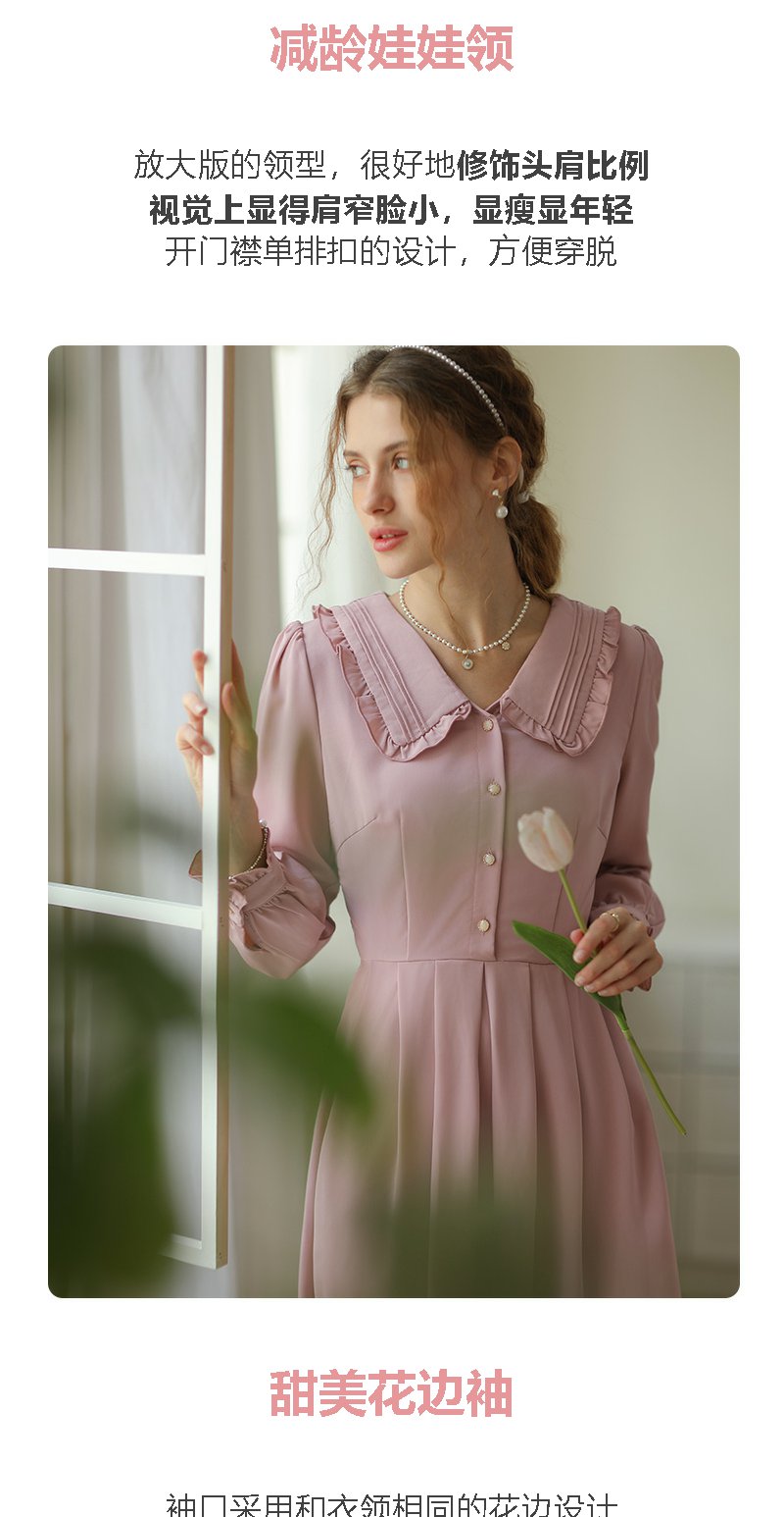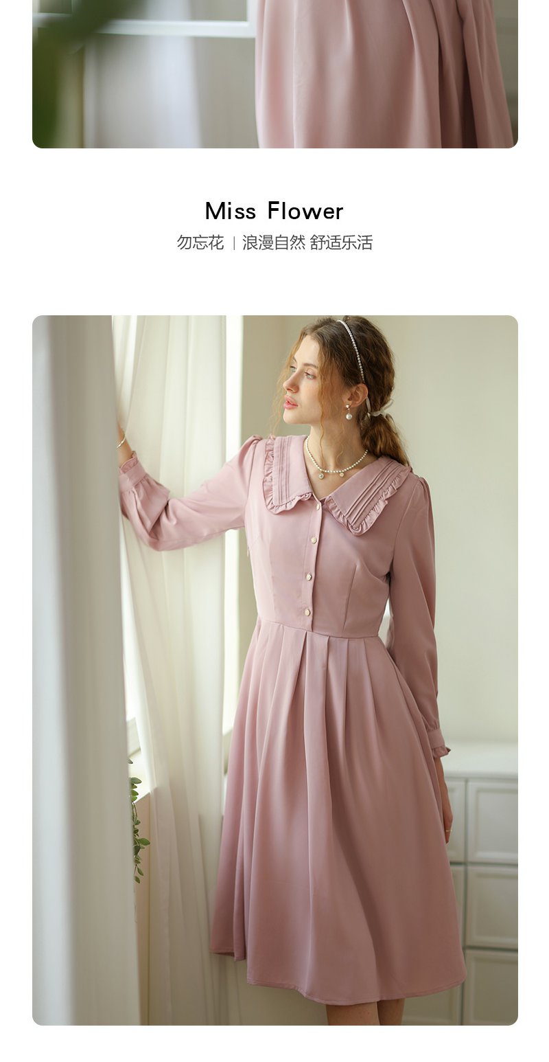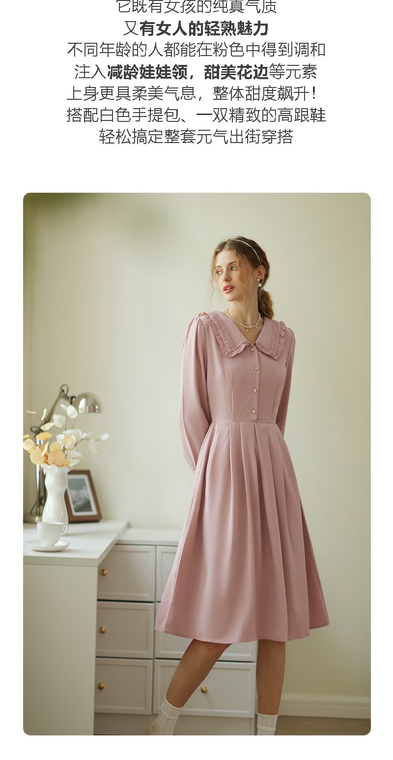勿忘花粉色洋气减龄娃娃领连衣裙女2025春季新款显瘦漂亮裙子春秋