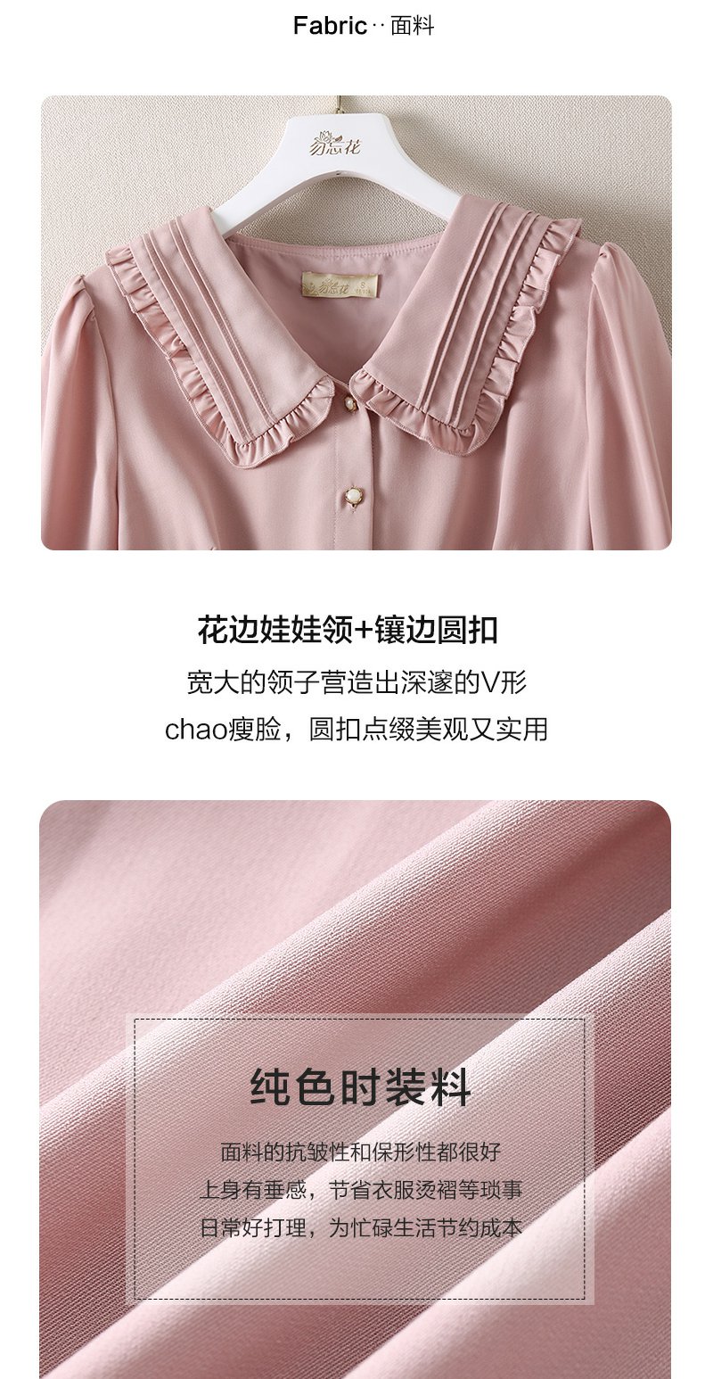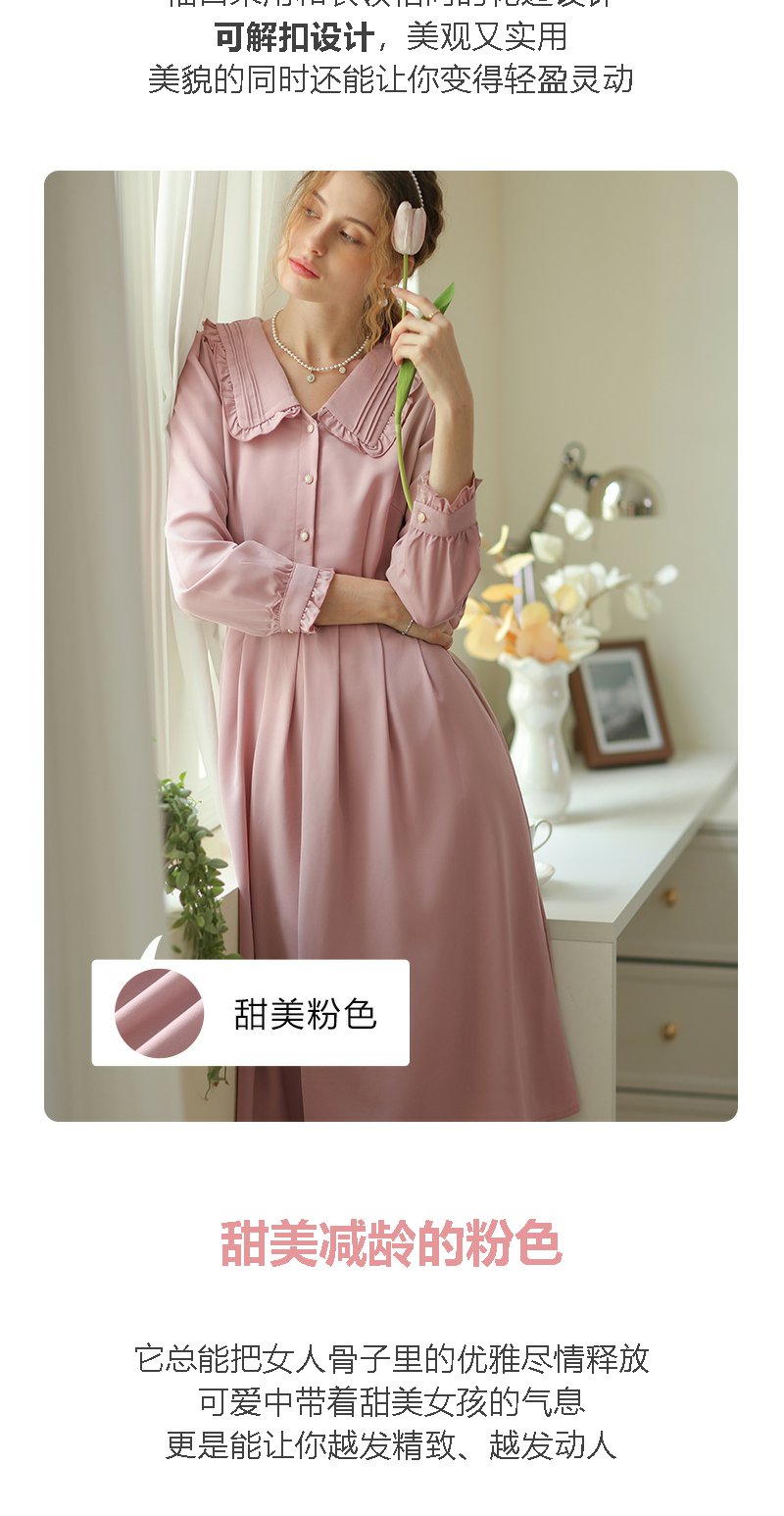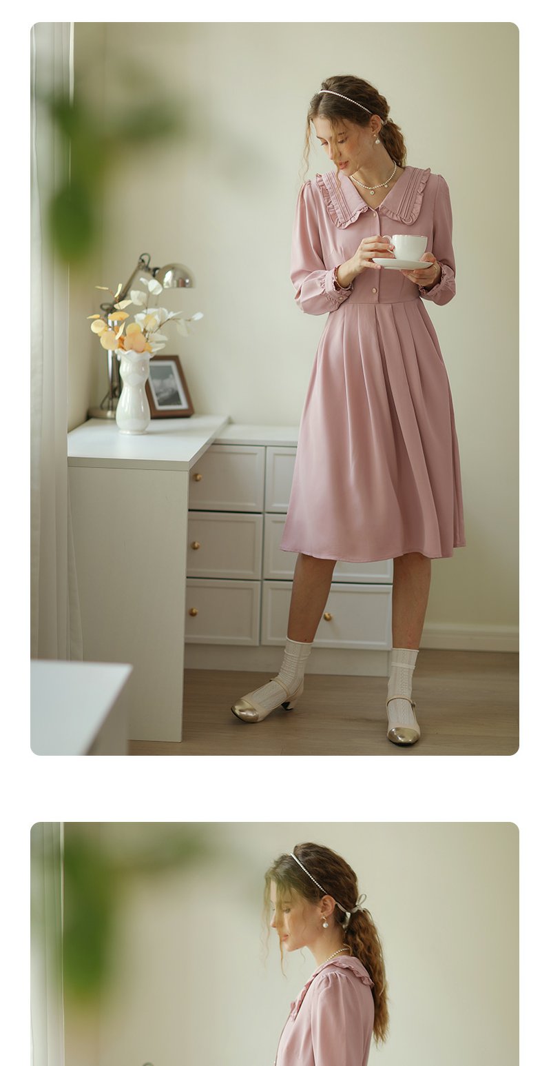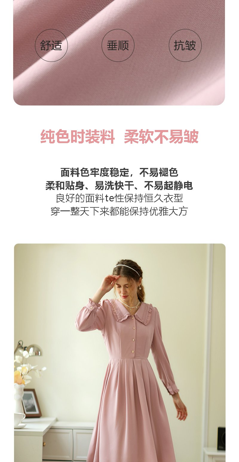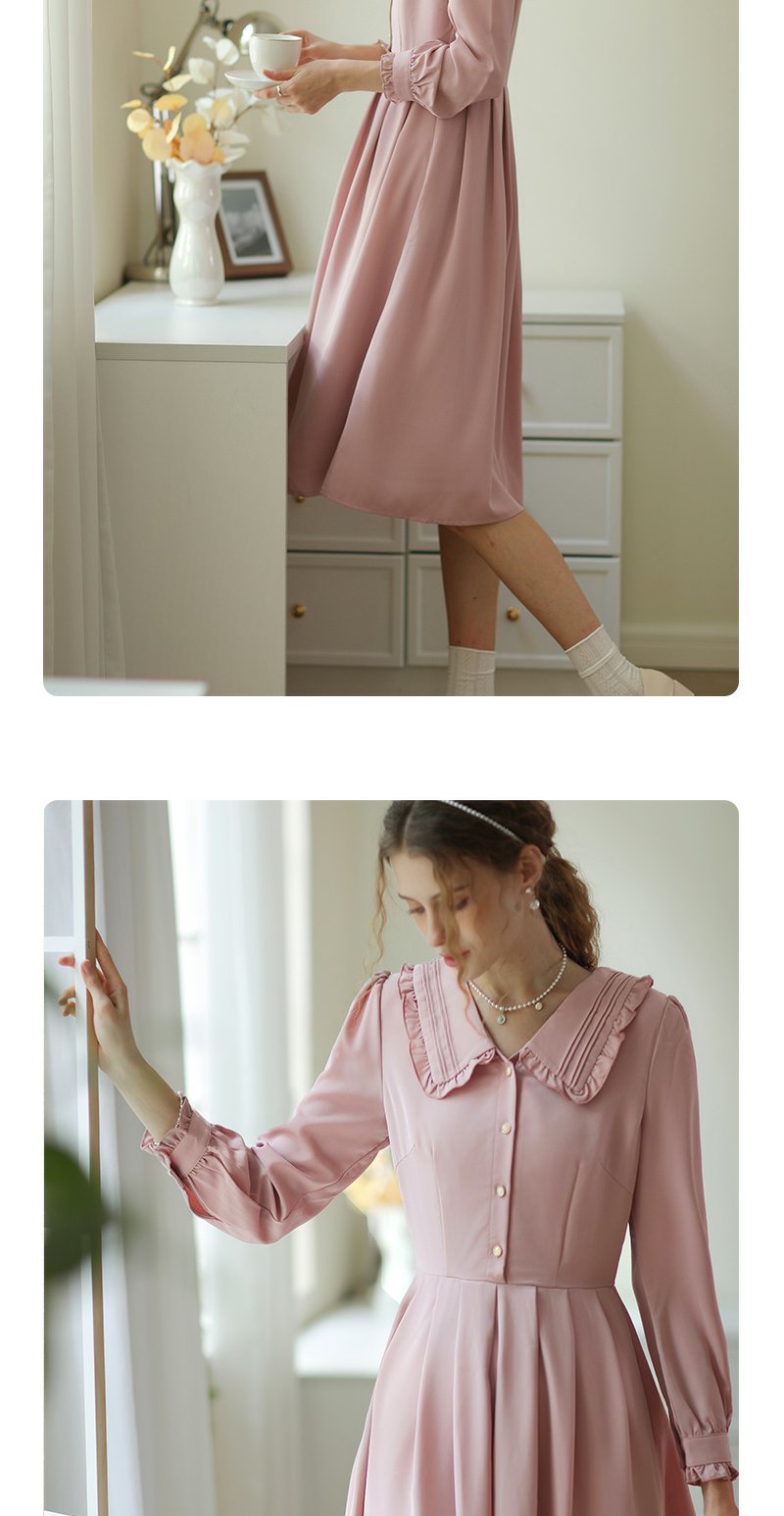 勿忘花粉色洋气减龄娃娃领连衣裙女2025春季新款显瘦漂亮裙子春秋