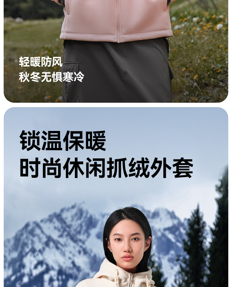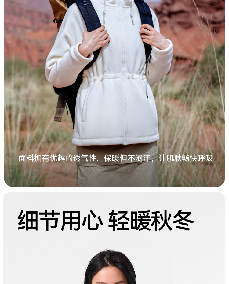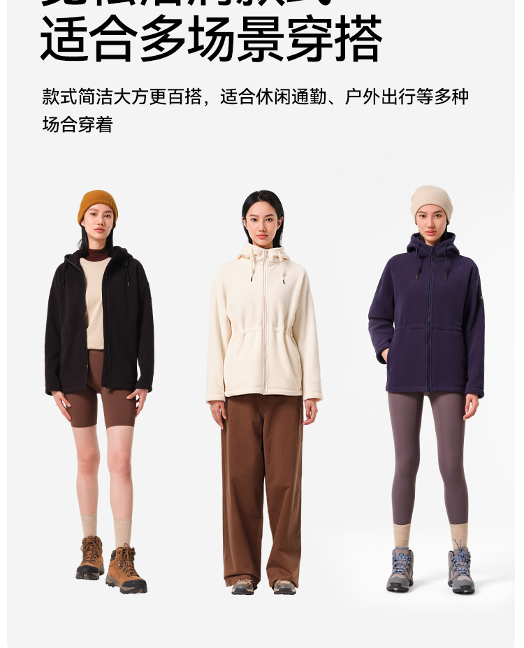伯希和中长款抓绒衣女户外防风运动上衣冲锋衣内胆外套百搭休闲衣