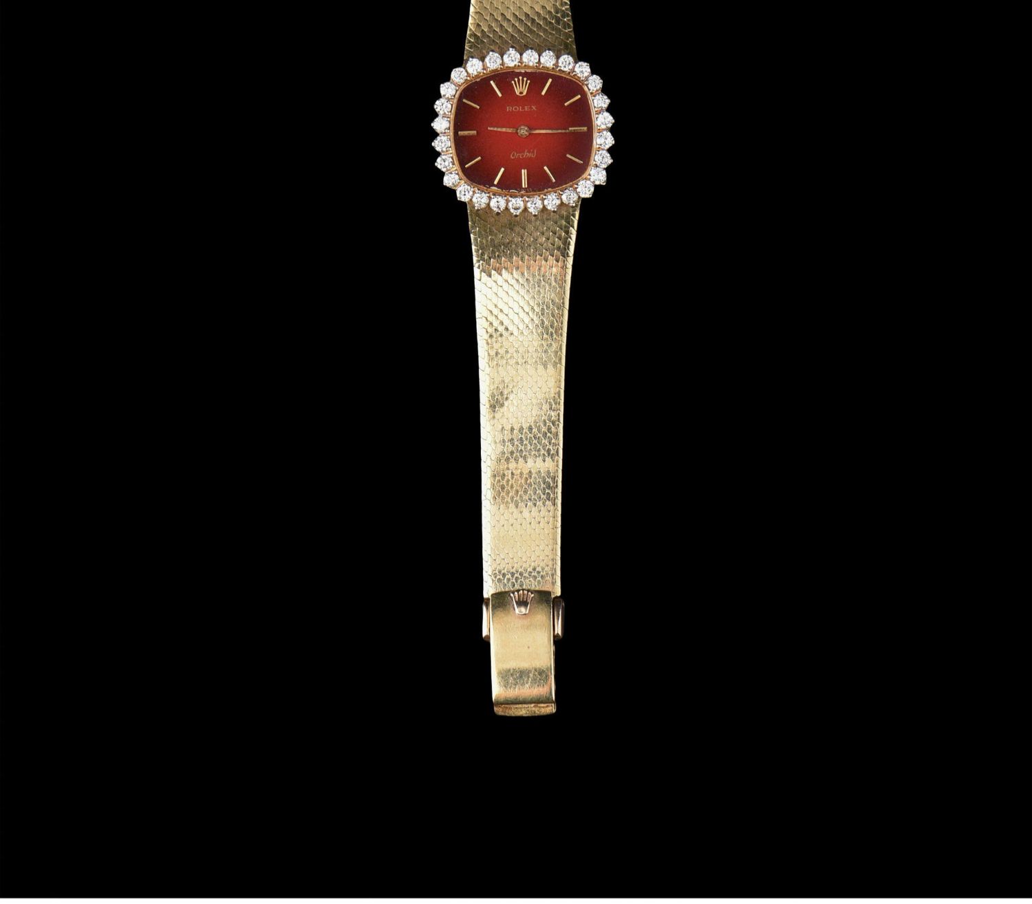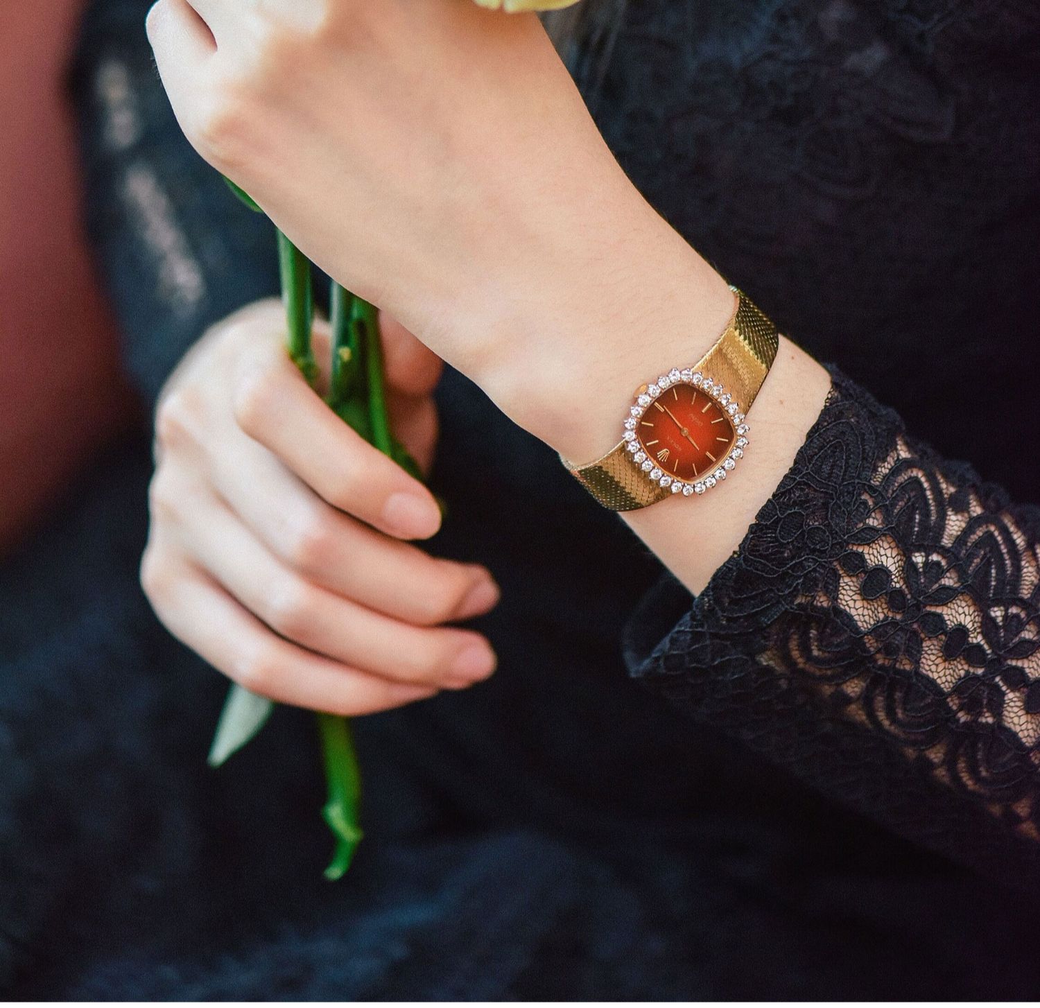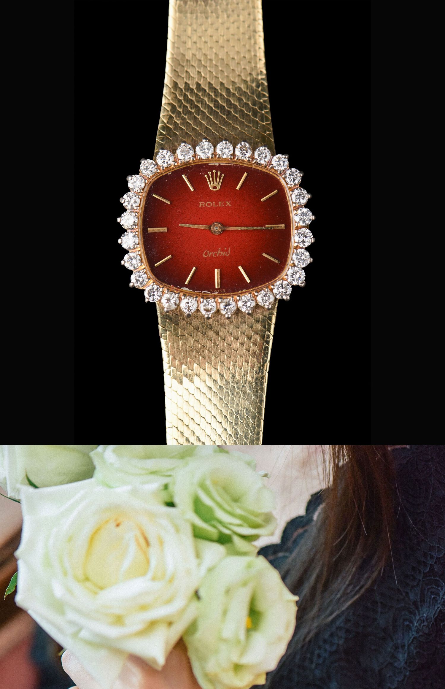 独角鹿西洋古董瑞士二手手表烤漆红盘18k金镶钻石女士腕表带原盒