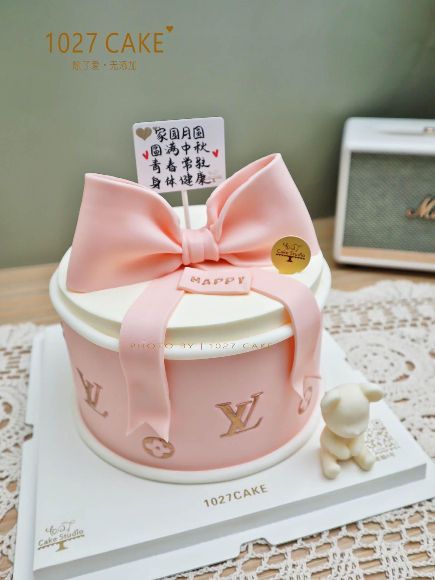 1027CAKE | 奢侈品LV 蝴蝶结 LV礼物盒 翻糖装饰蛋糕 粉色系