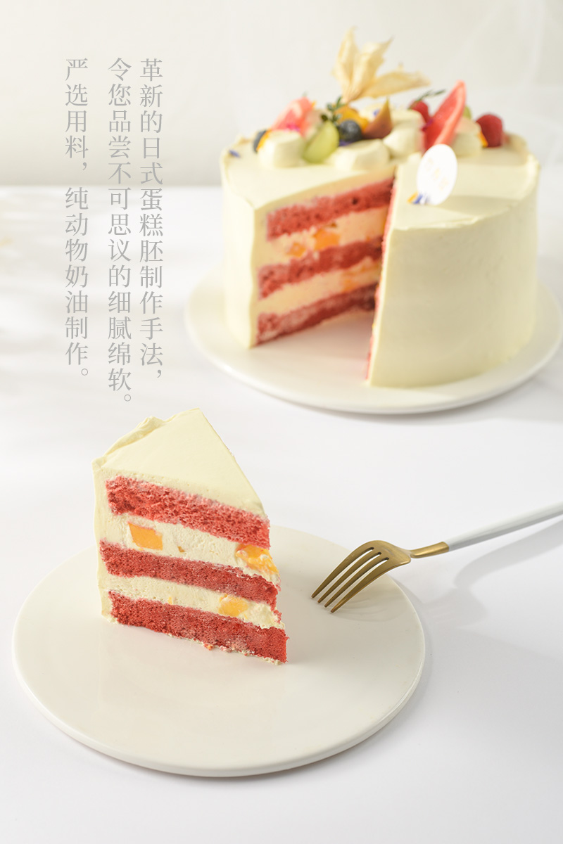 (可定制无蔗糖)红丝绒水果蛋糕 / 日式云朵蛋糕系列 / 多尺寸可选