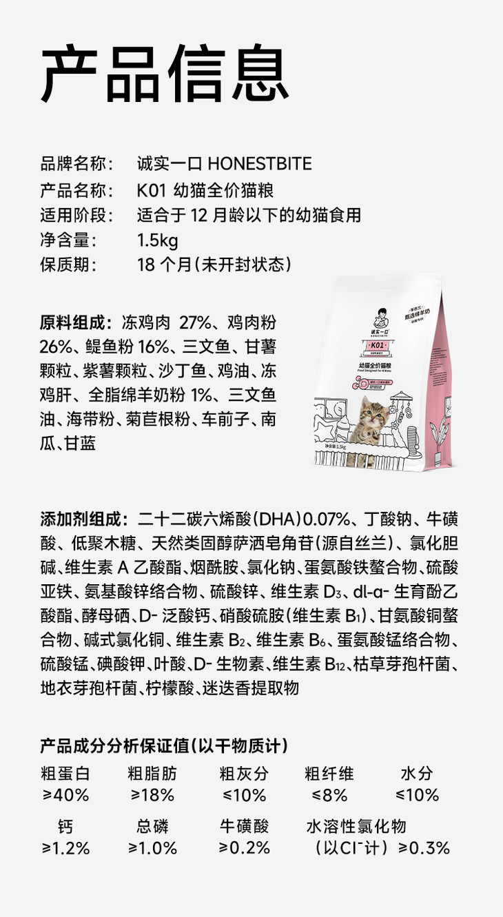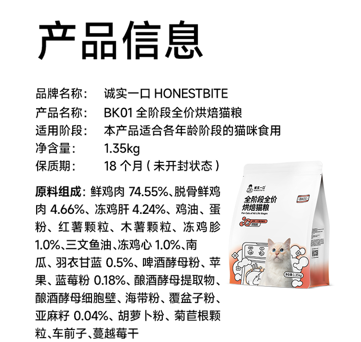诚实一口猫粮实惠装乳鸽宠物主食官方旗舰成幼猫烘焙猫咪鸡肉冻干