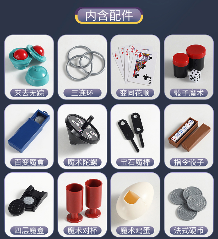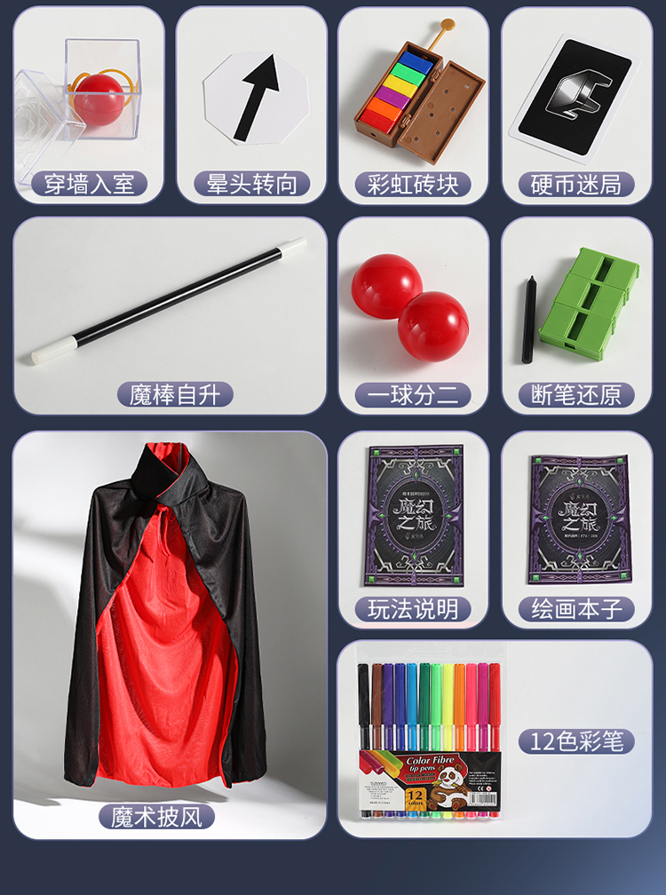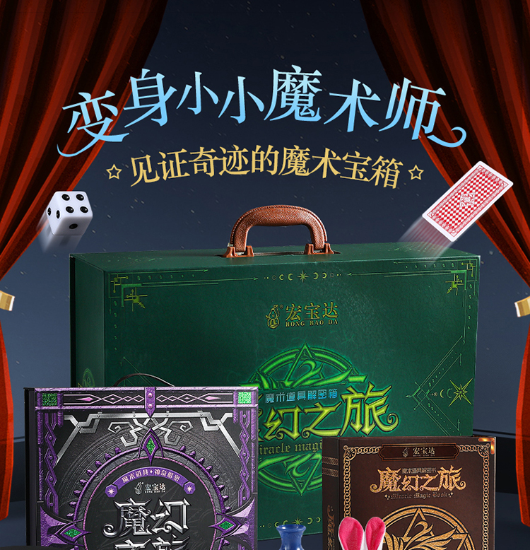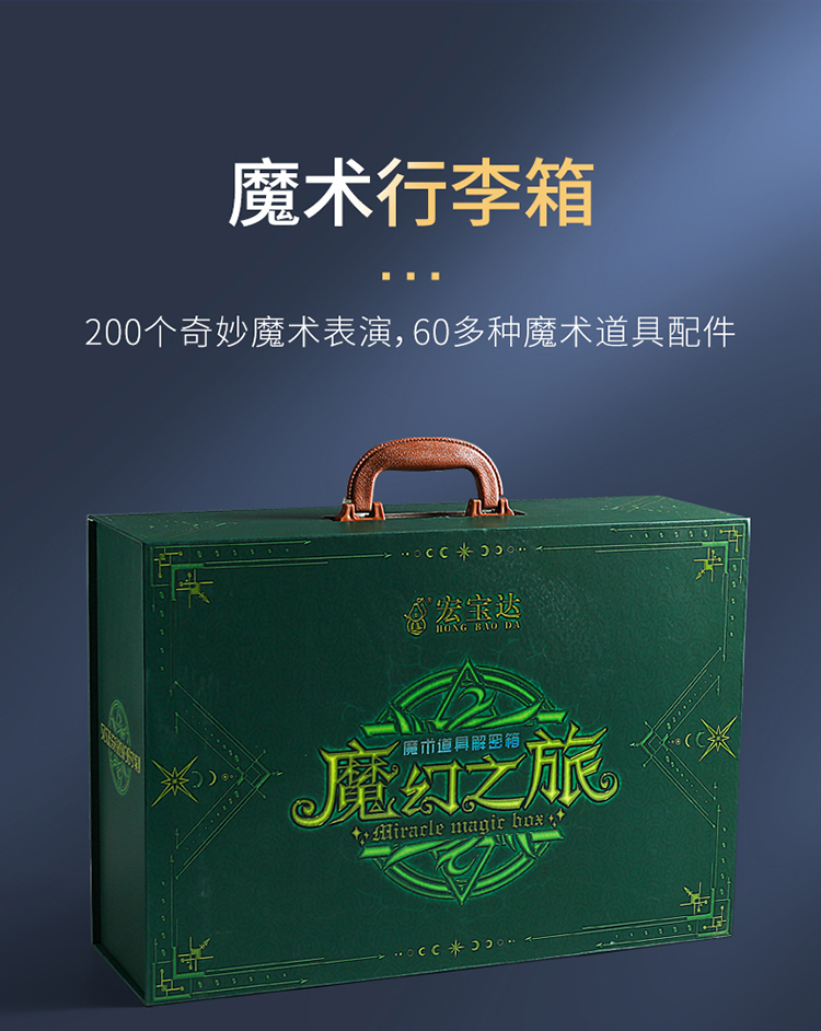 【赠魔法披风】HONGBAODA魔术道具礼盒套装 200+魔术表演 神秘魔术宝箱 开启你的解密之旅 魔术道具箱