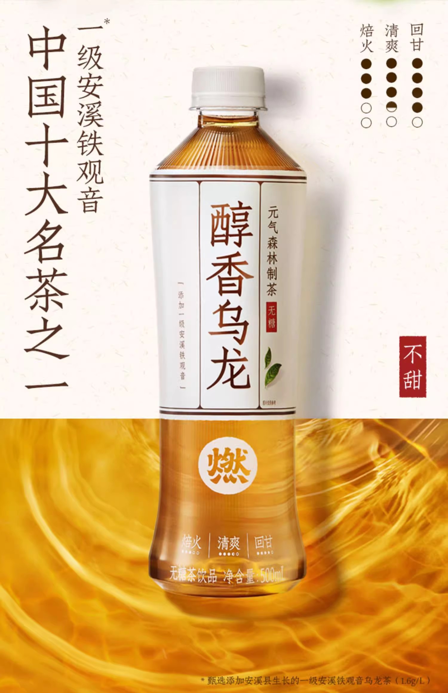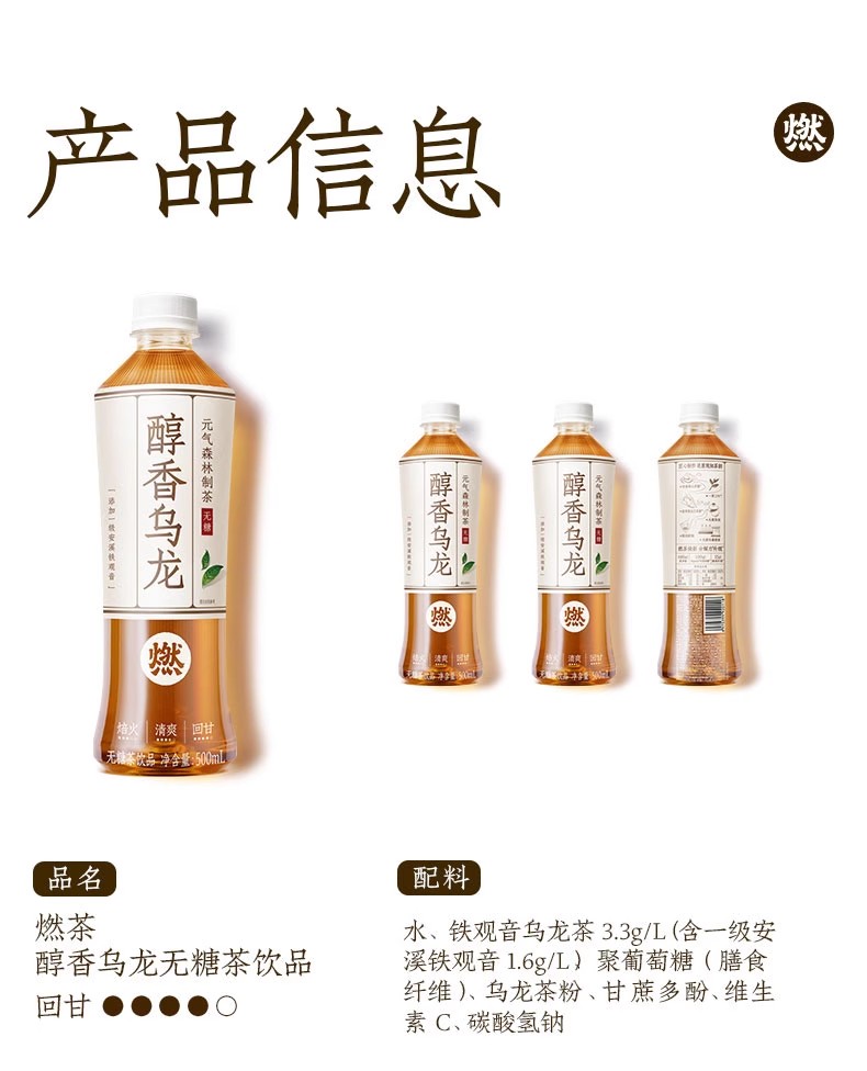 燃茶无糖醇香乌龙茶饮料500ml*15瓶