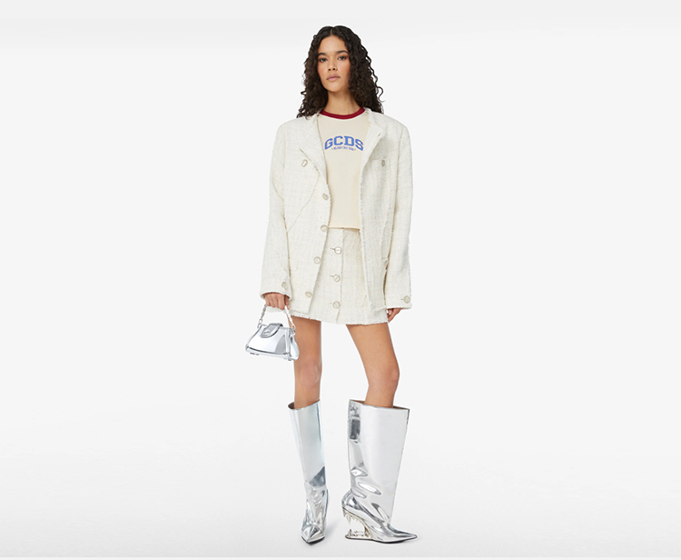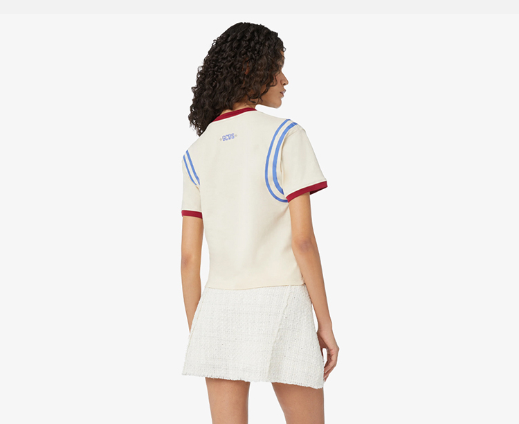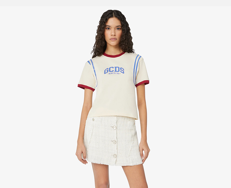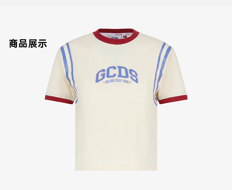 GCDS 女士字母徽标印花棉质圆领短袖T恤 米白色 A1CW2305JC515