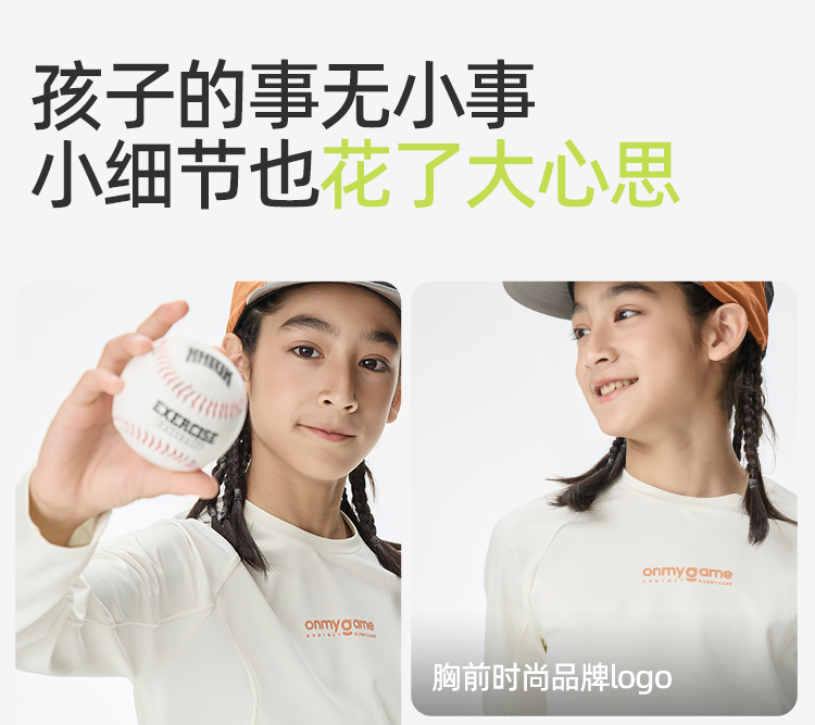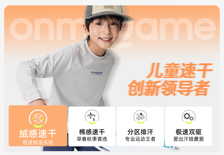 onmygame【超轻绒感速干衣】男童长袖T恤保暖抗静电A类亲肤25秋新