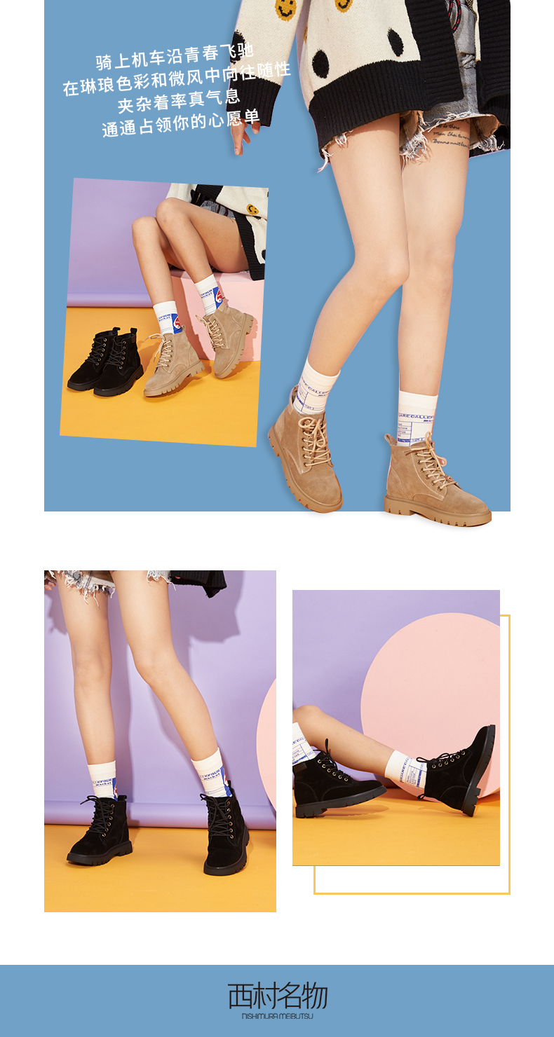 西村名物2020冬季新款英伦风复古时尚平底系带牛皮马丁靴女T29DS40661