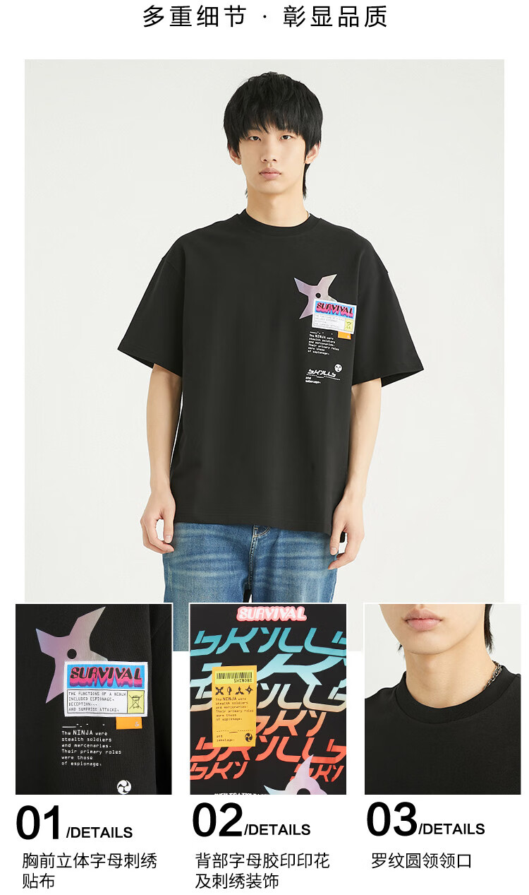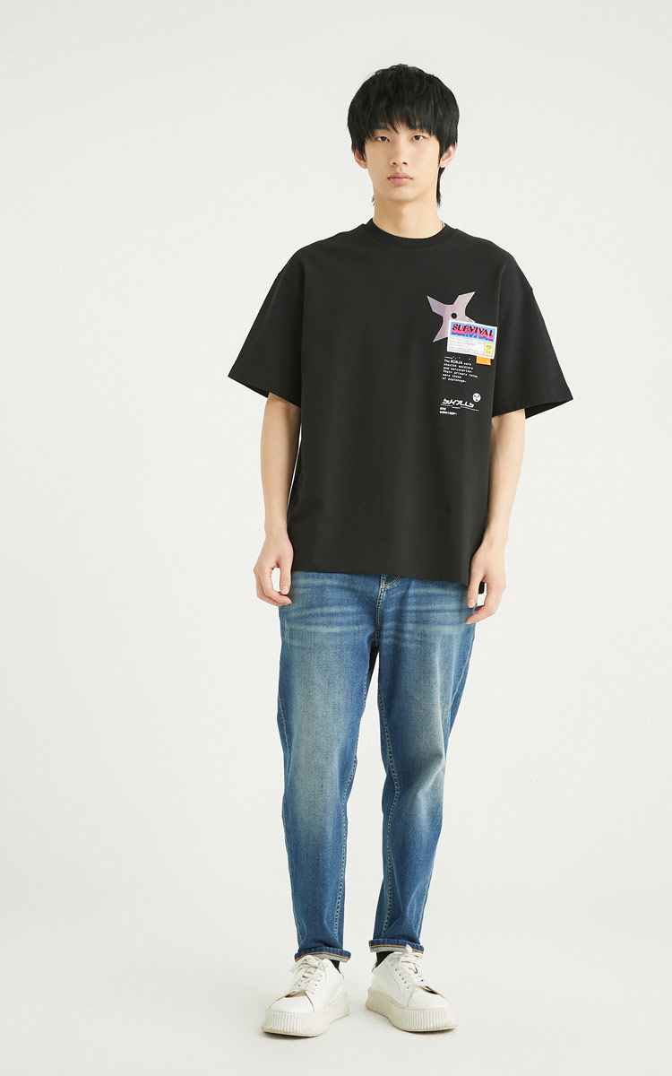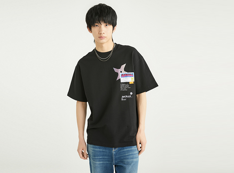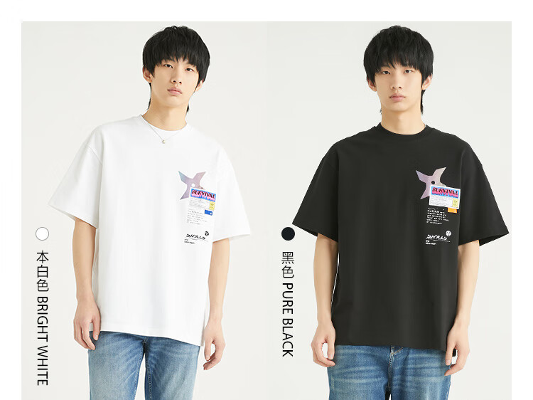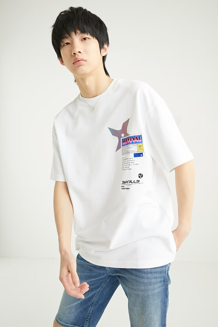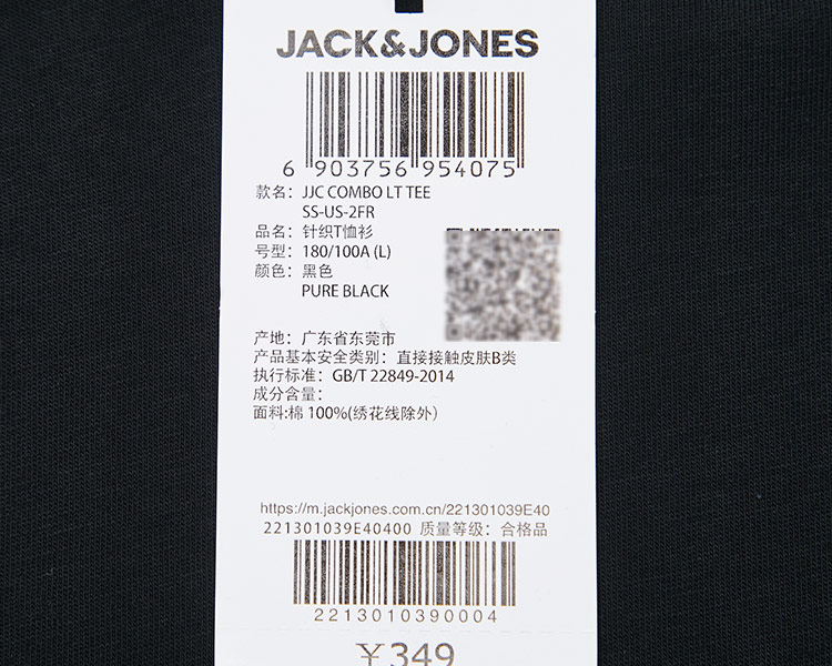 JackJones杰克琼斯男士装夏季纯棉宽松潮男士字母短袖T恤221301039 E40黑色