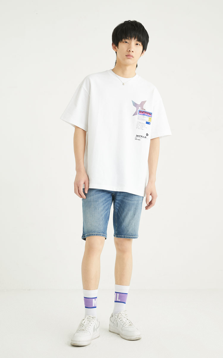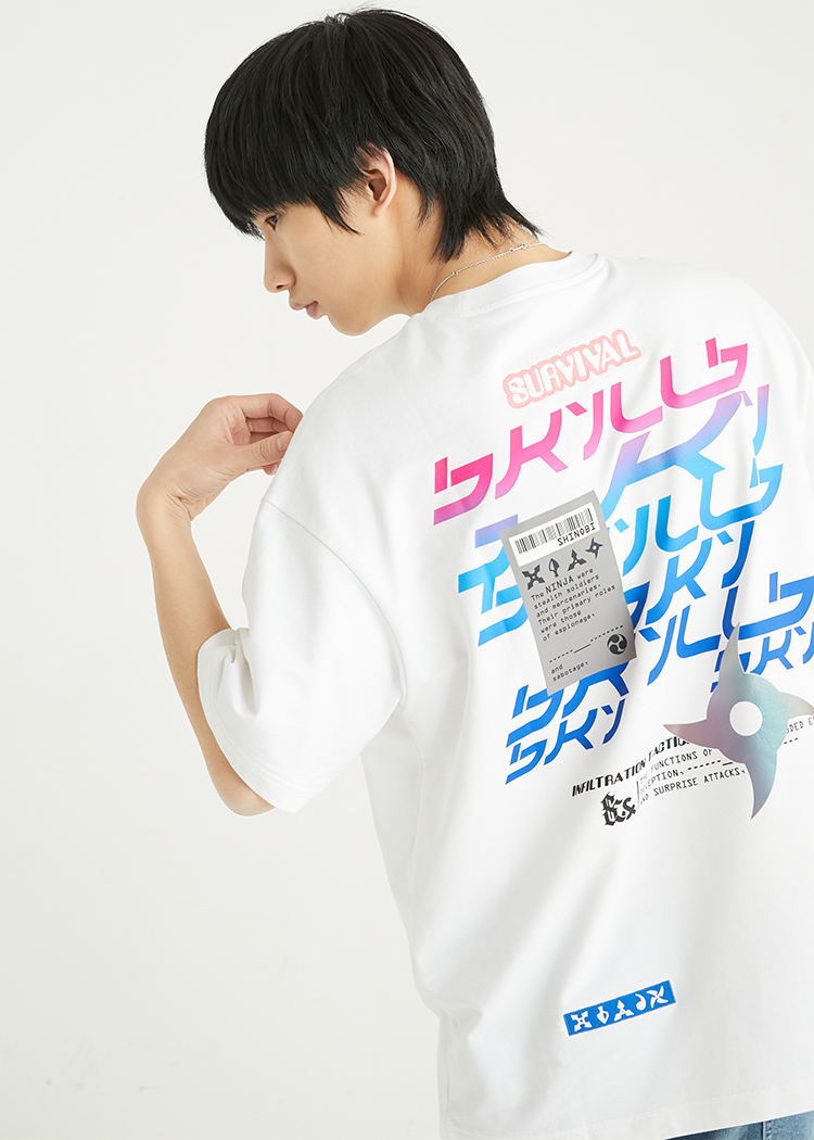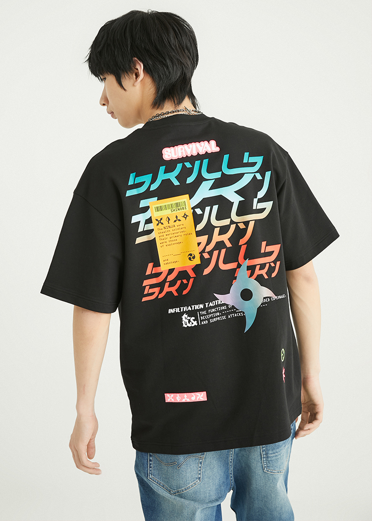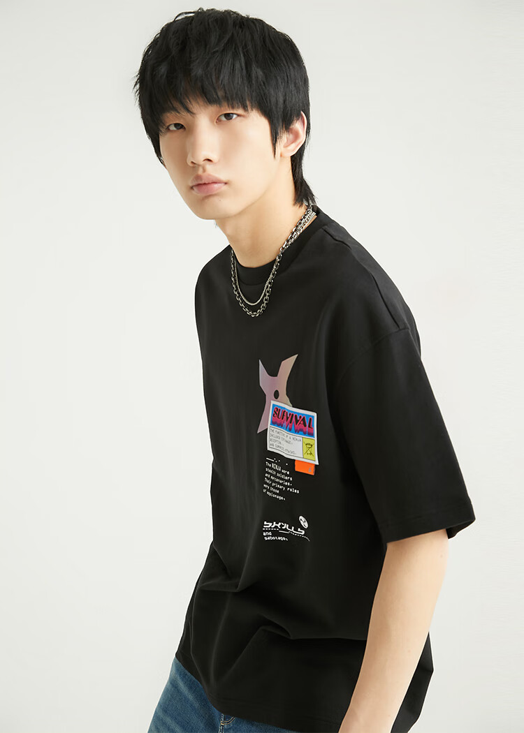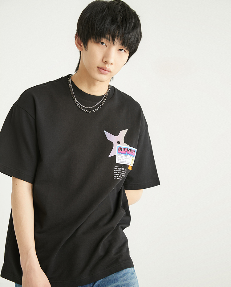 JackJones杰克琼斯男士装夏季纯棉宽松潮男士字母短袖T恤221301039 E40黑色