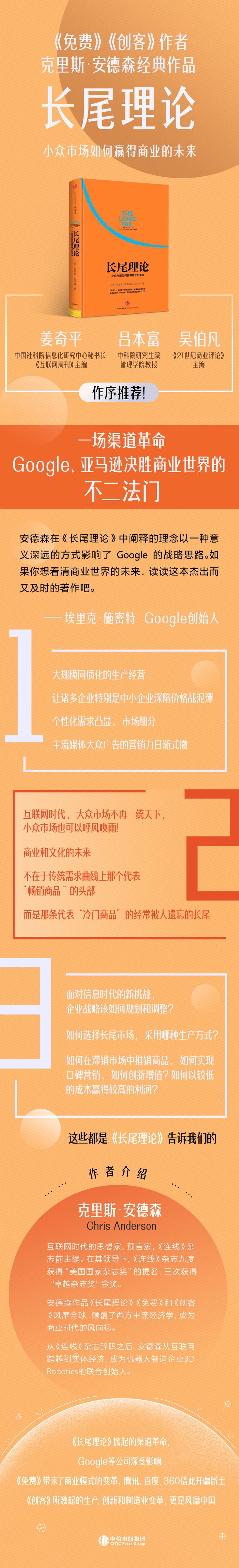 安德森在《长尾理论》中阐释的理念以一种意义深远的方式影响了Google的战略思路。如果你想看清商业世界的未来,读读这本杰出而又及时的著作吧。