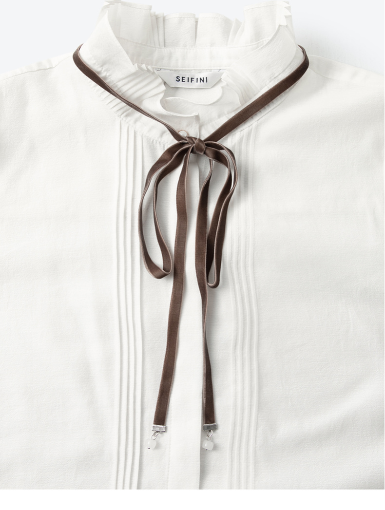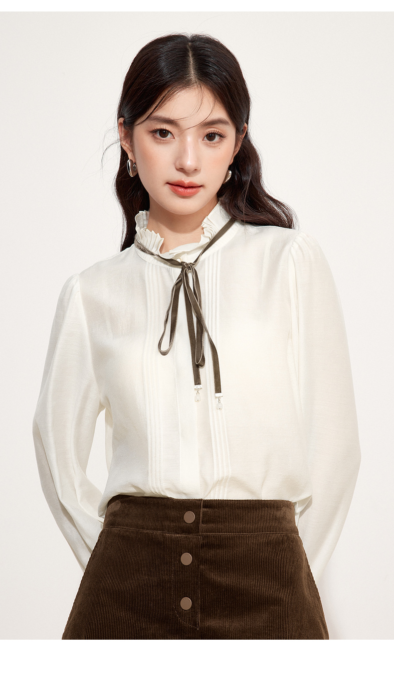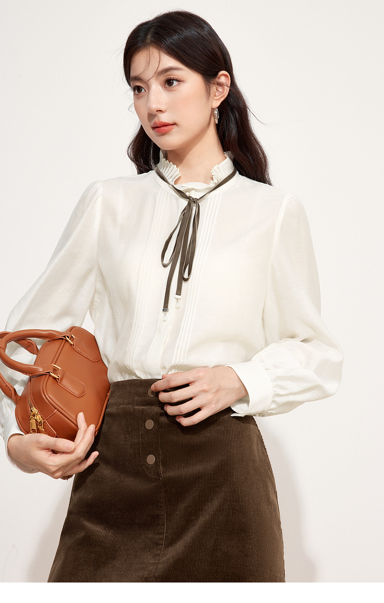 【积分换购不退货】【特惠不退货】诗凡黎法式衬衫2024秋新款木耳边领衬衣女3F9122181