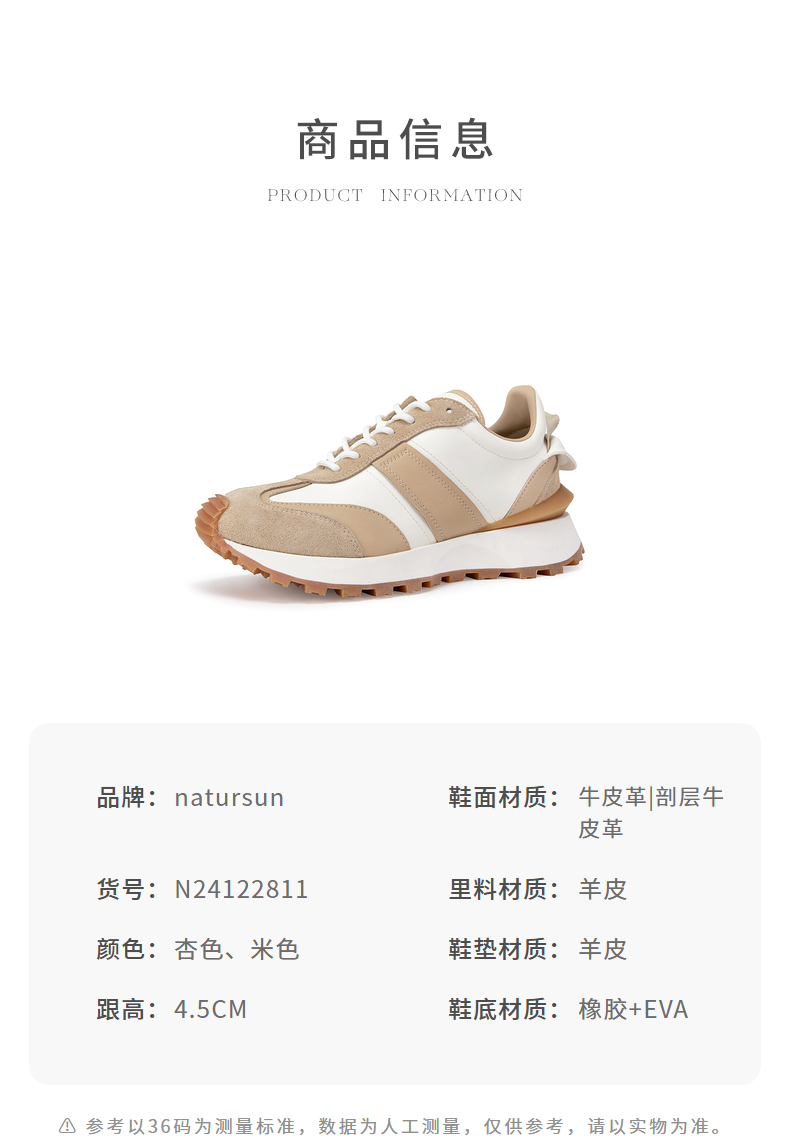 natursun运动鞋女秋季厚底增高阿甘鞋休闲轻便复古德训鞋N24122811