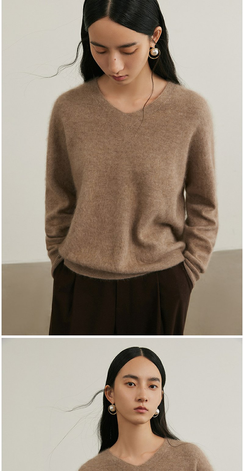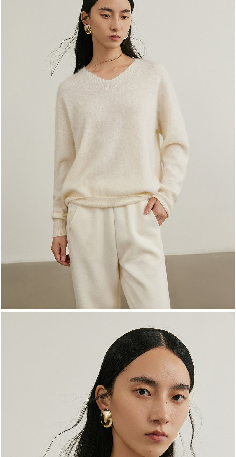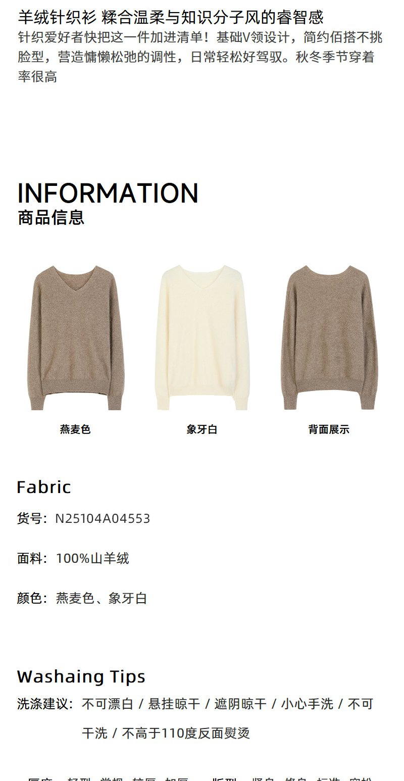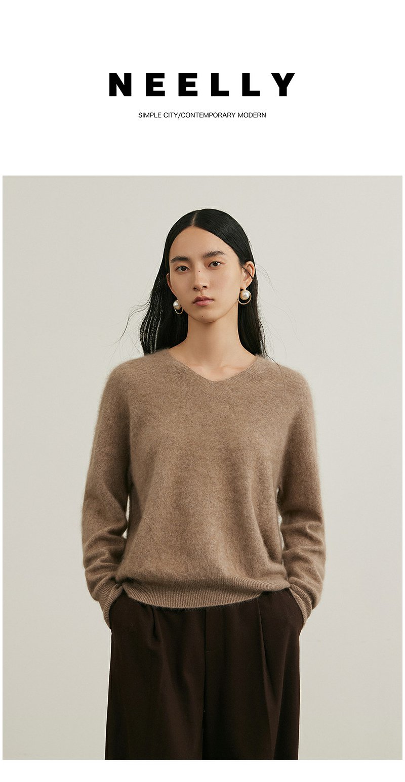 NEELLY纳俪商场同款冬季新款羊绒针织衫女基础V领慵懒百搭针织衫N25104A04553