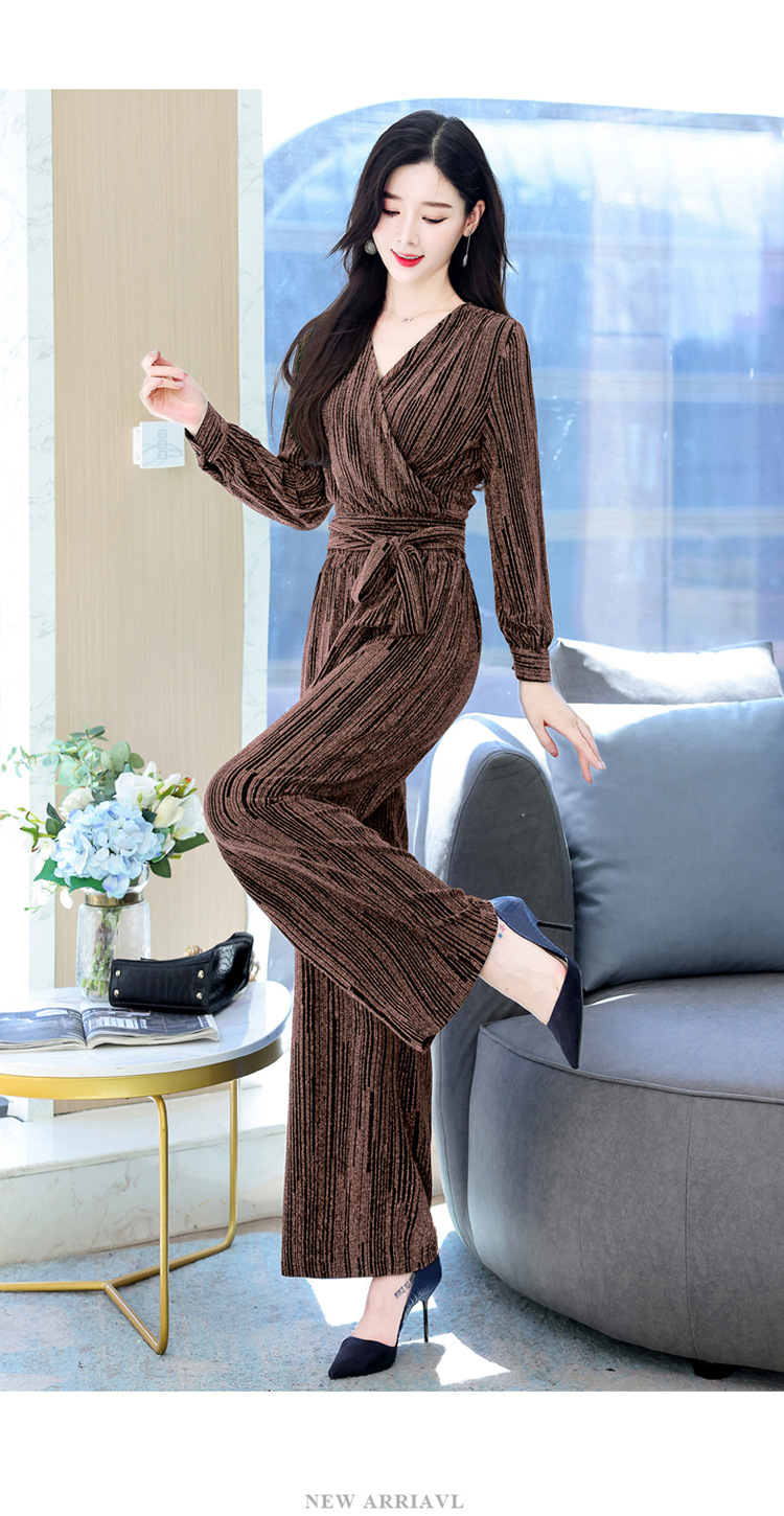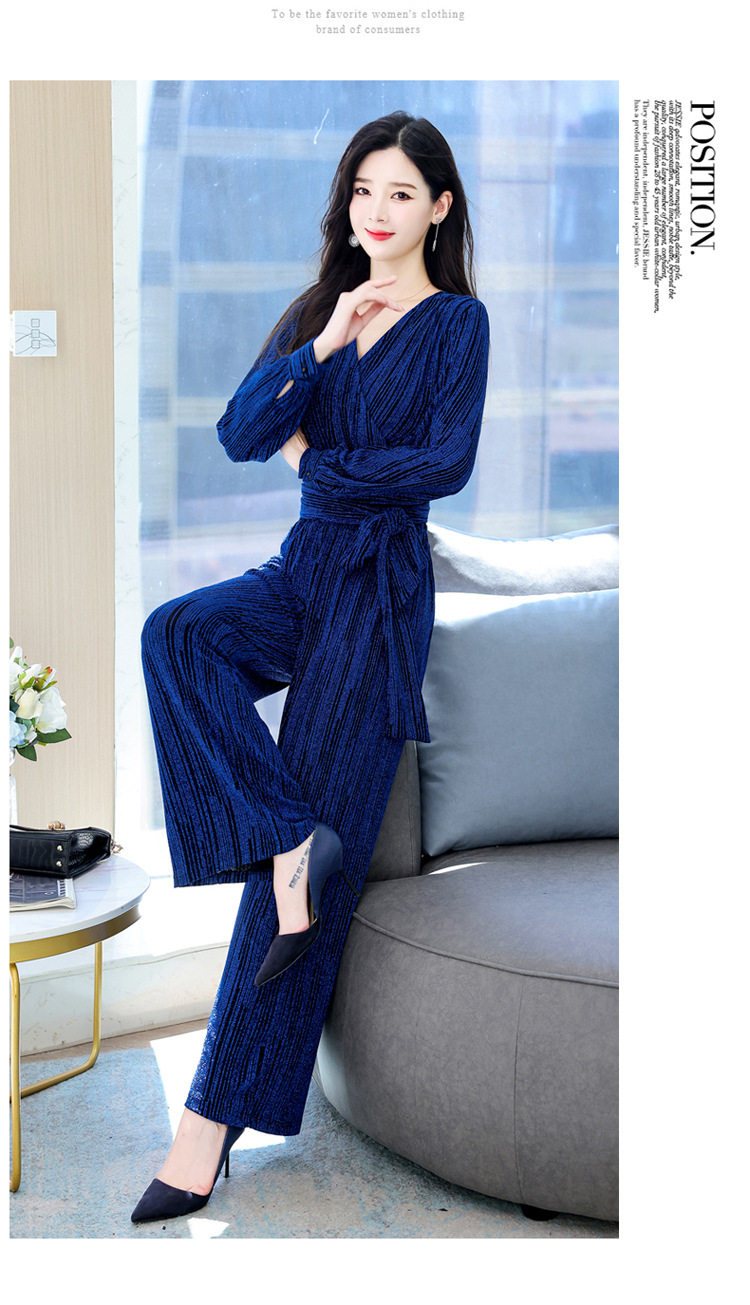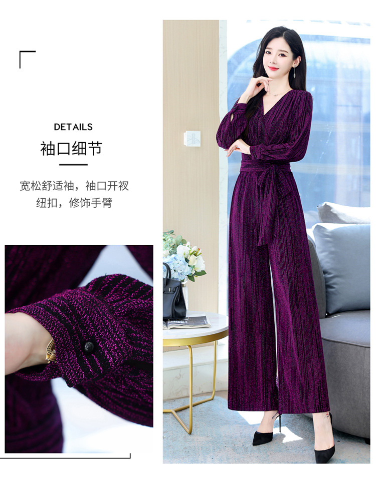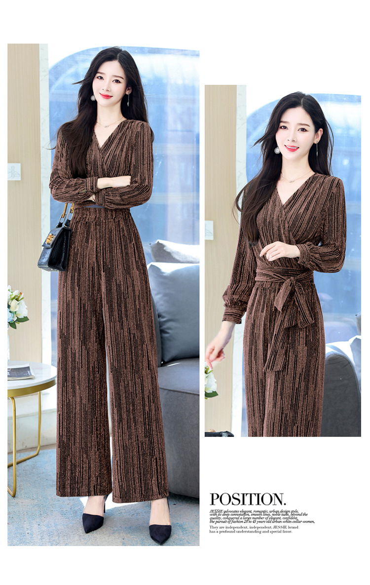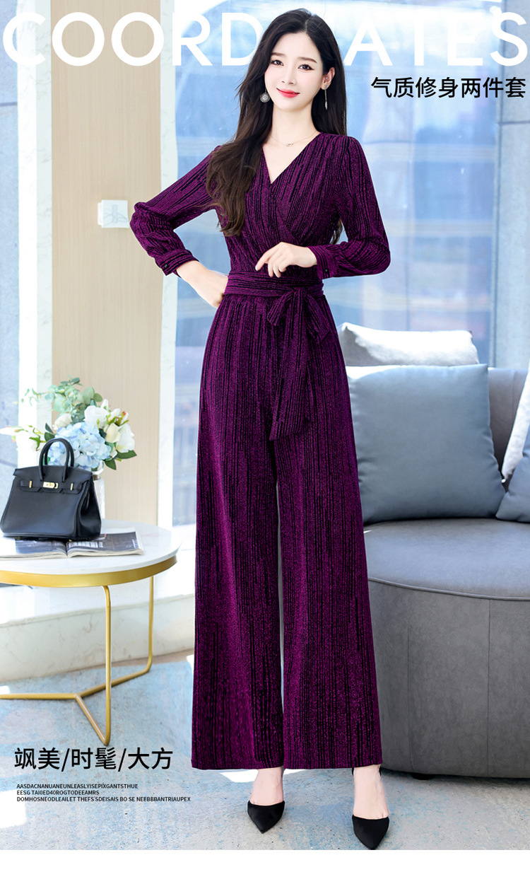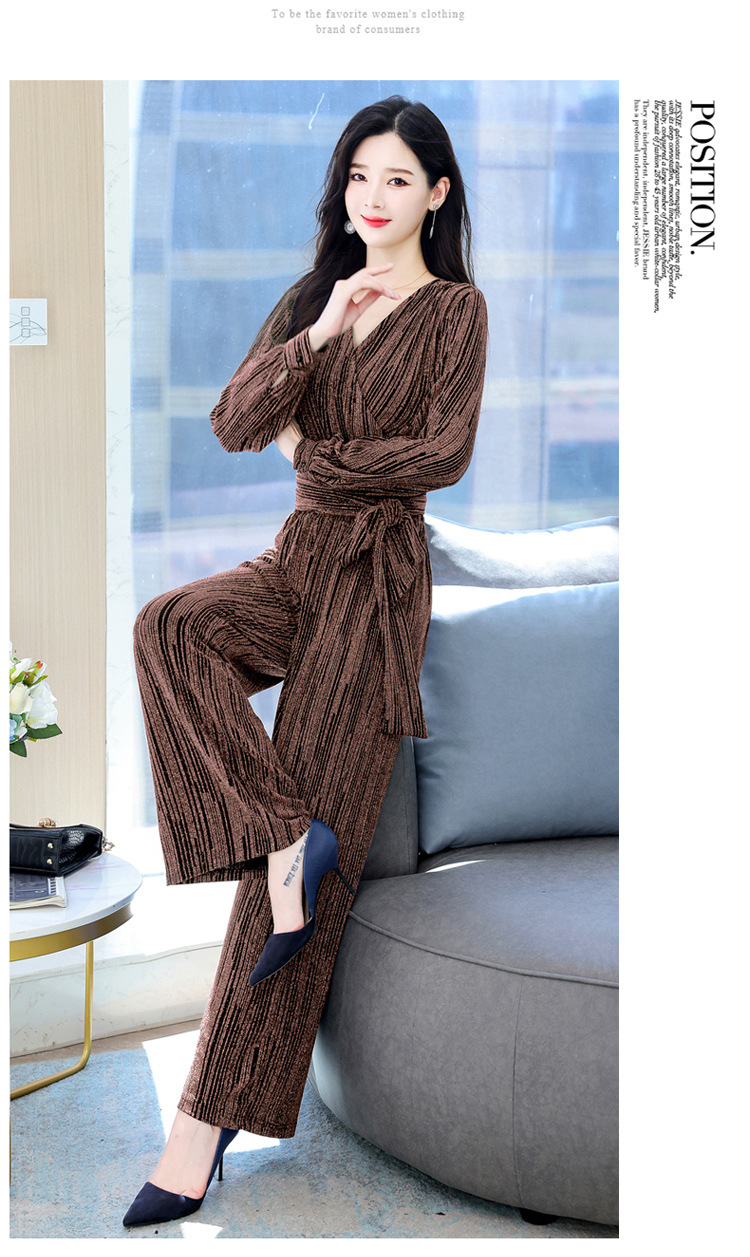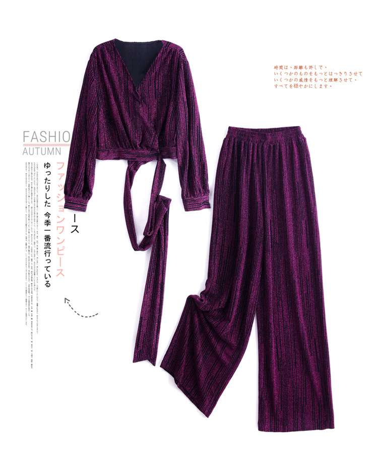新款韩版休闲宽松时尚气质系带阔腿裤两件套装HR-WHA1019