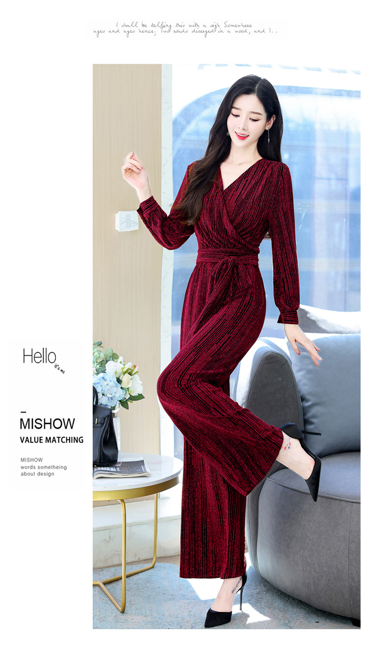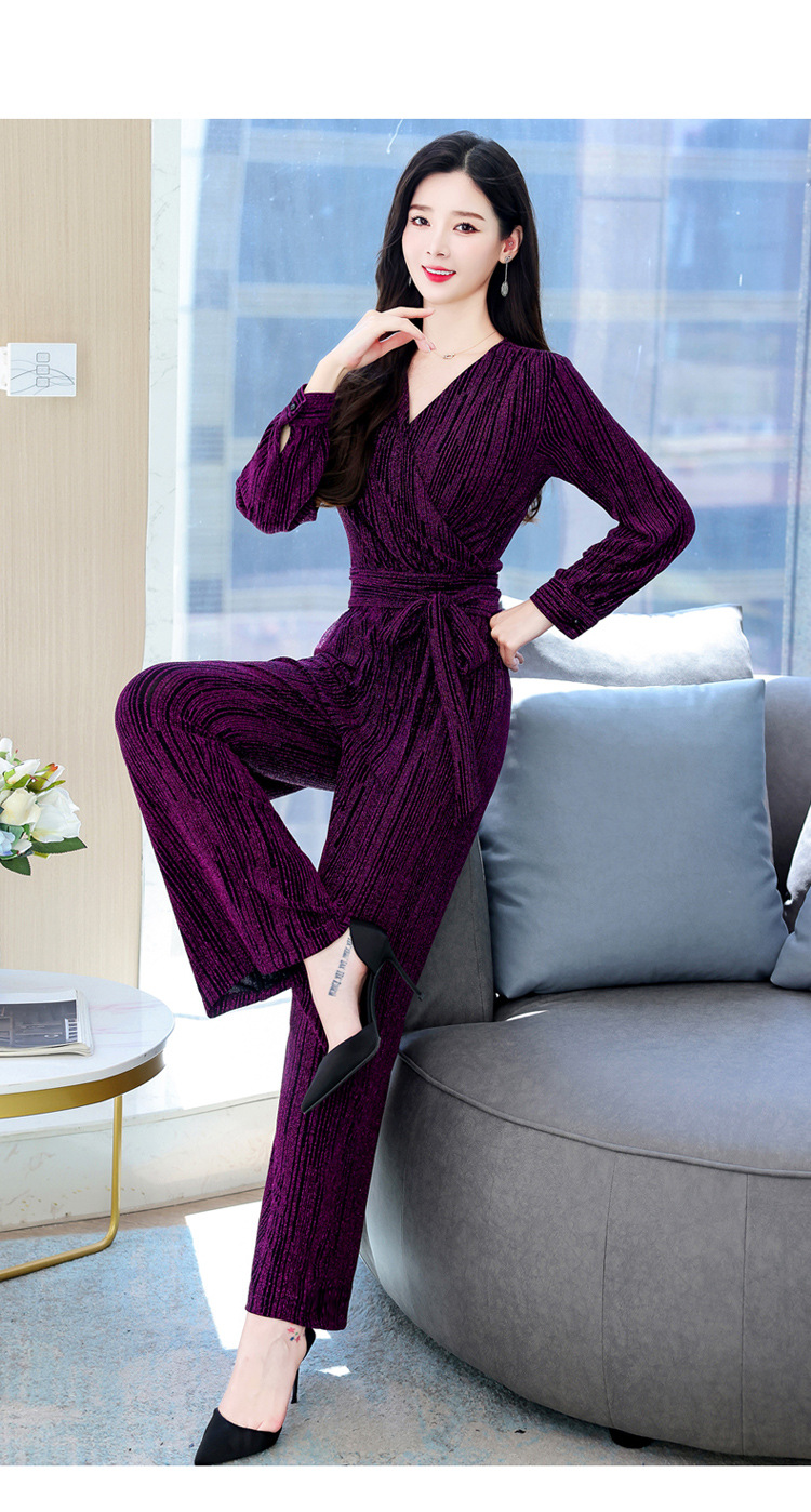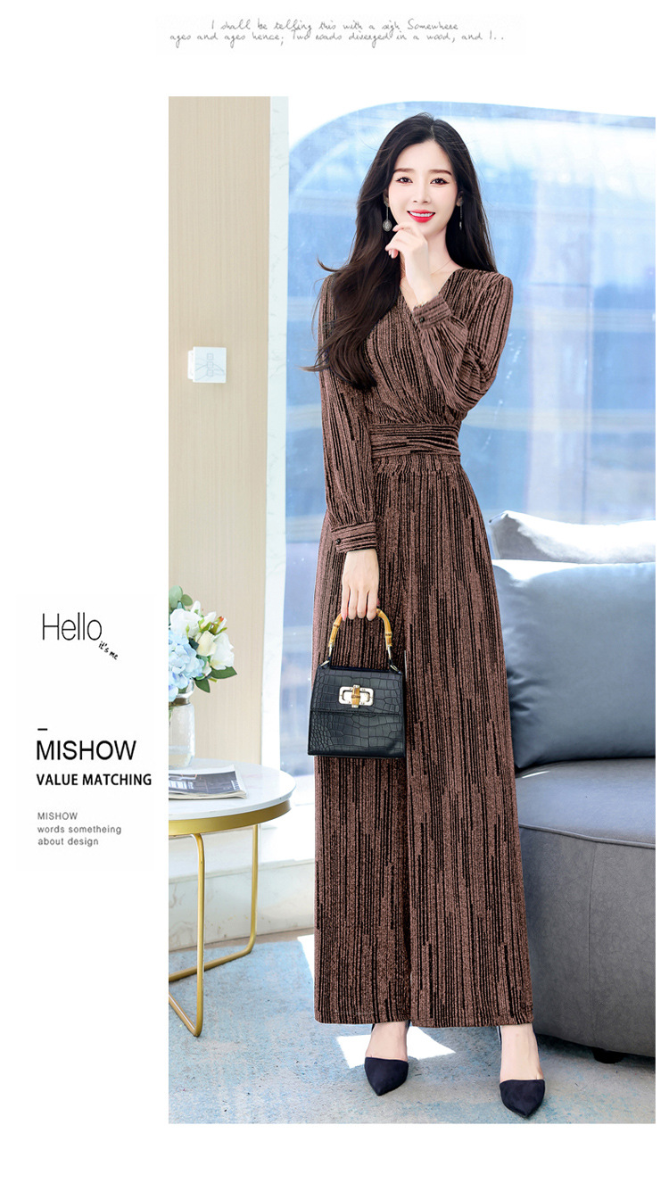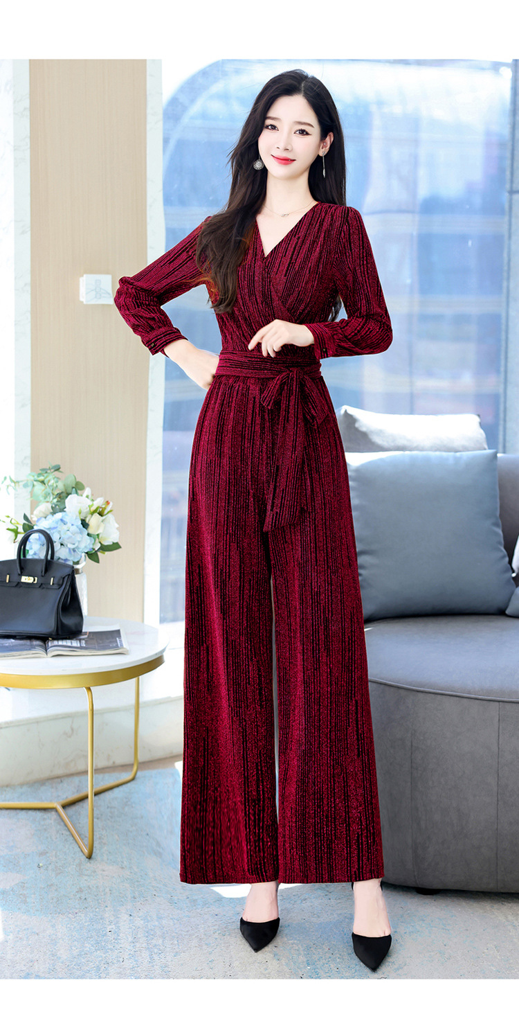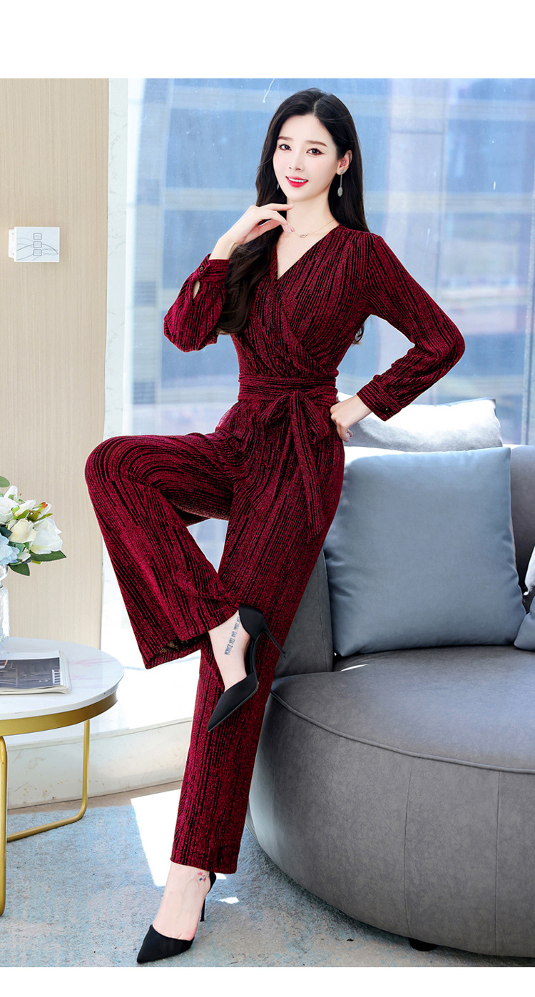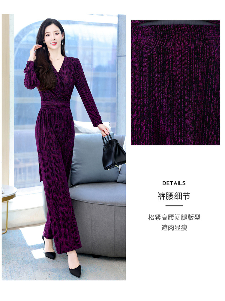 新款韩版休闲宽松时尚气质系带阔腿裤两件套装HR-WHA1019
