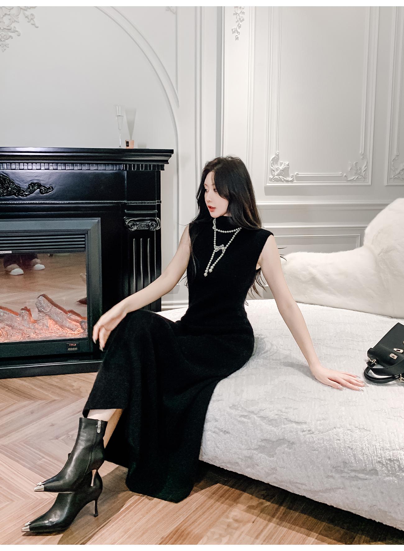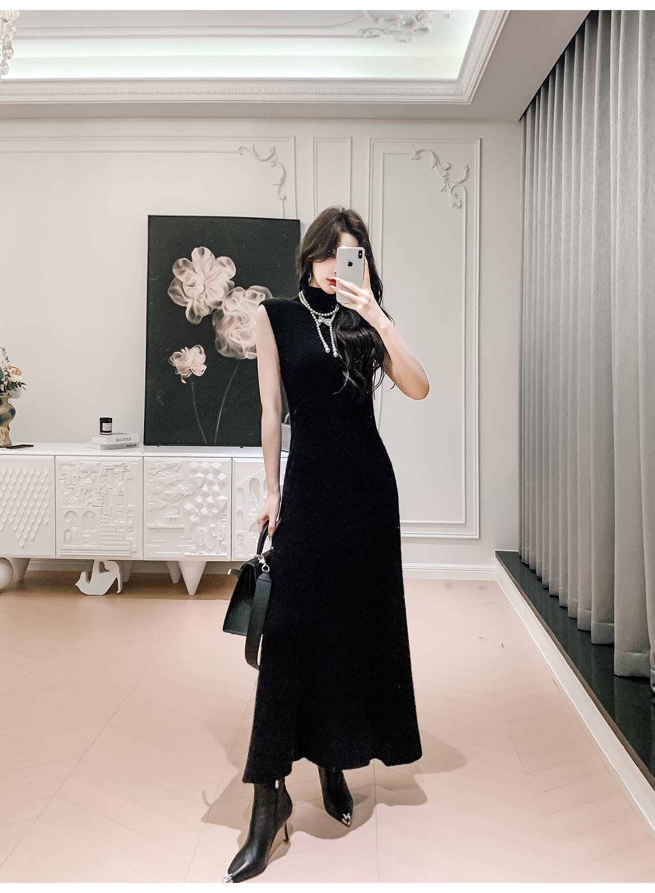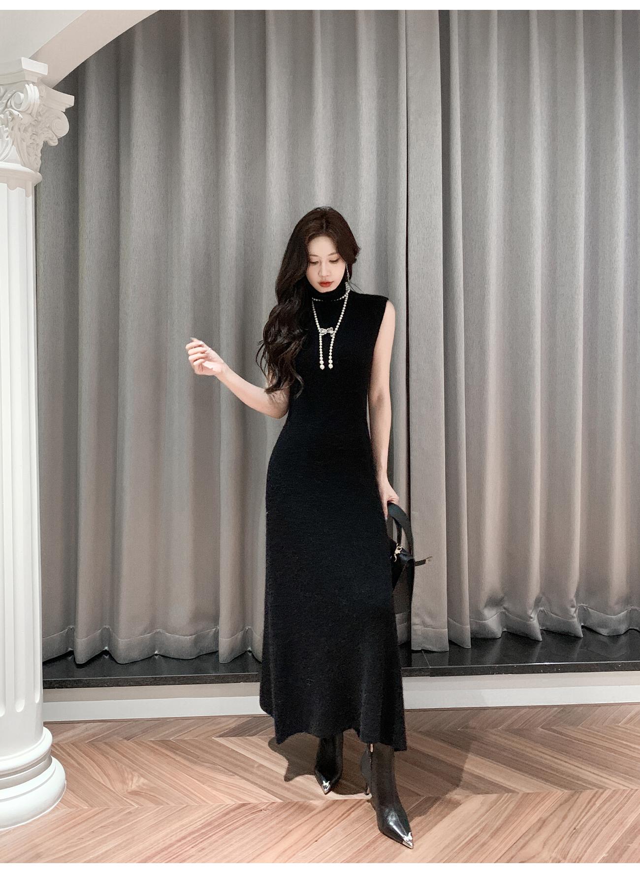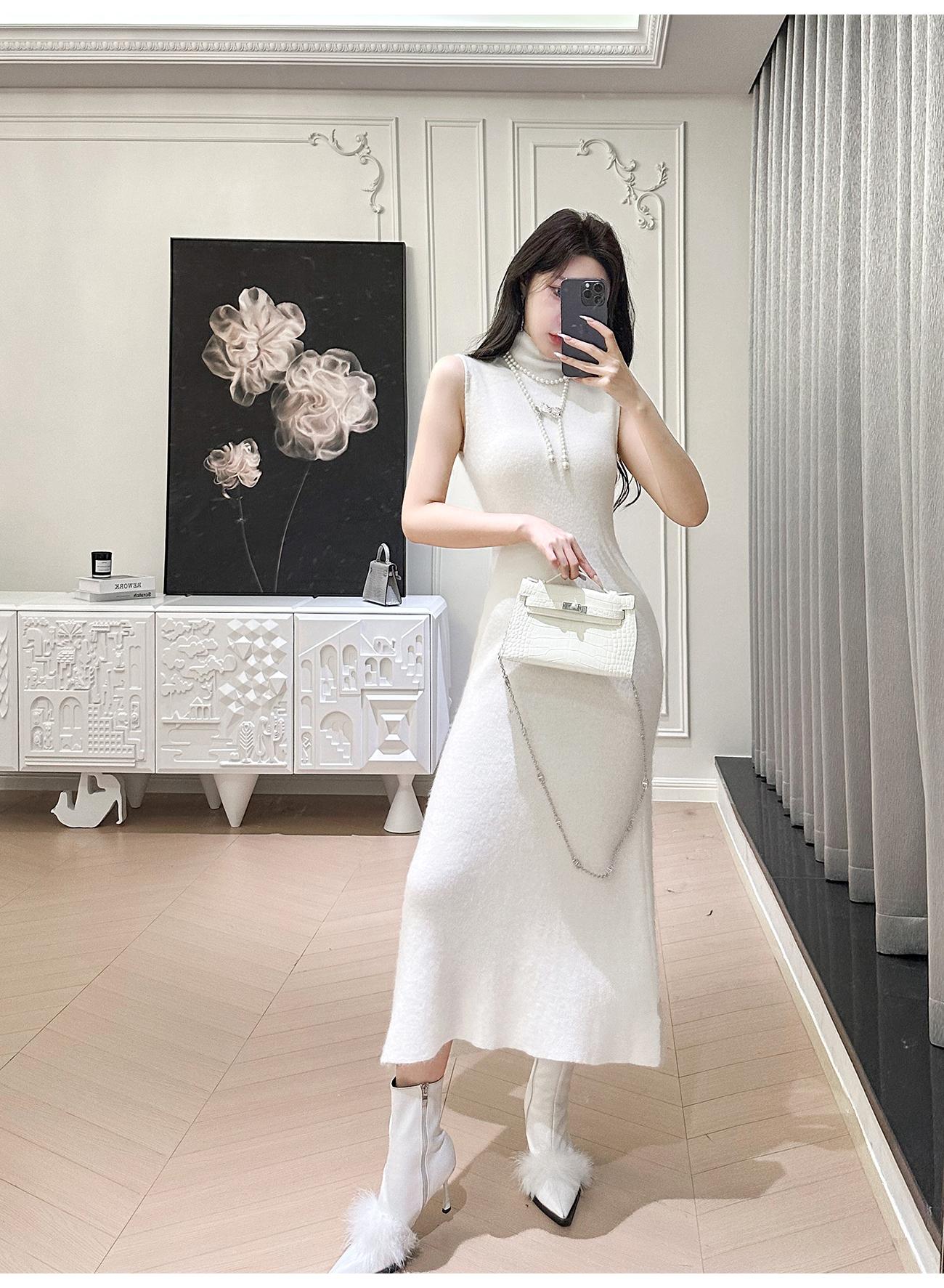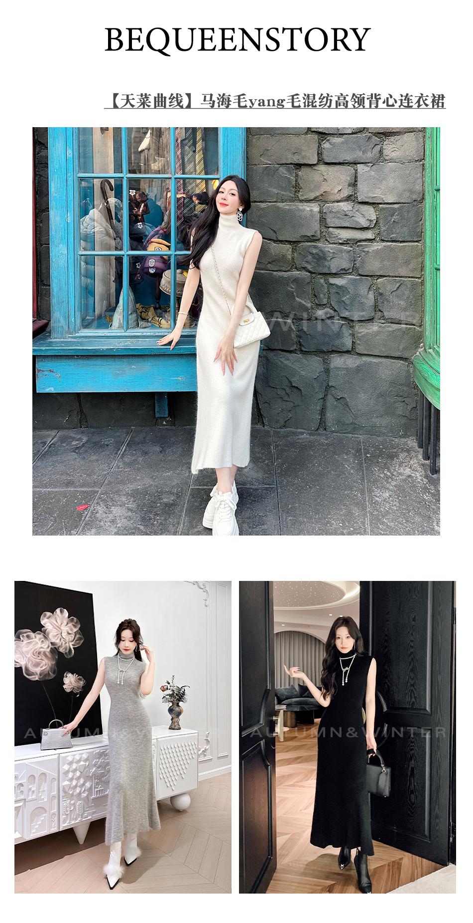 BeQueenStory【天菜曲线】马海毛羊毛混纺高领气质修身背心连衣裙