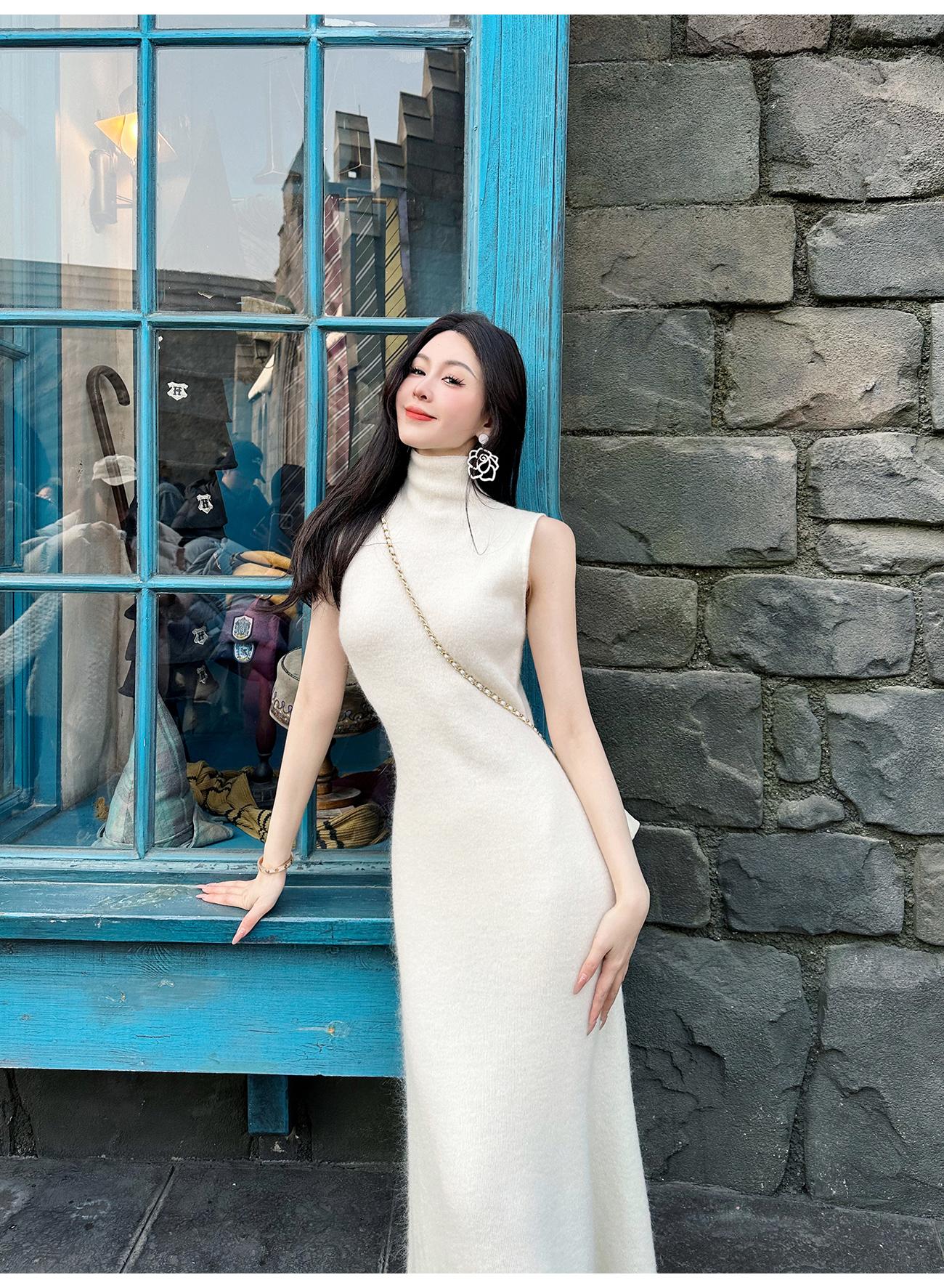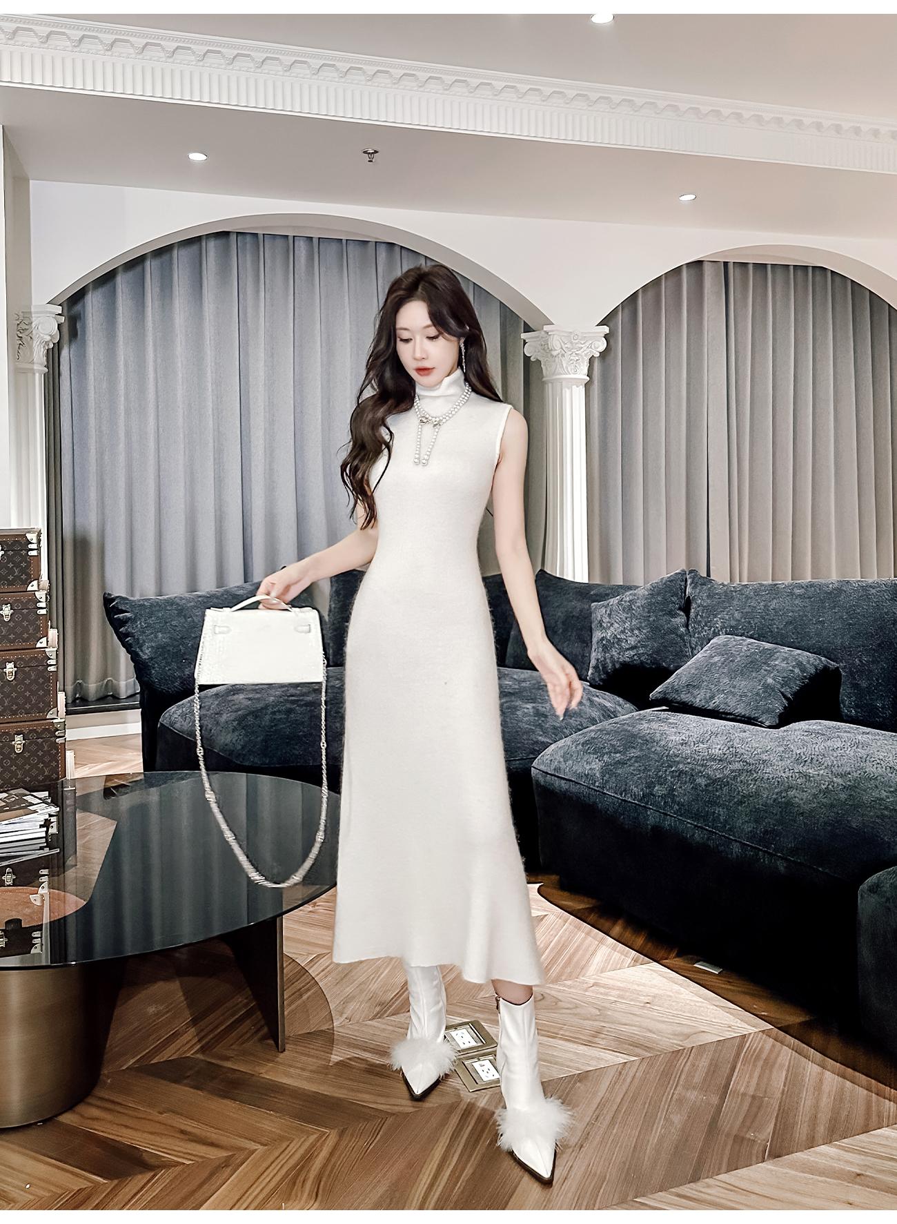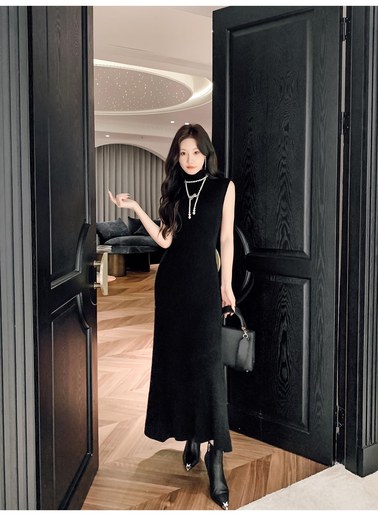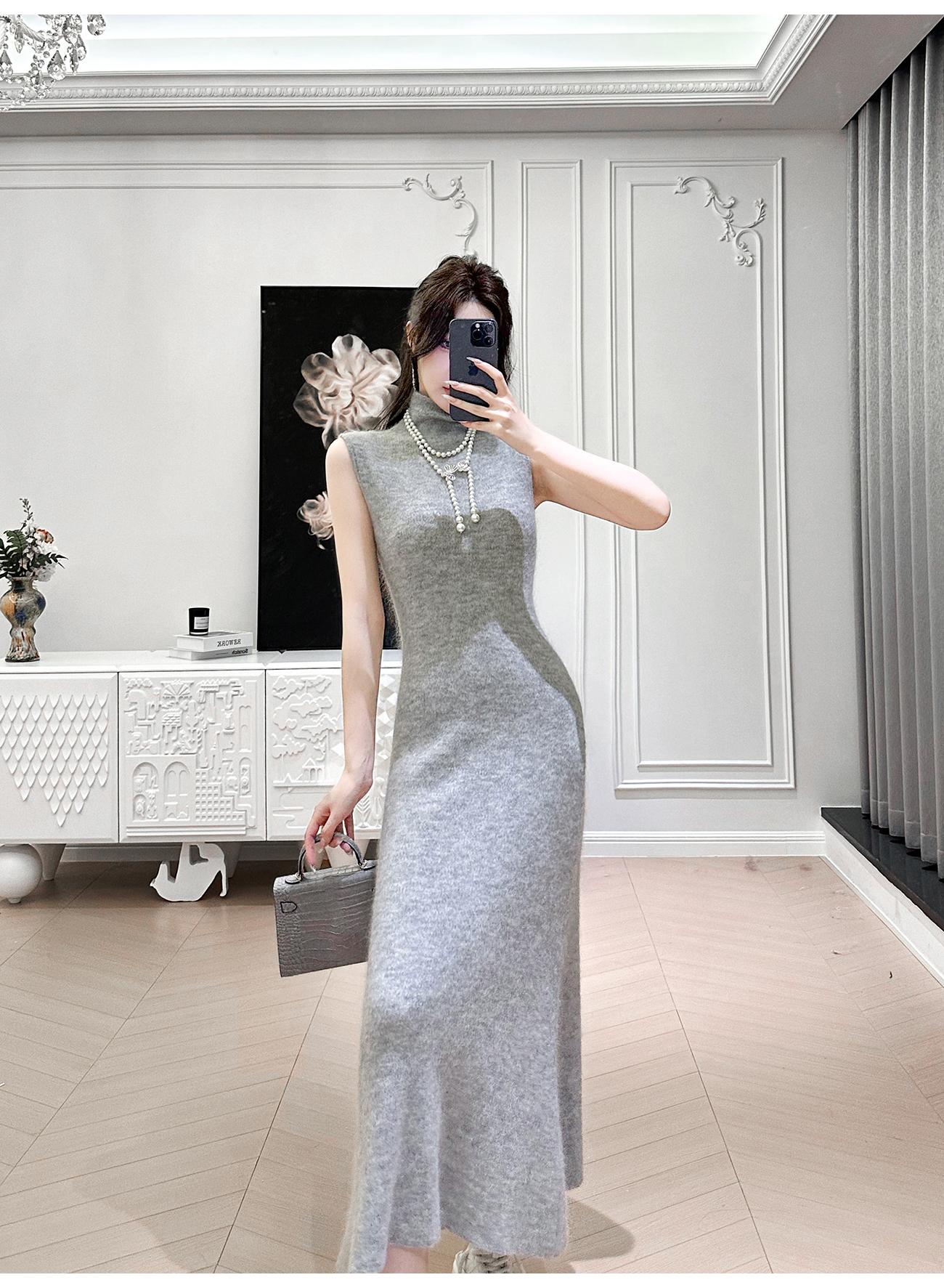 BeQueenStory【天菜曲线】马海毛羊毛混纺高领气质修身背心连衣裙