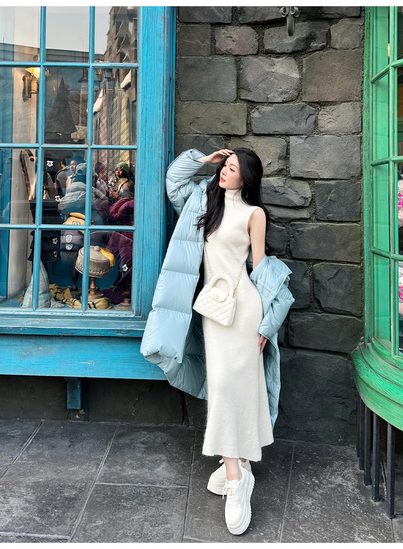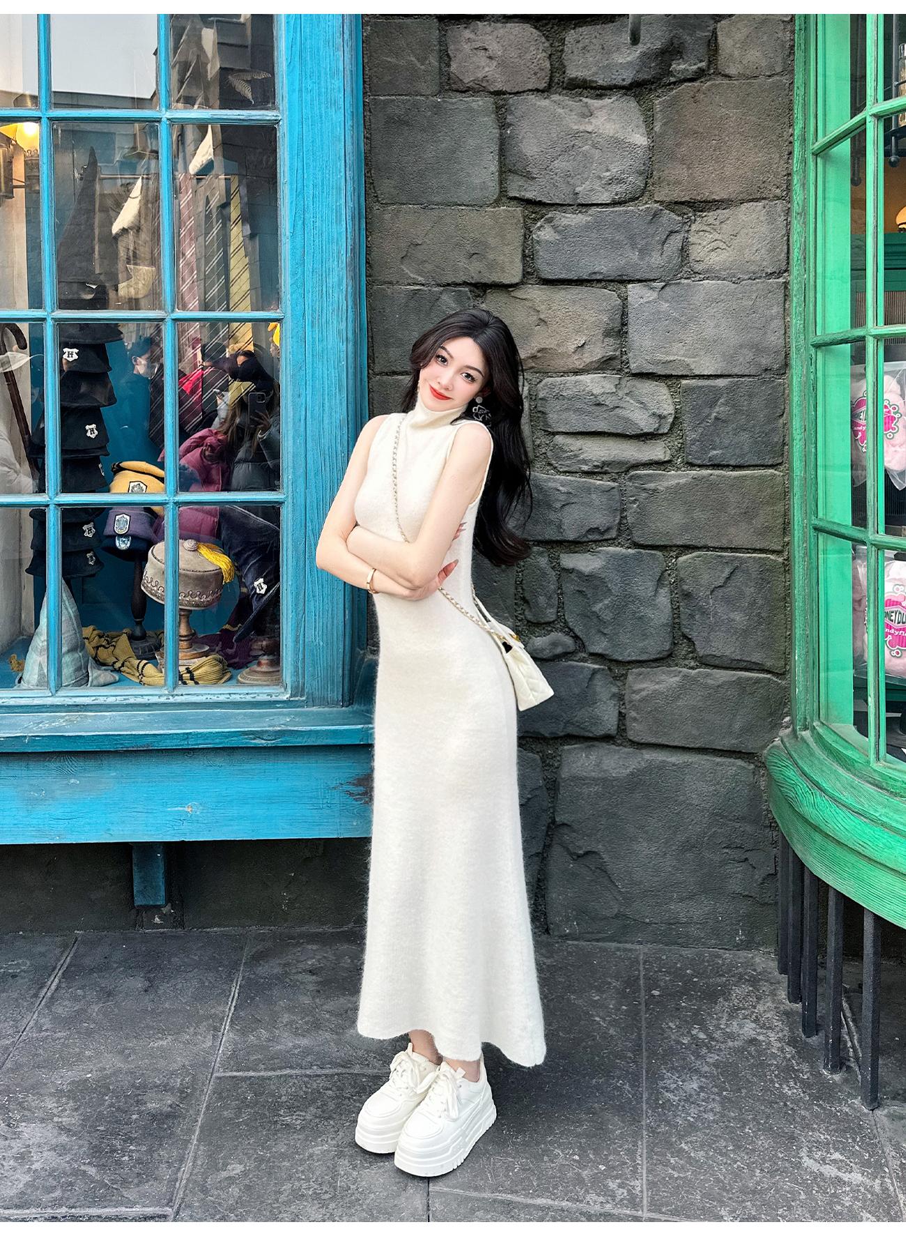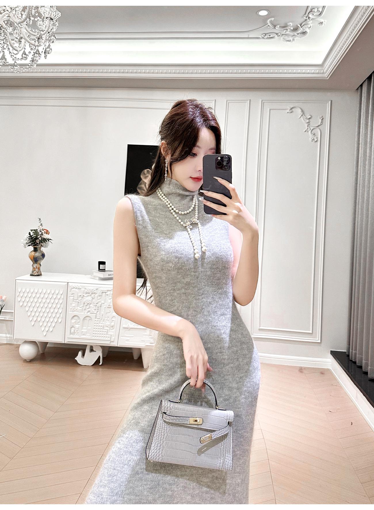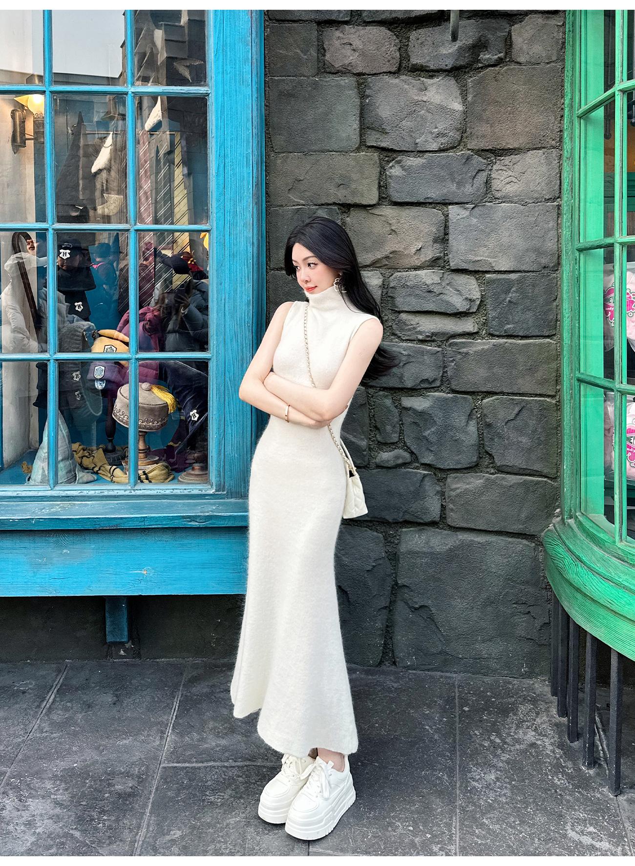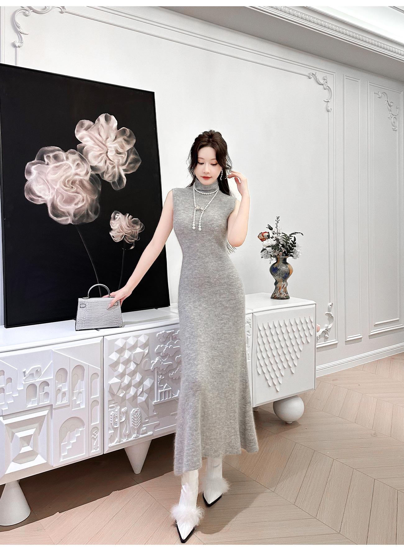 BeQueenStory【天菜曲线】马海毛羊毛混纺高领气质修身背心连衣裙