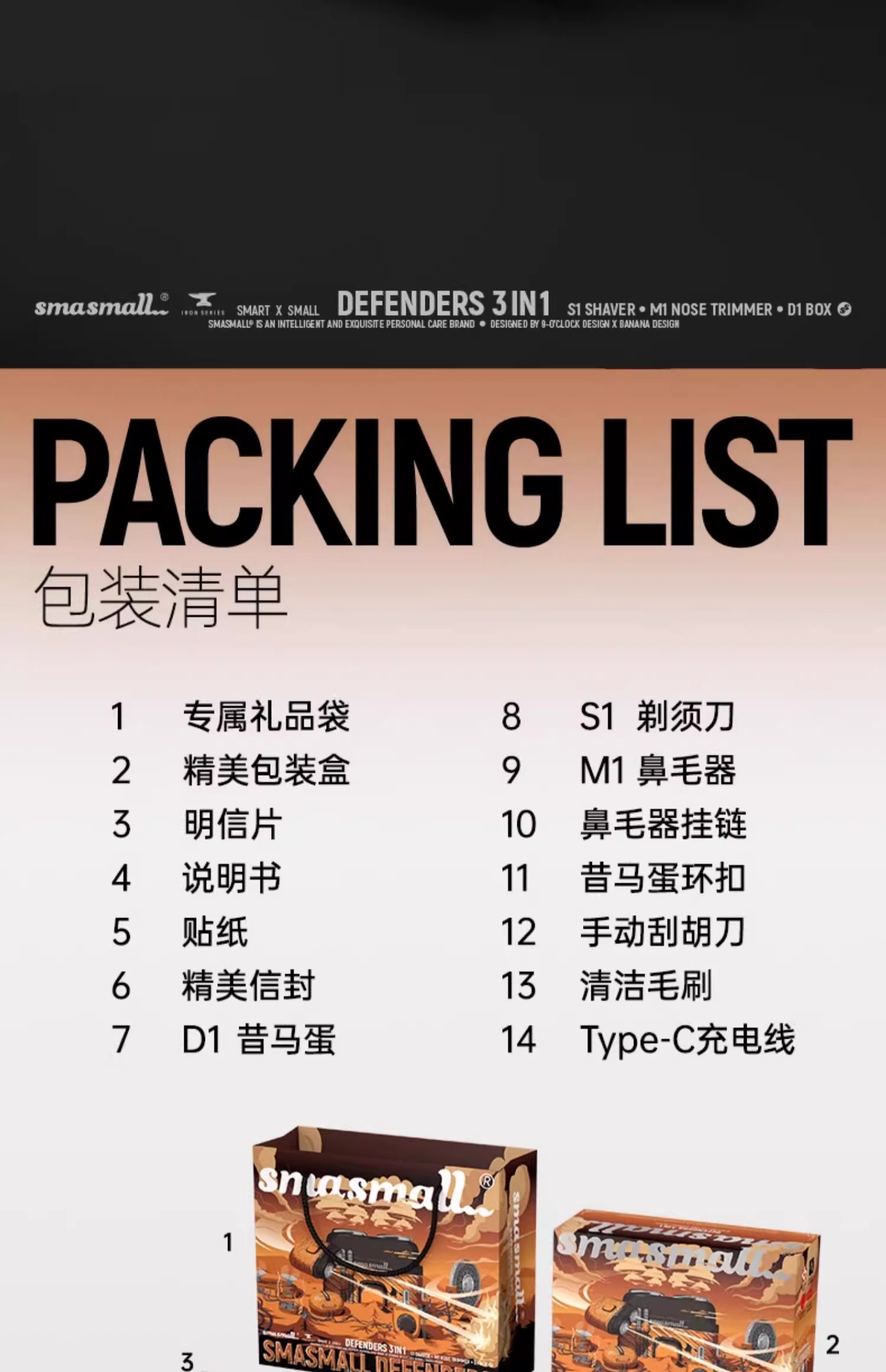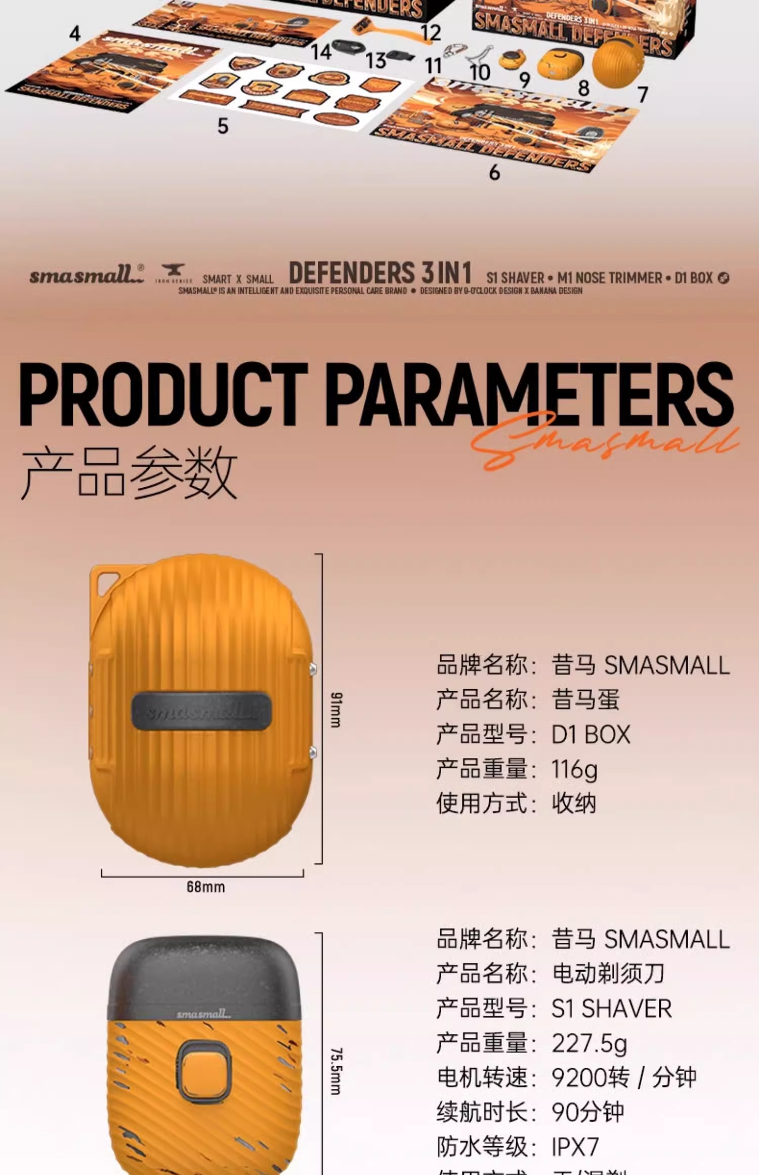 smasmall/昔马剃须刀男士迷你便携电动刮胡刀捍卫者套装4IN1修剪套装