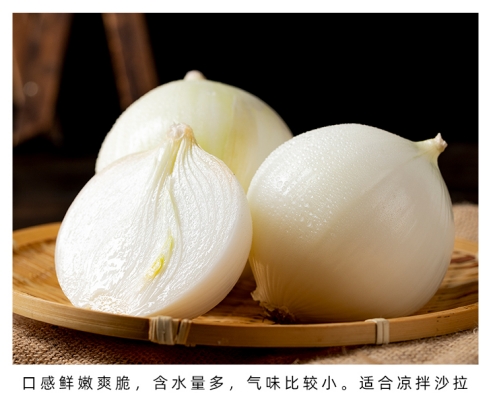 新疆因独特的地理环境和气候条件,产的白洋葱品质上乘,因其水分含量高,口感鲜嫩,适合生食。