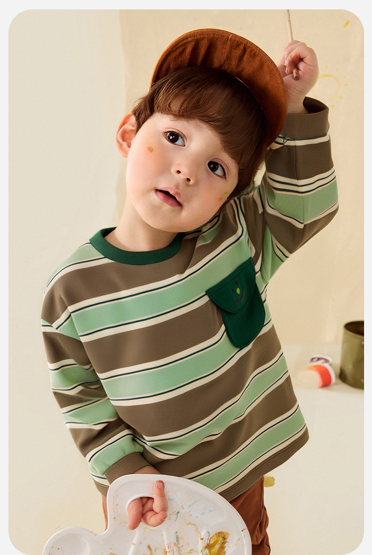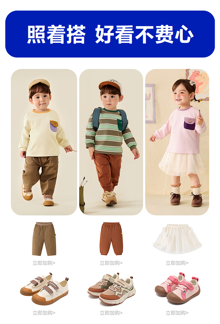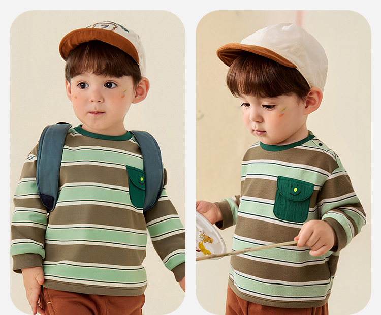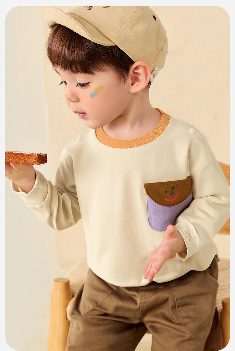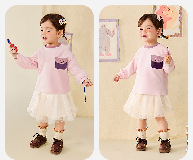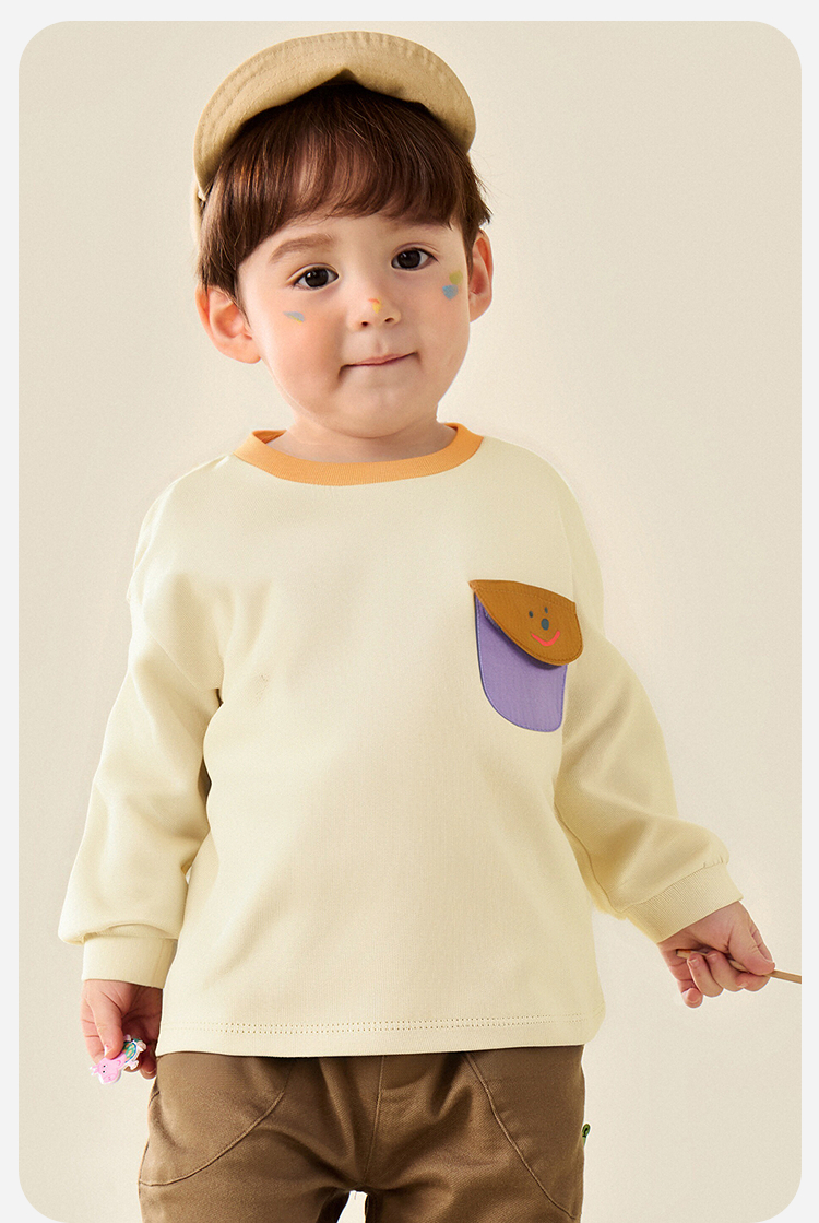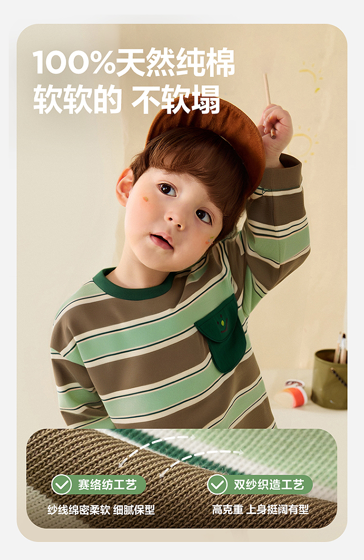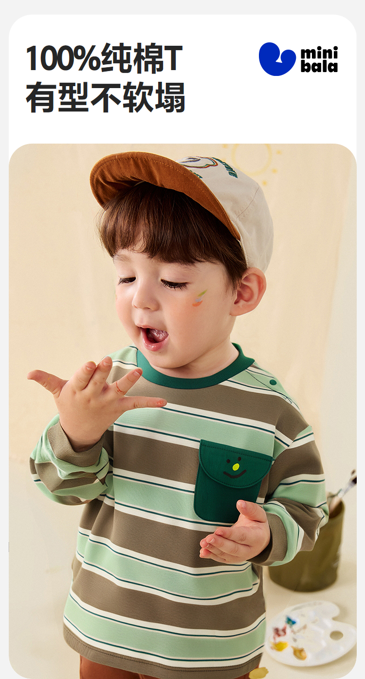 迷你巴拉男女宝宝长袖T恤秋纯棉儿童拼色柔软亲肤内搭上衣