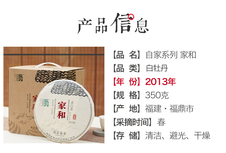 自家系列丨2013年 白牡丹 老白茶 家和 350g/饼
