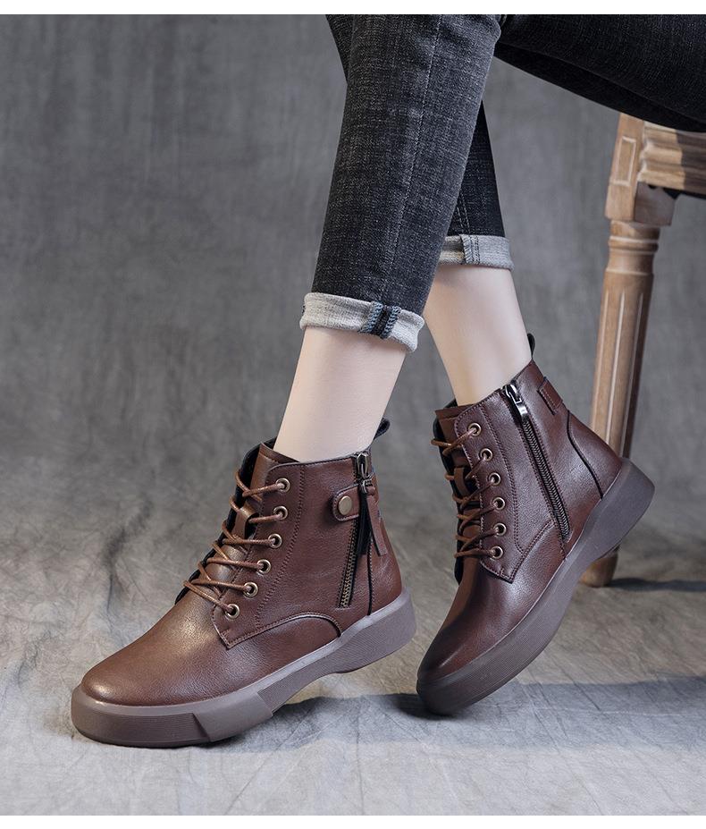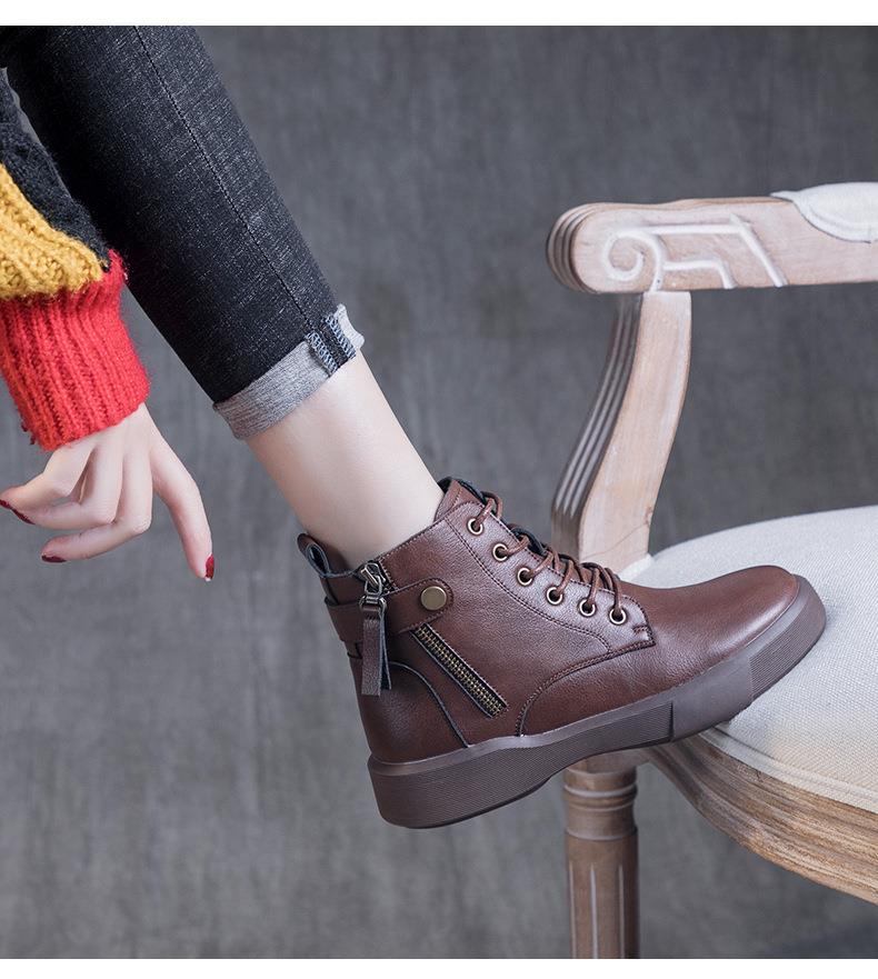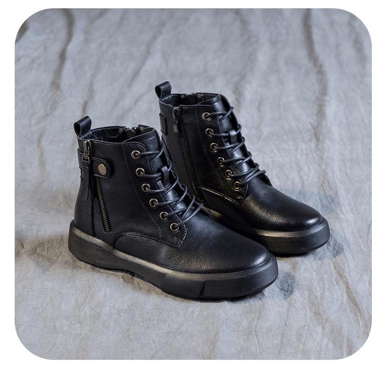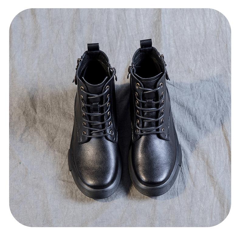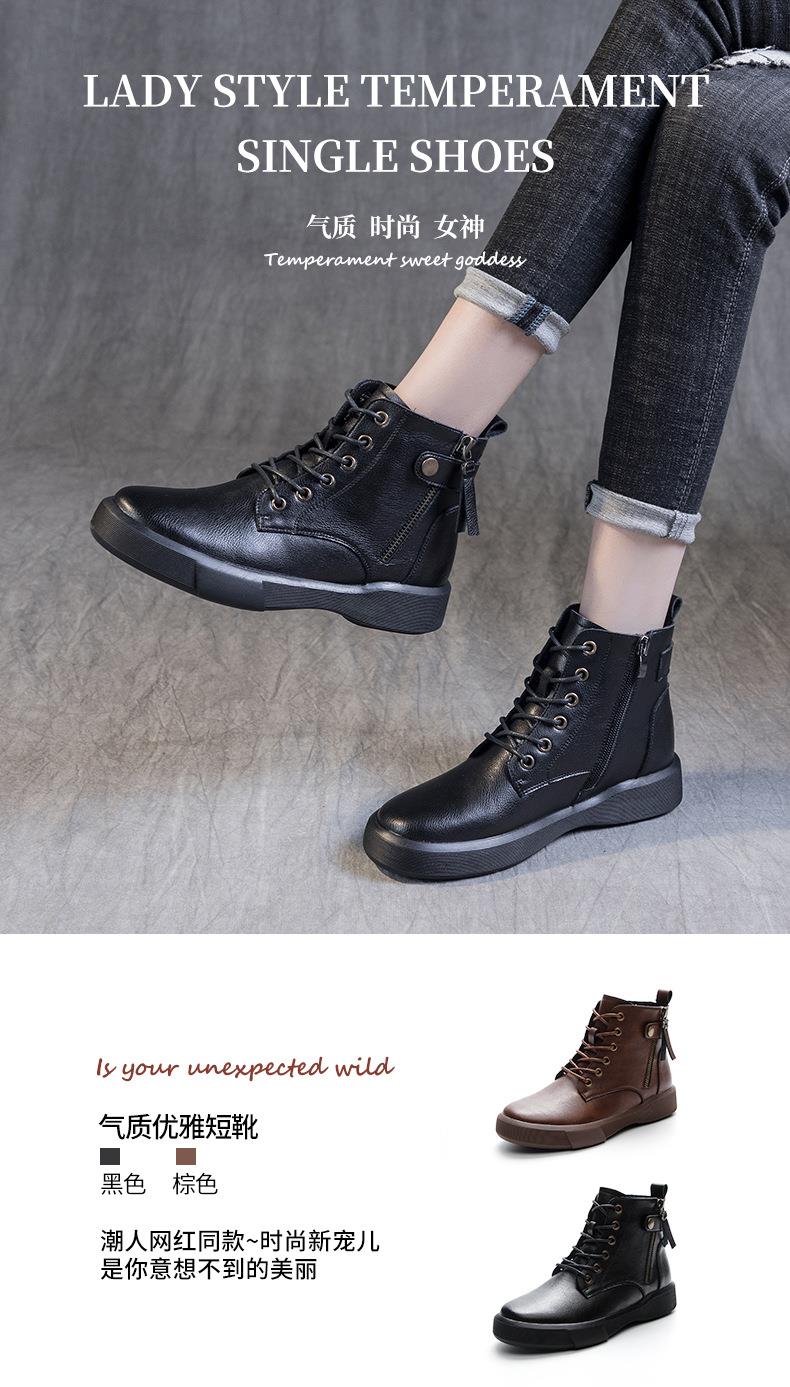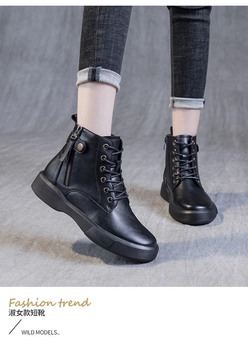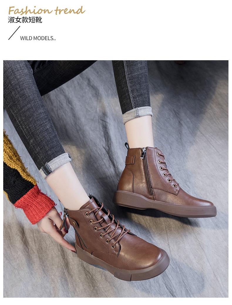 休闲马丁靴女春秋平跟软底短靴新款英伦风大码百搭女靴