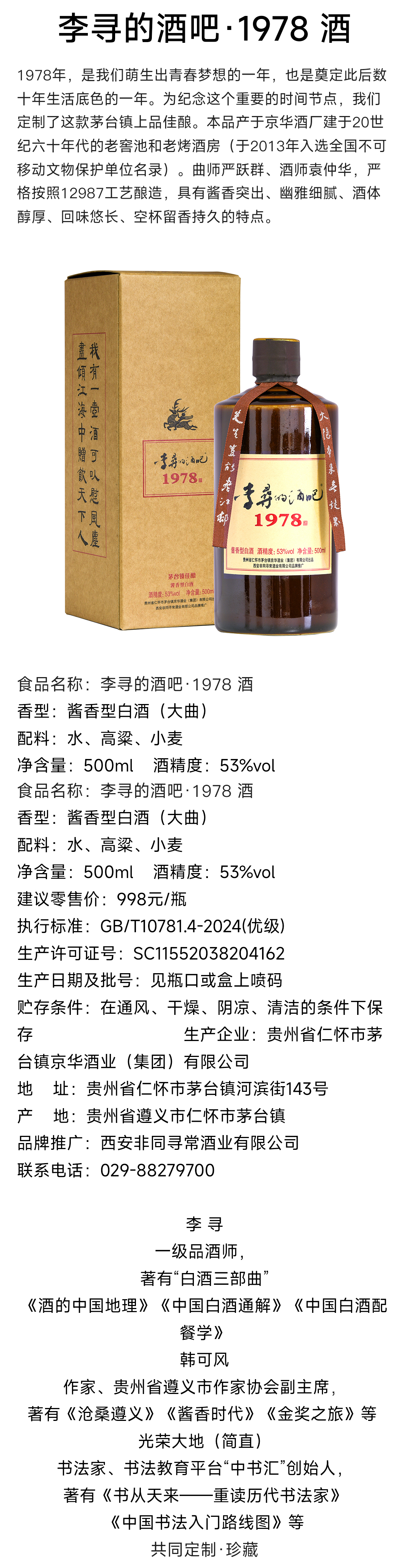 李寻的酒吧 1978酒 酱香型53° 500ml 陶瓶