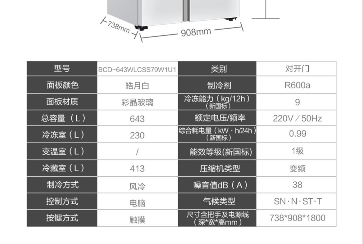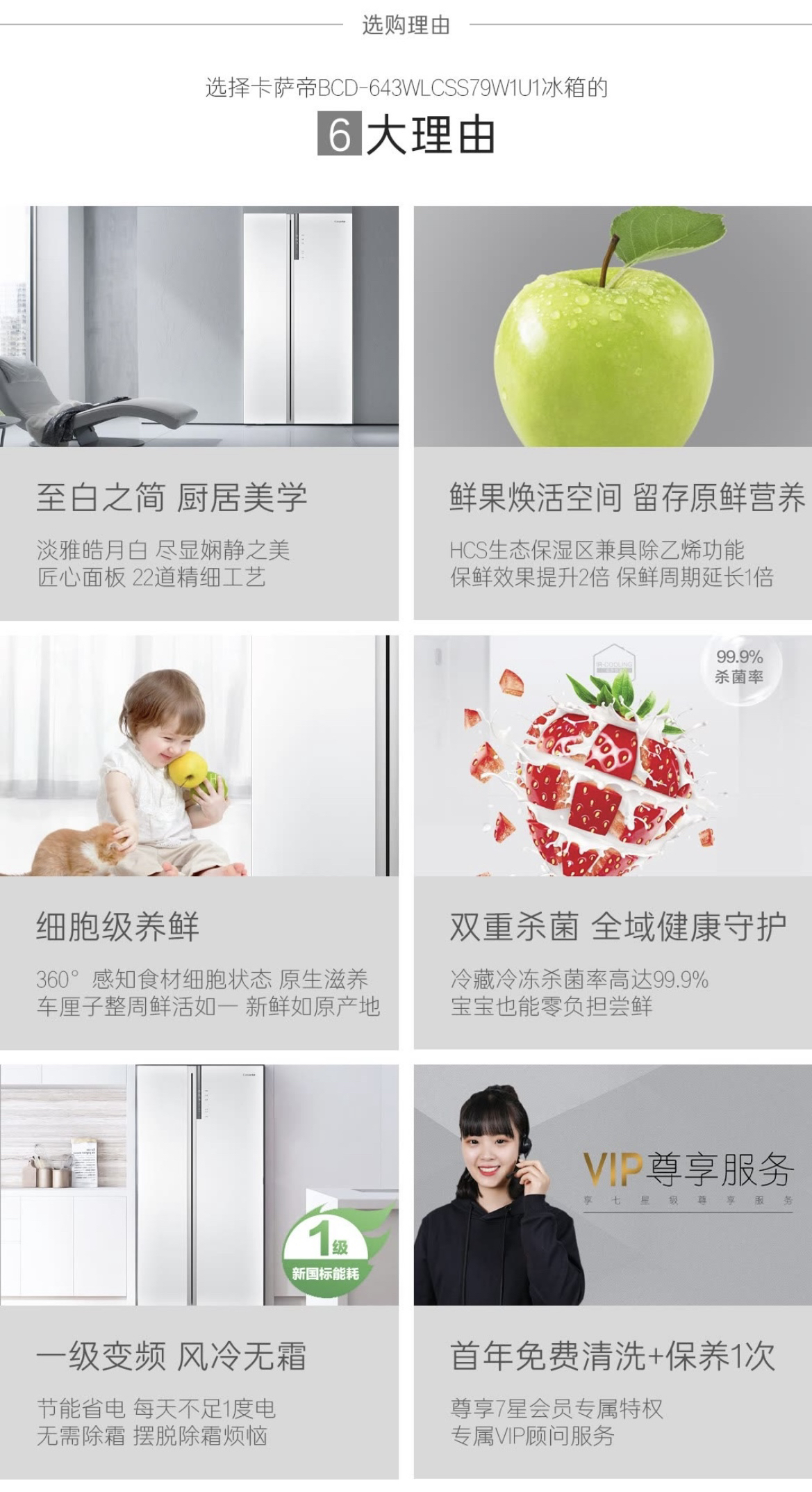 卡萨帝(Casarte)冰箱BCD-643WLCSS79W1U1 皓月白