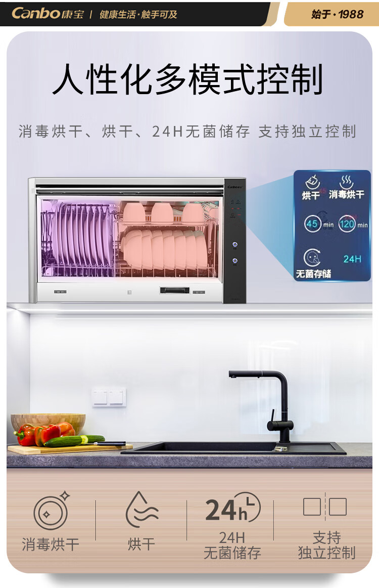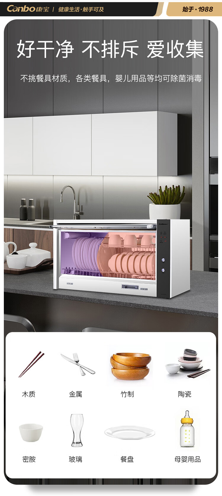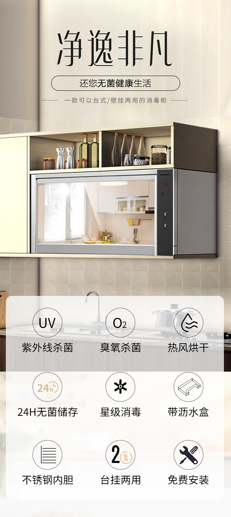 康宝(Canbo)消毒柜40L 家用 壁挂式 厨房碗筷柜 卧式 挂式消毒碗柜 学校幼儿园 紫外线杀菌 奶瓶玩具消毒星级消毒 一星级 40L 【热风烘干+无菌储存】XDZ40-AW13