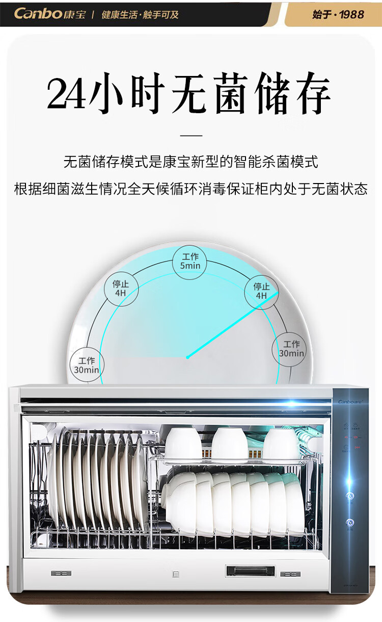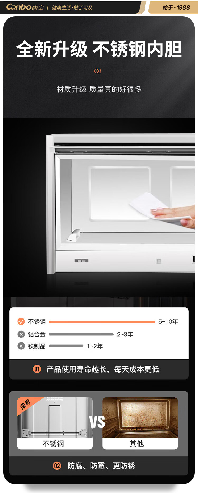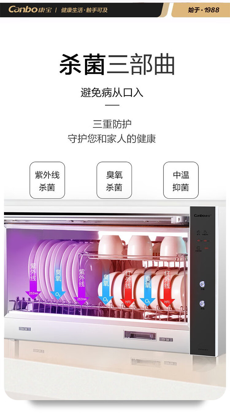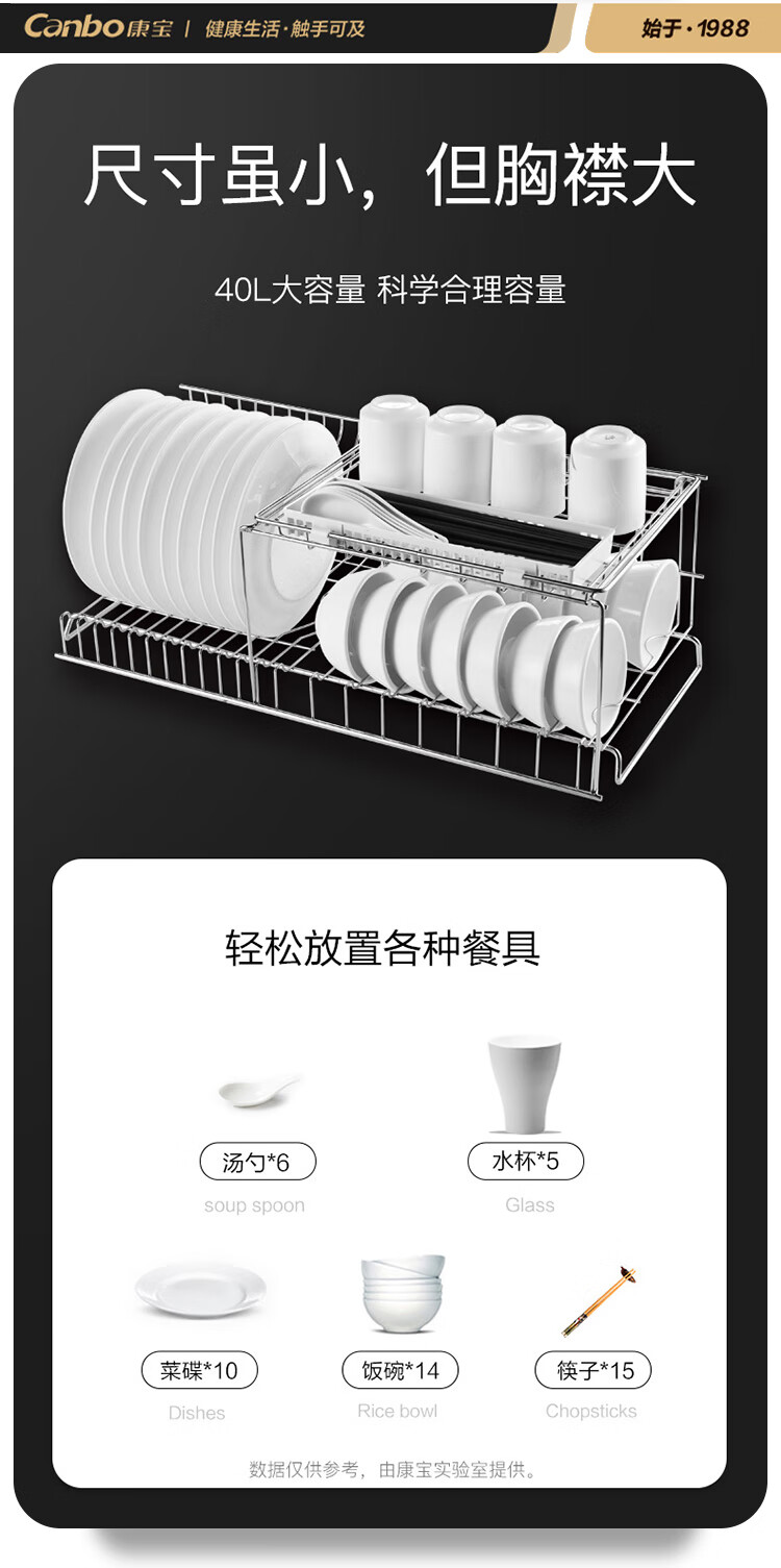 康宝(Canbo)消毒柜40L 家用 壁挂式 厨房碗筷柜 卧式 挂式消毒碗柜 学校幼儿园 紫外线杀菌 奶瓶玩具消毒星级消毒 一星级 40L 【热风烘干+无菌储存】XDZ40-AW13