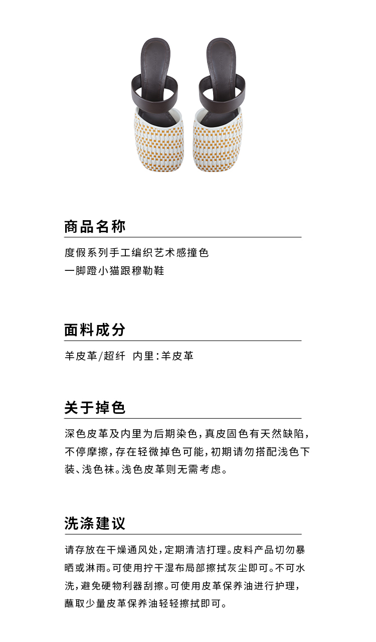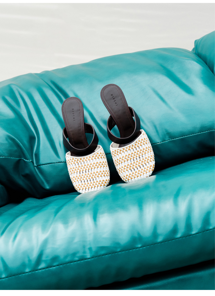 HIDEMI度假系列手工编织艺术感撞色一脚蹬小猫跟穆勒鞋