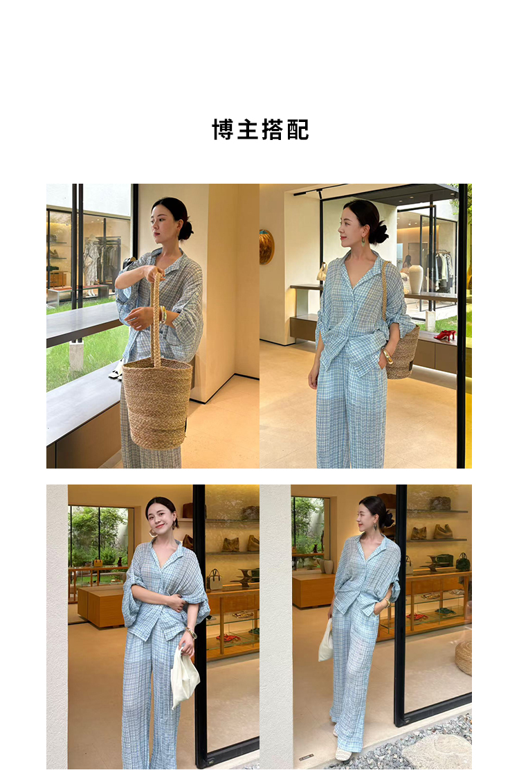 HIDEMI 度假系列水洗亚麻手绘印花手工包皮边四件套 v领上衣/九分裤/短裤/背心